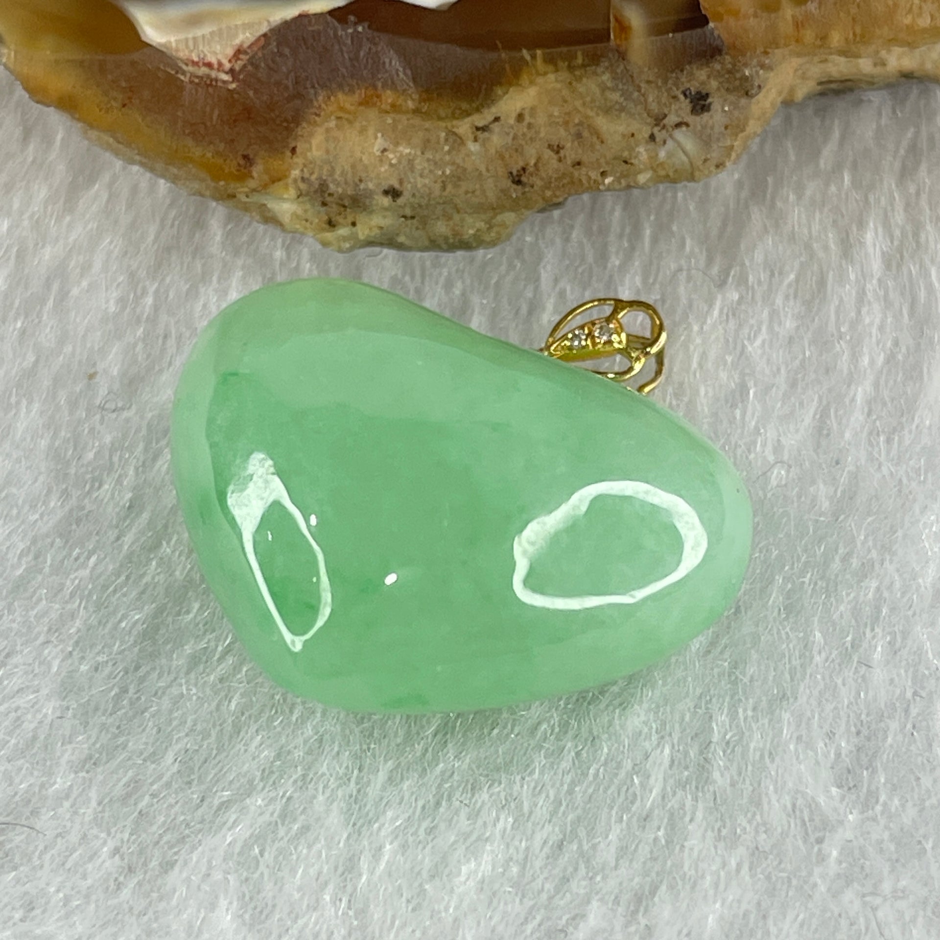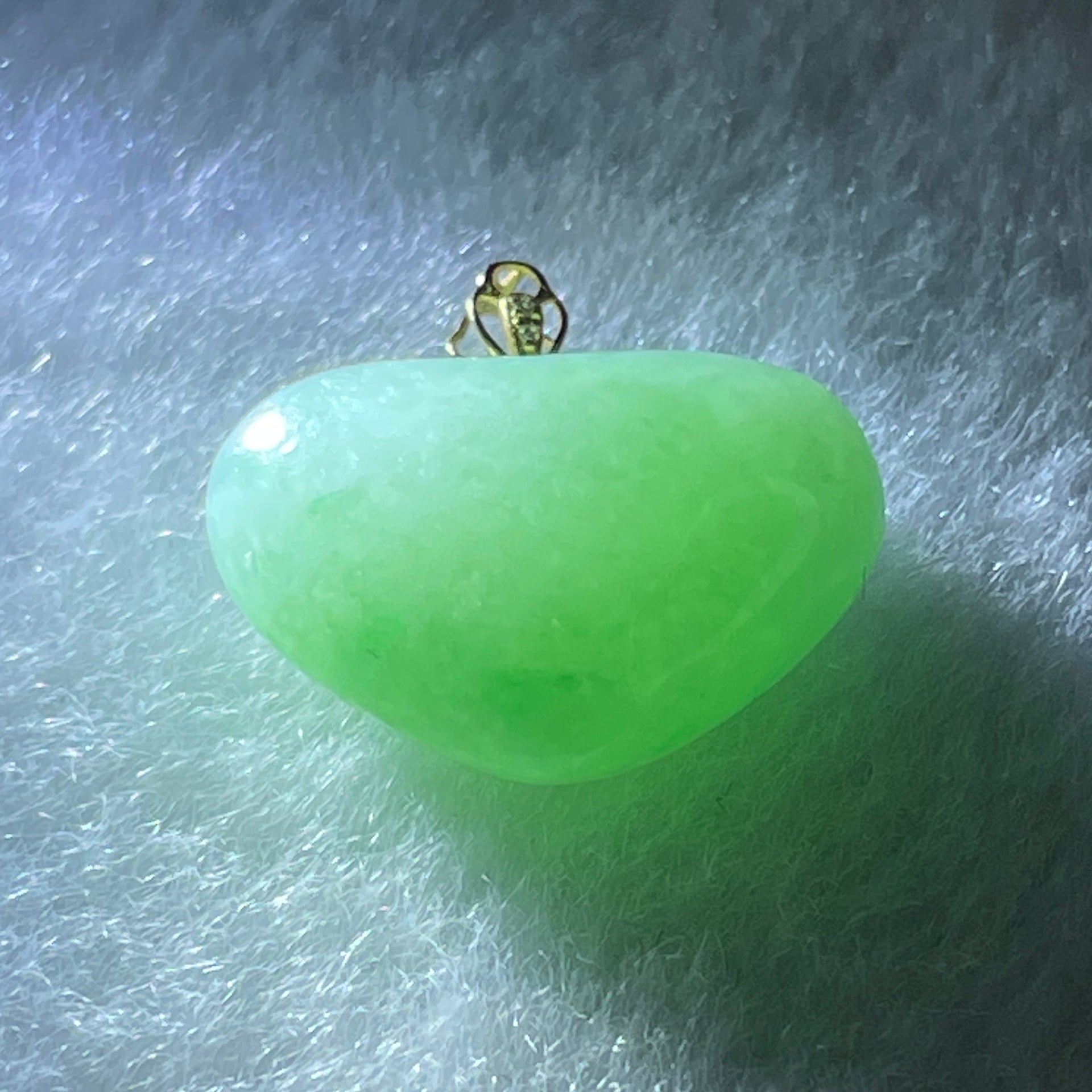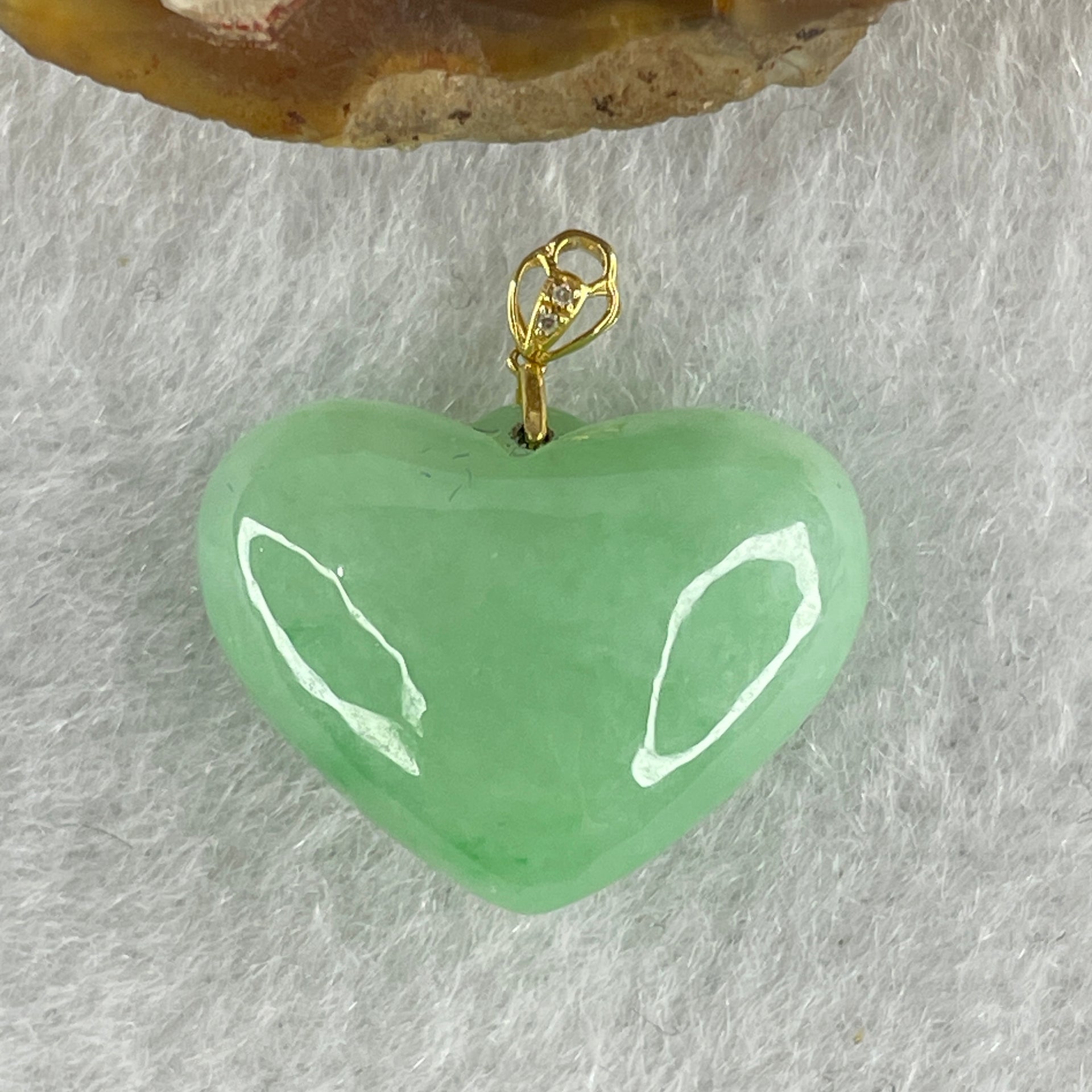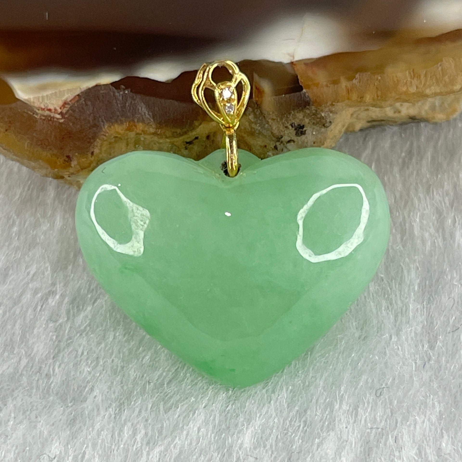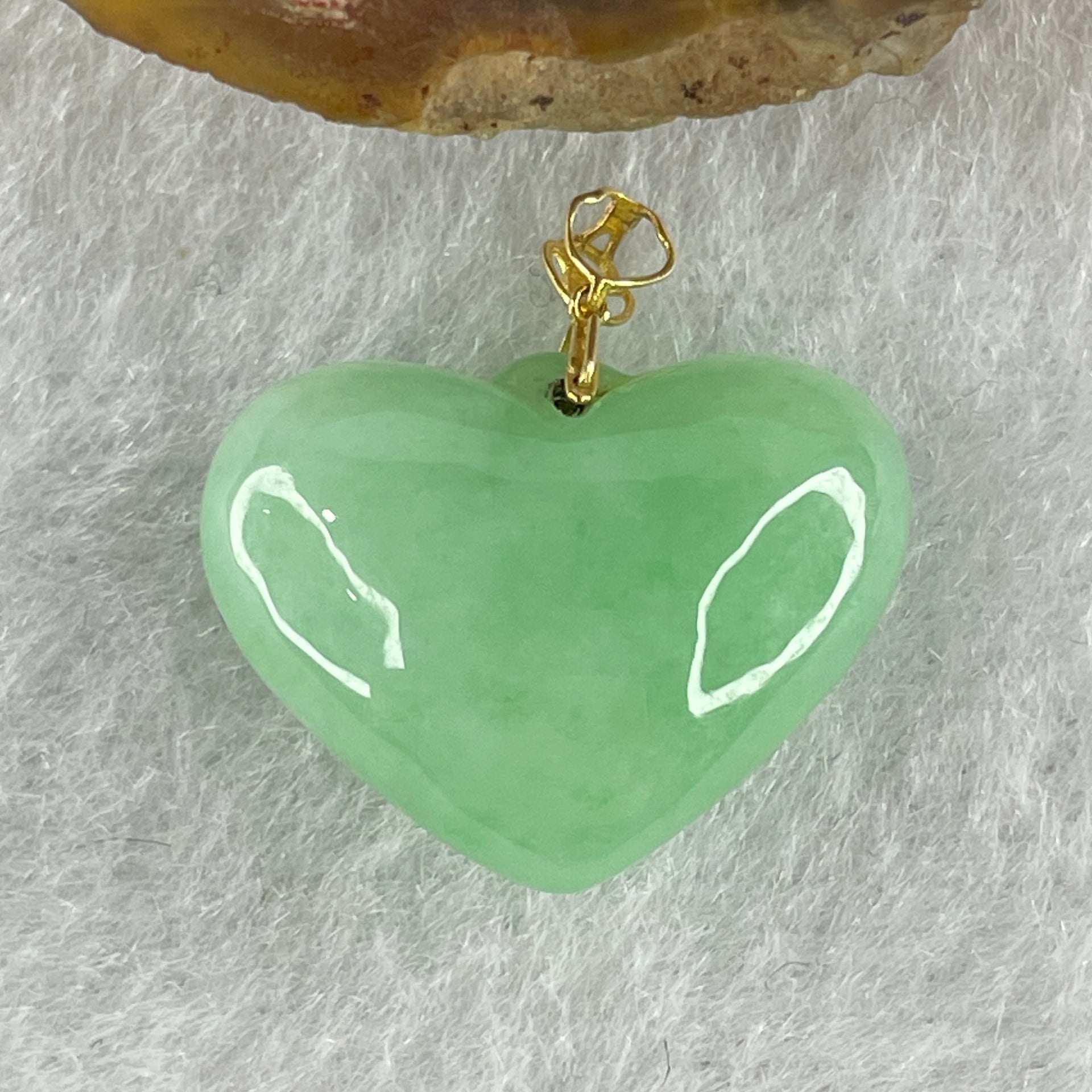 Natural Type A Apple Green Jadeite Heart Shape Pendant in 18K AU750 Yellow Gold 4.39g 14.4 by 19.2 by 9.3mm