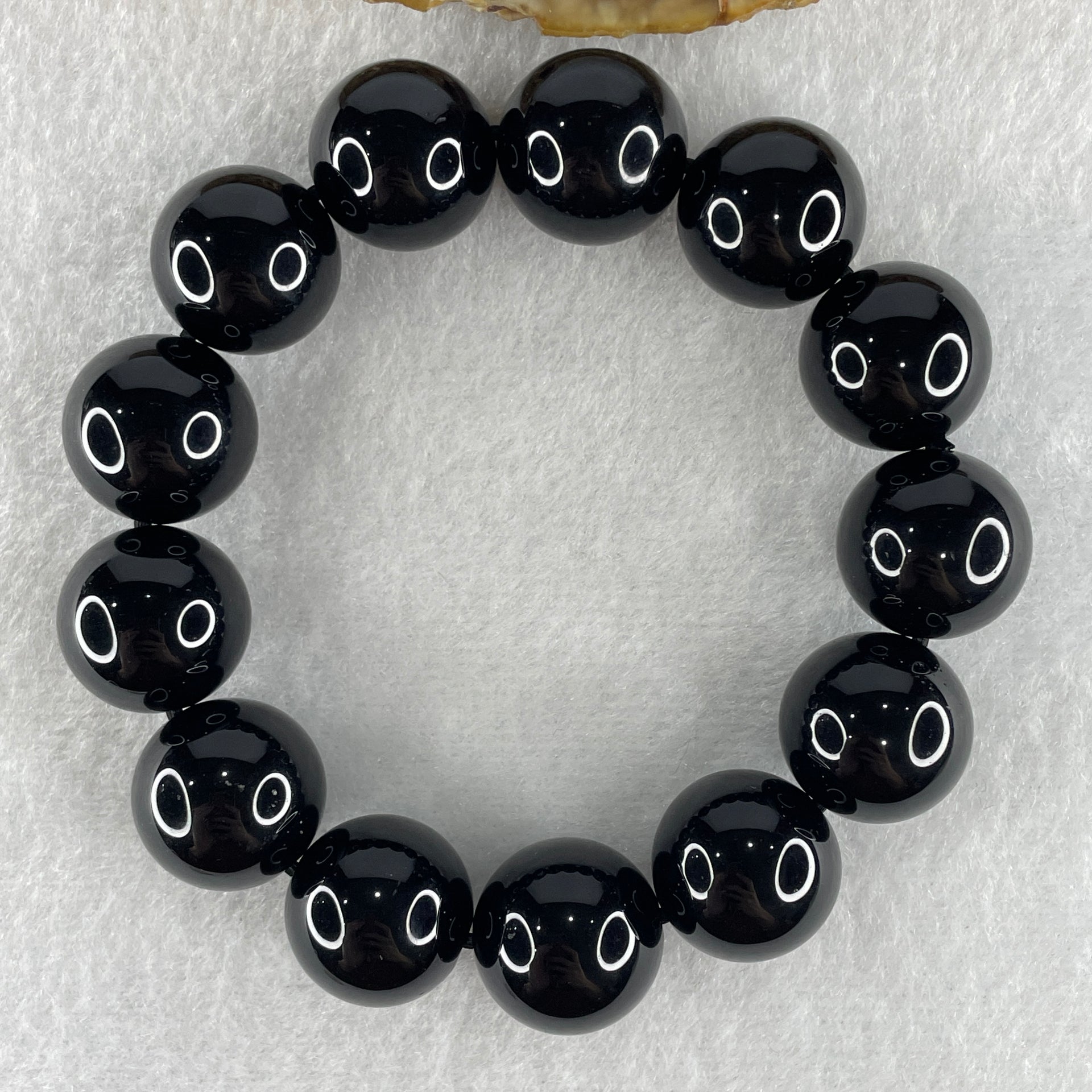 Natural Black Moldavite Meteorite Crystal Beads Bracelet 67.46g 16cm 16.4mm 13 Beads