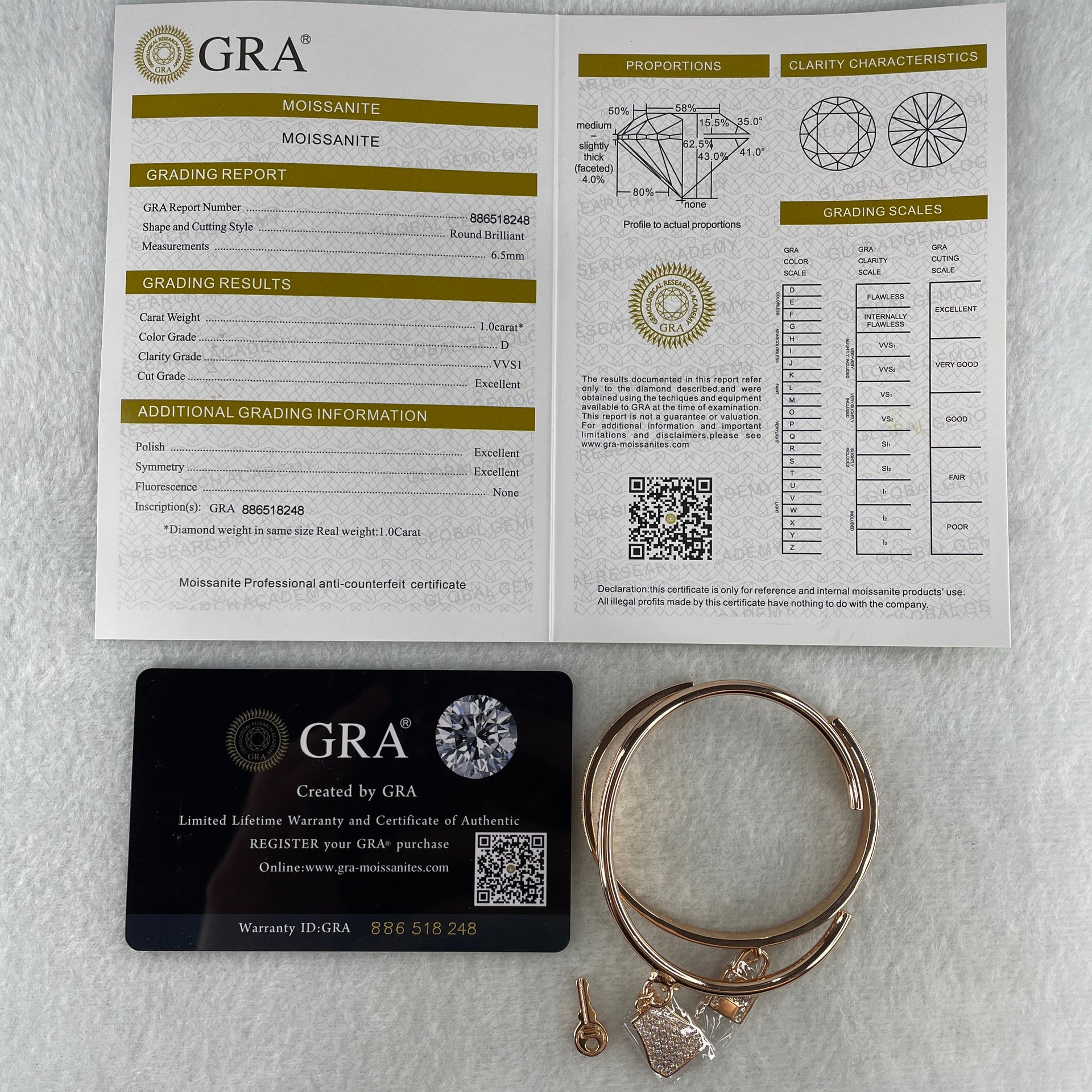 1.0Ct Colourless Round Brilliant Diameter 6.5mm VVS1 Excellent Cut Moissanite Excellent Polish Excellent Symmetry None Florescence in S925 Sliver Gold Color Double Bangle GRA 886518248