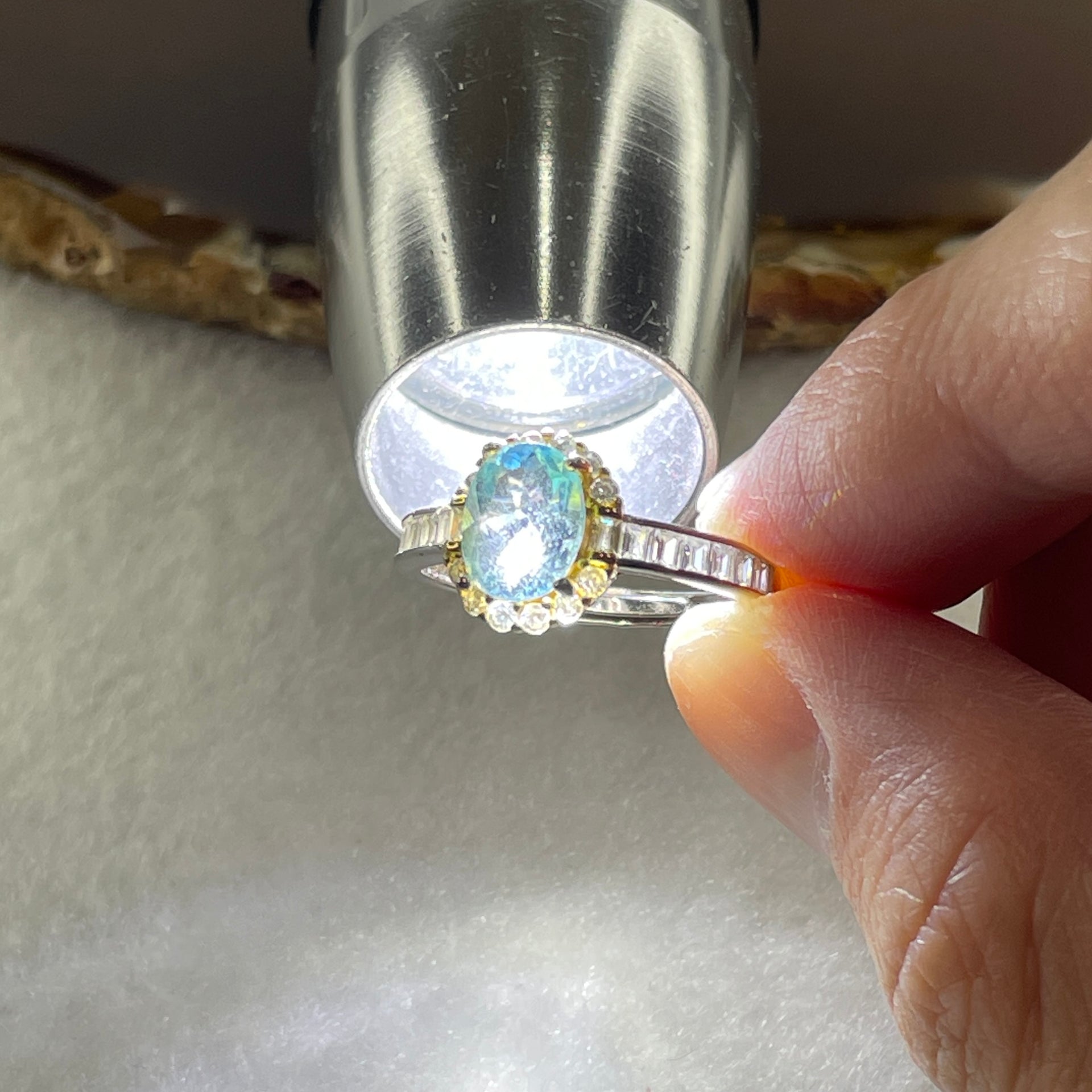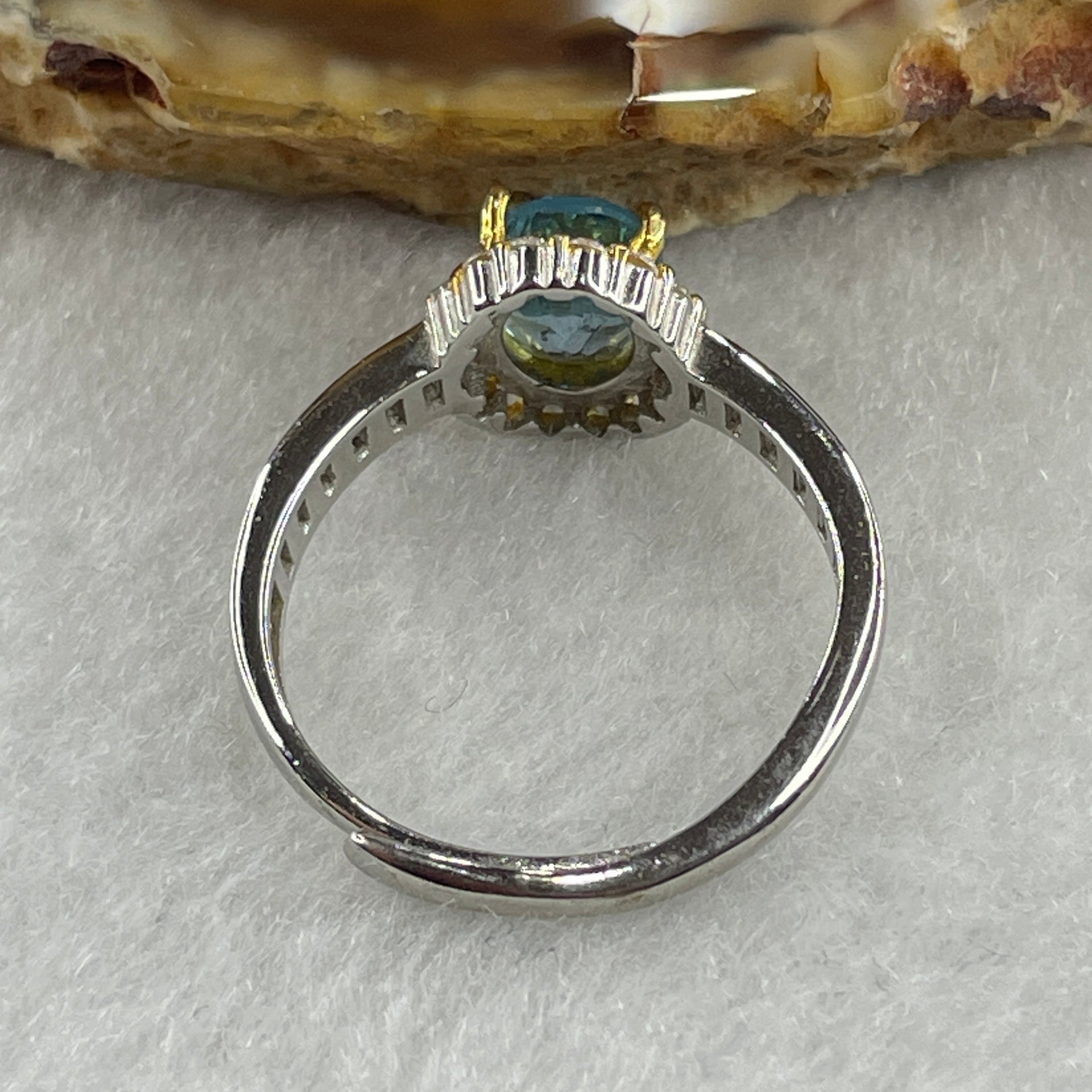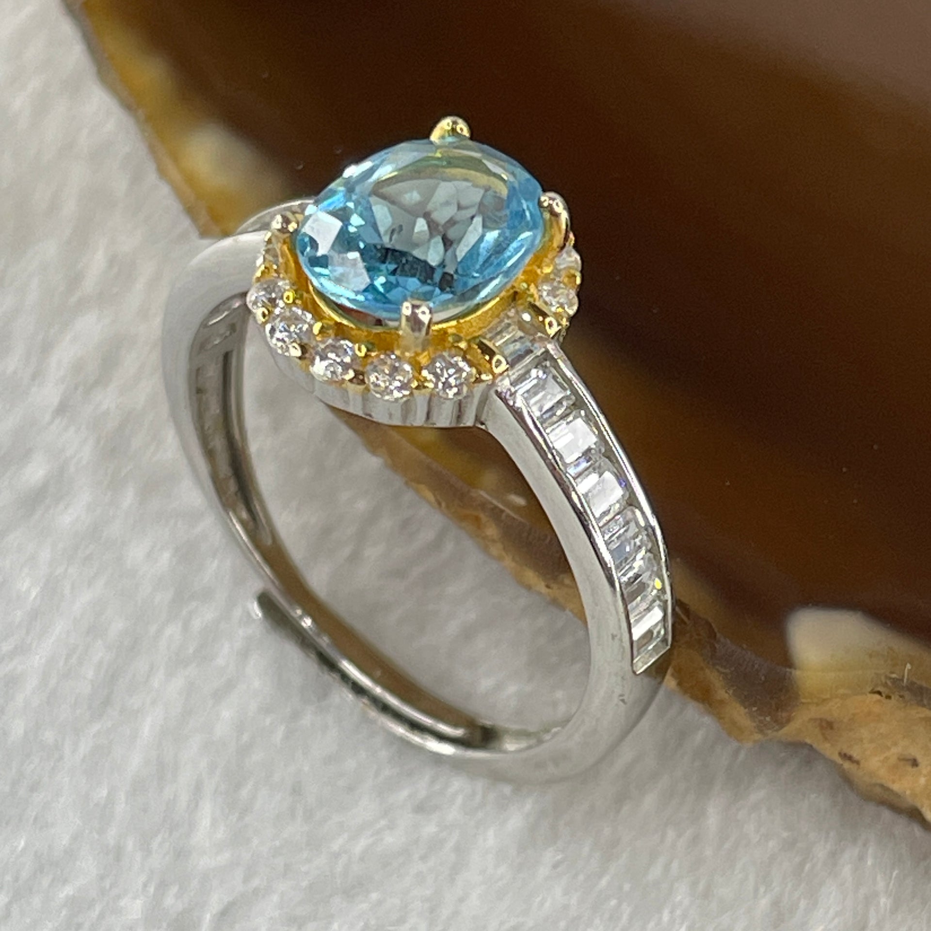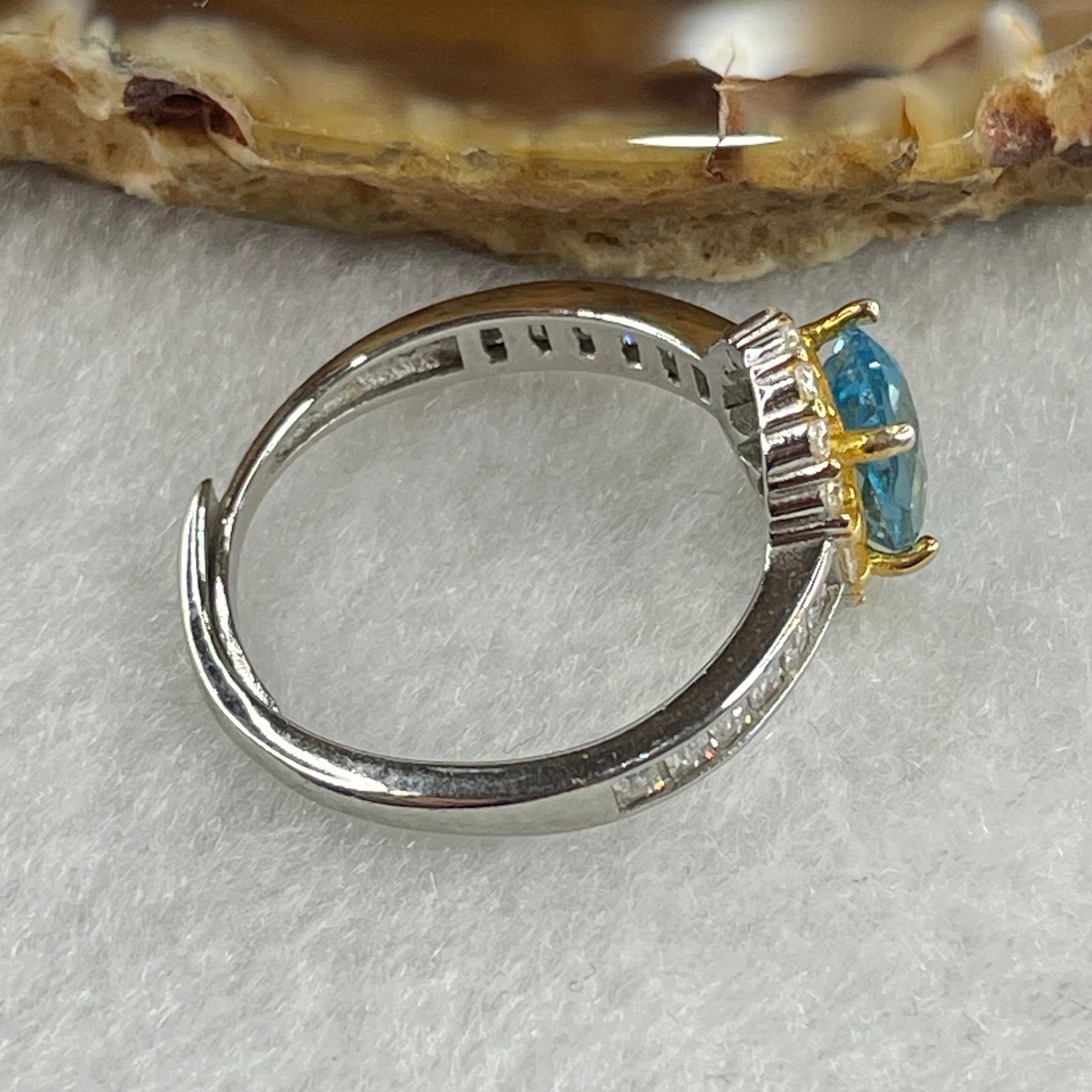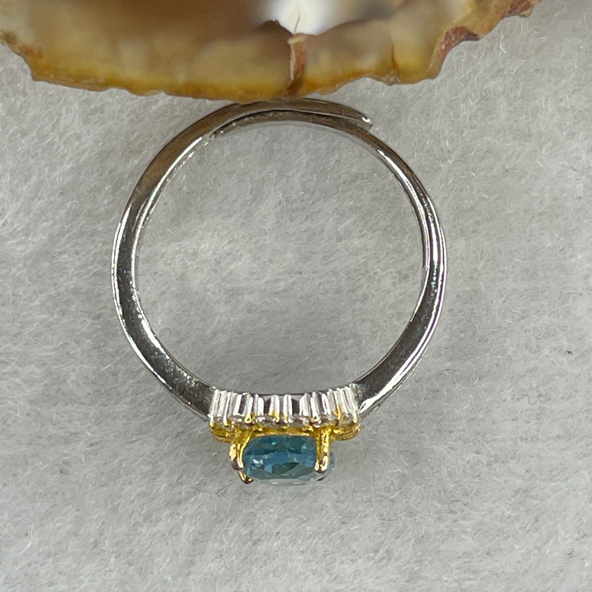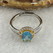 Certified Natural Blue Topaz Faceted Ring in S925 Sliver Adjustable Size 2.20g 7.6 by 6.0 by 2.0mm