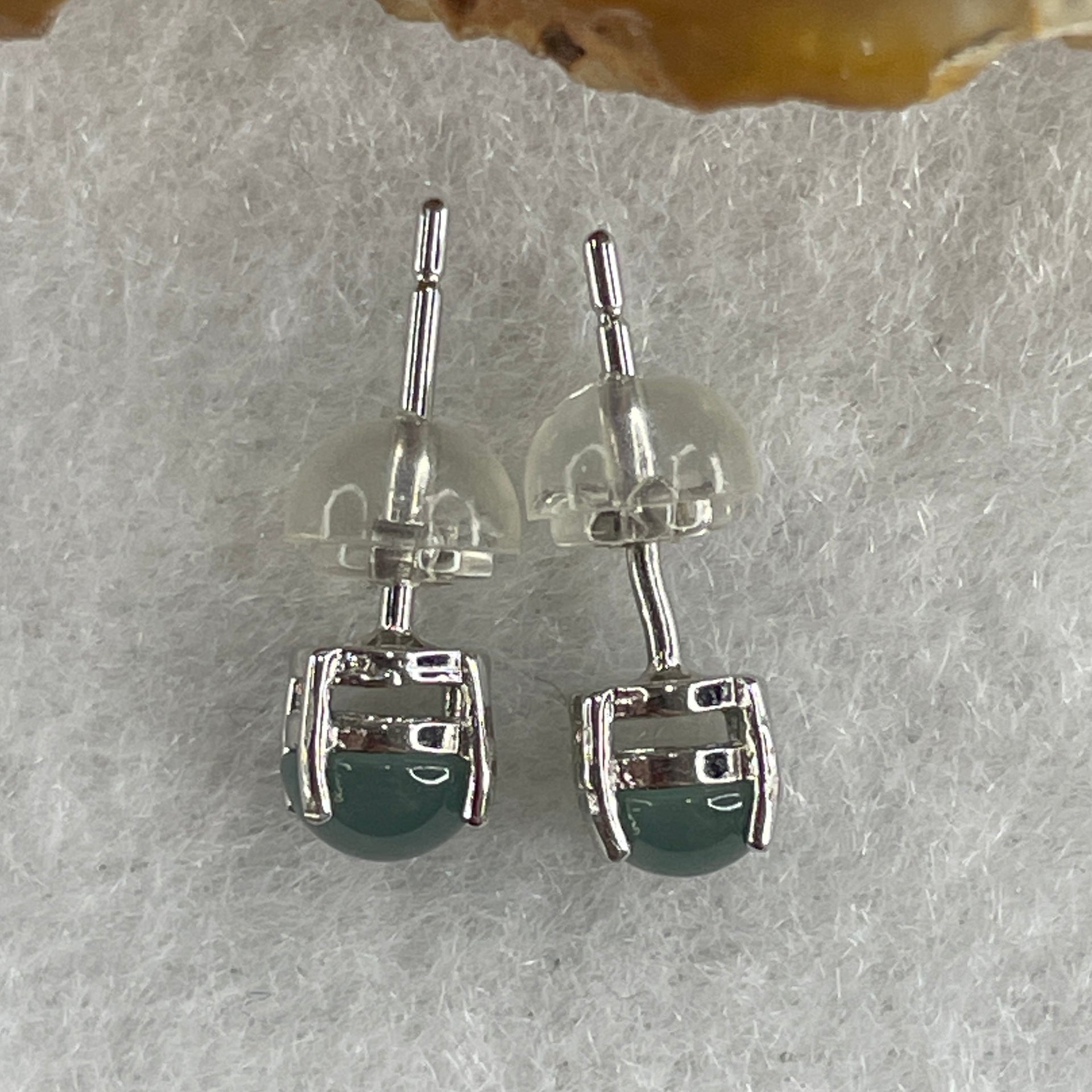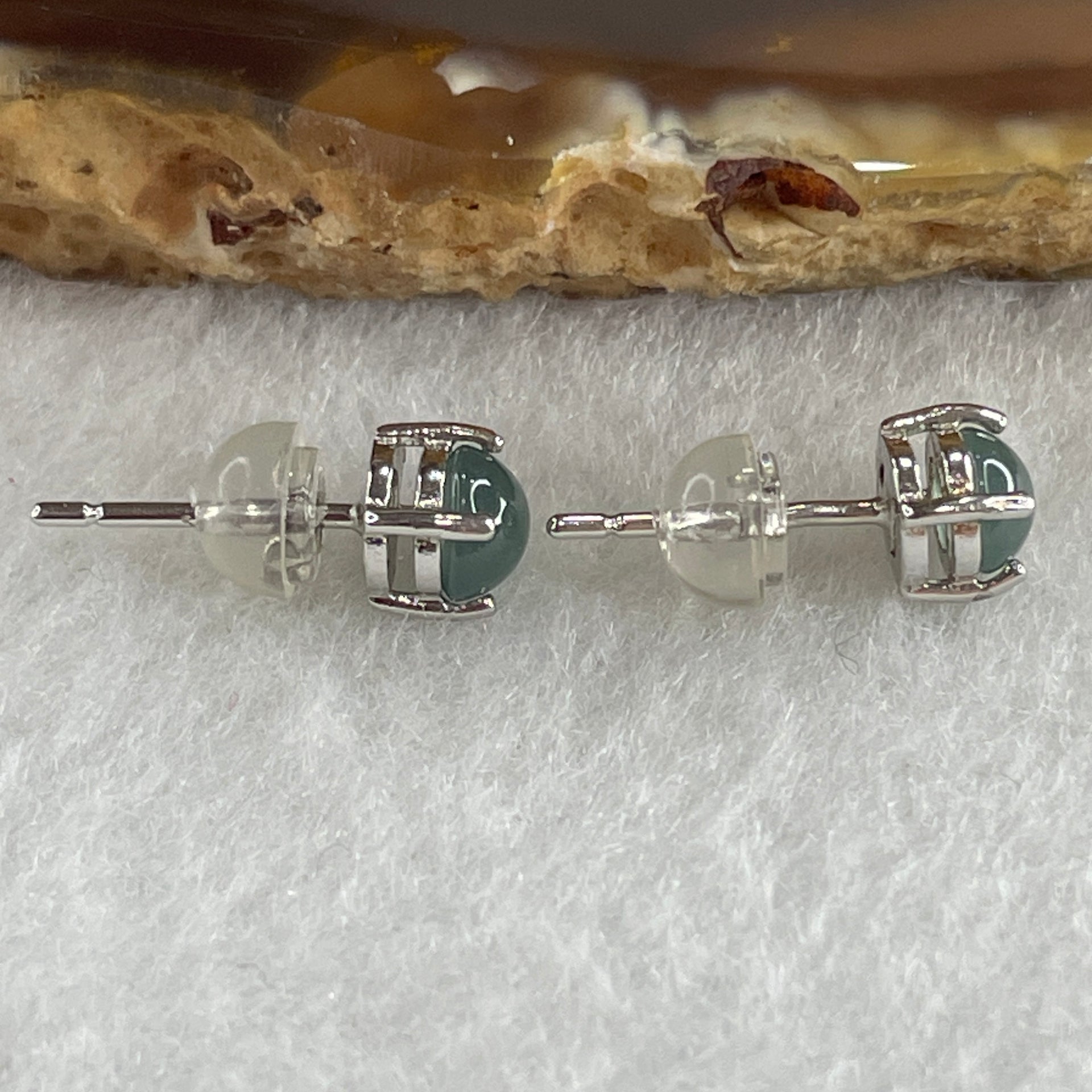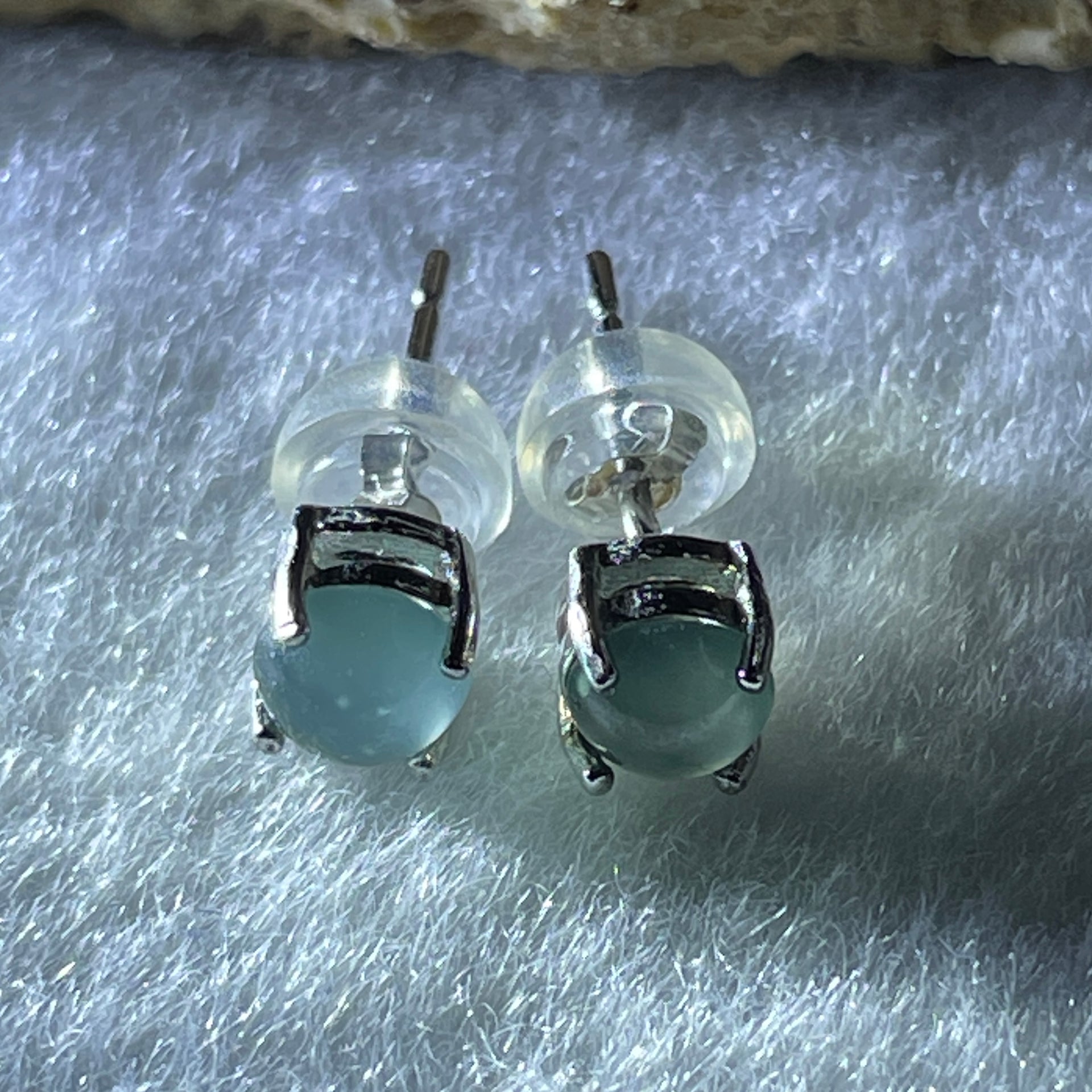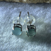 Certified Type A Icy Blueish Green Jadeite Earring in S925 Sliver 0.81g 4.4 by 2.5mm