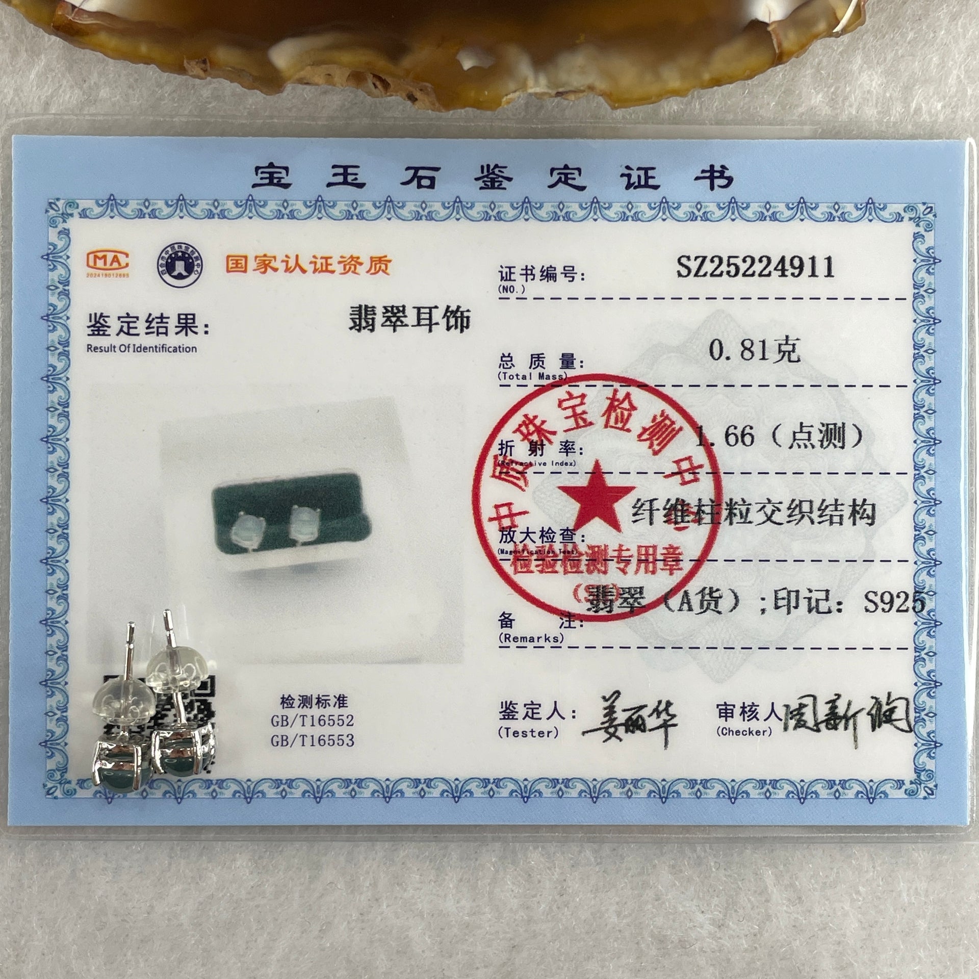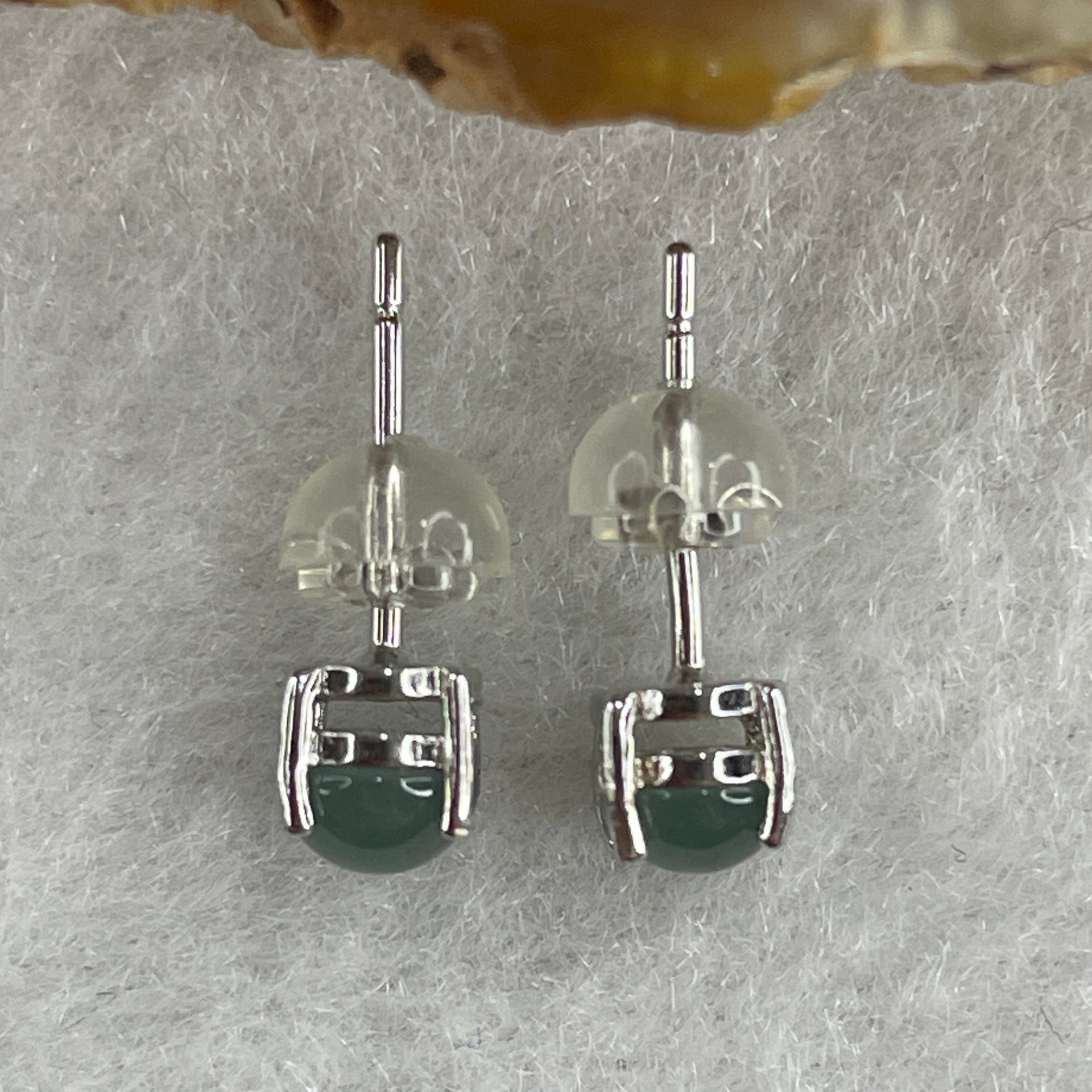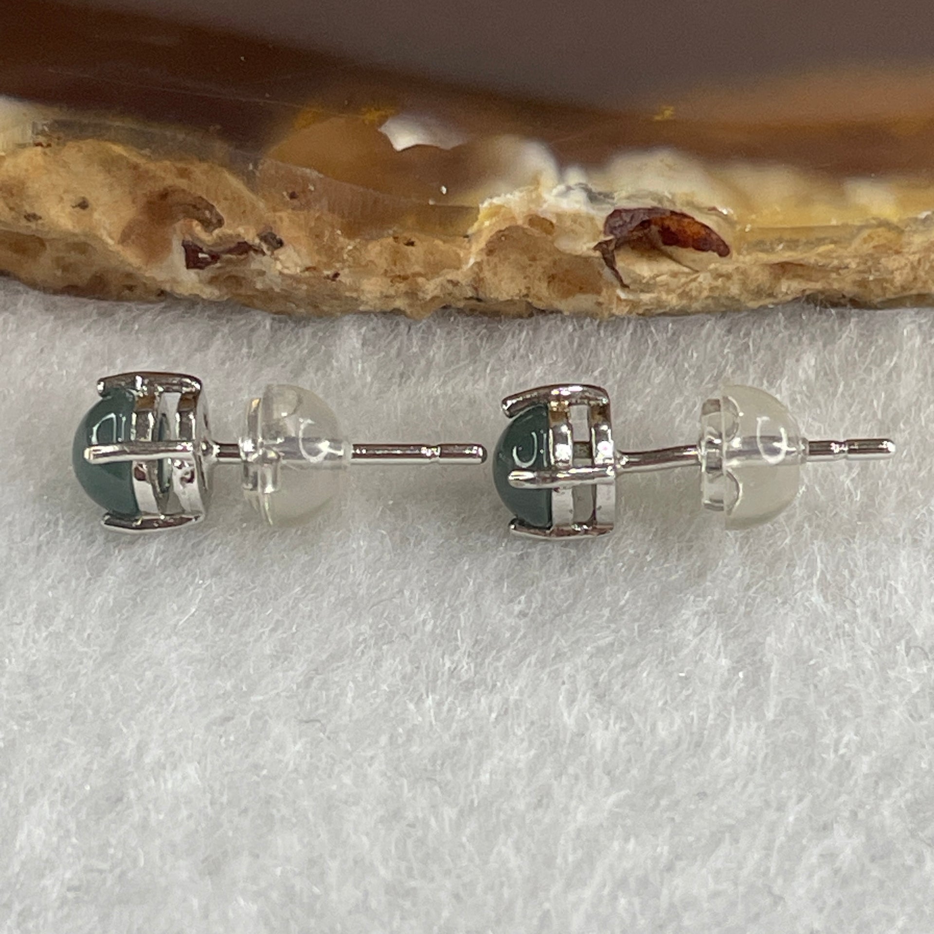 Certified Type A Icy Blueish Green Jadeite Earring in S925 Sliver 0.81g 4.4 by 2.5mm