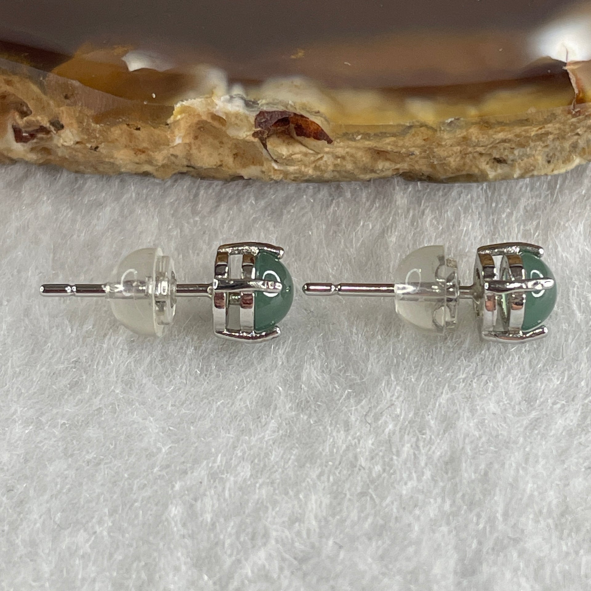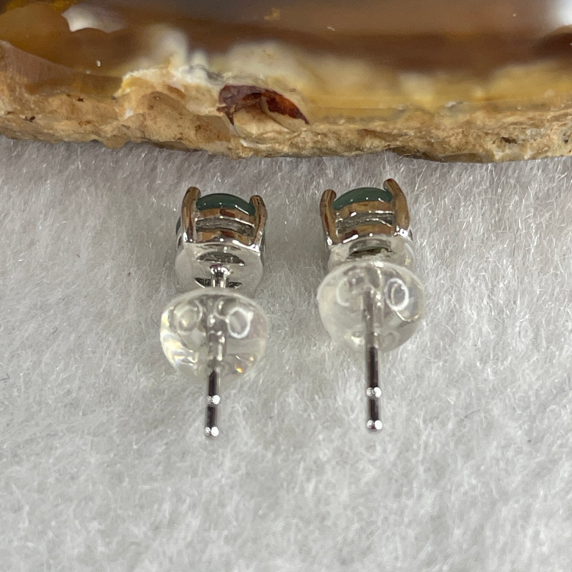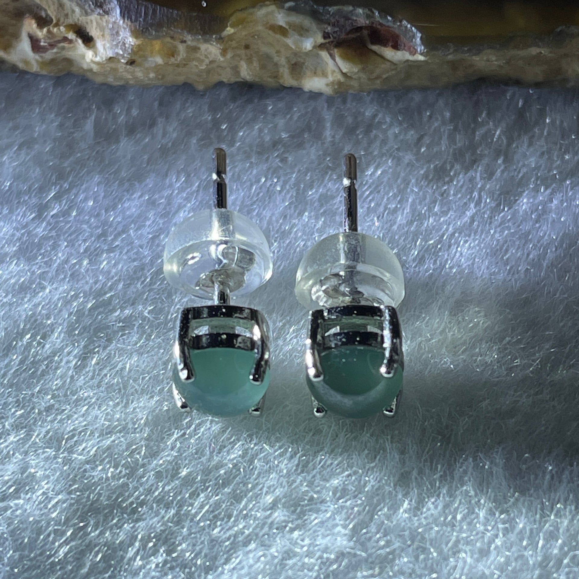 Certified Type A Icy Blueish Green Jadeite Earring in S925 Sliver 0.98g 4.5 by 2.5mm
