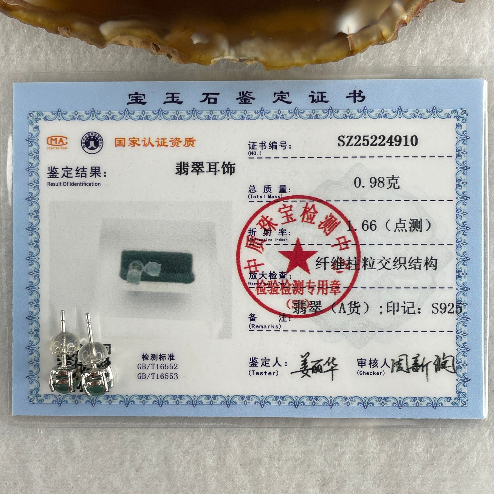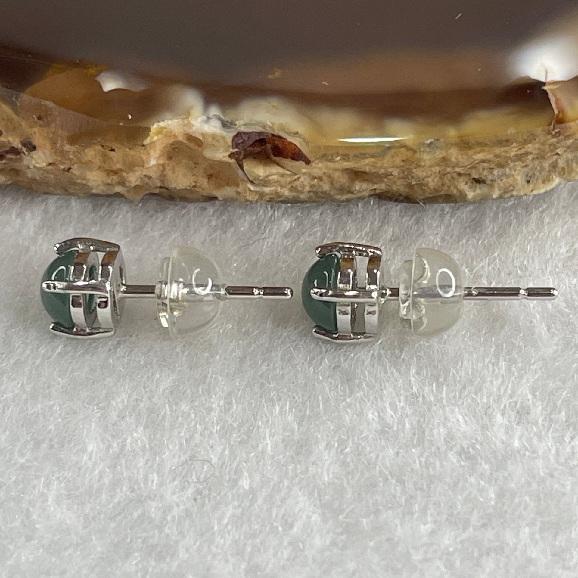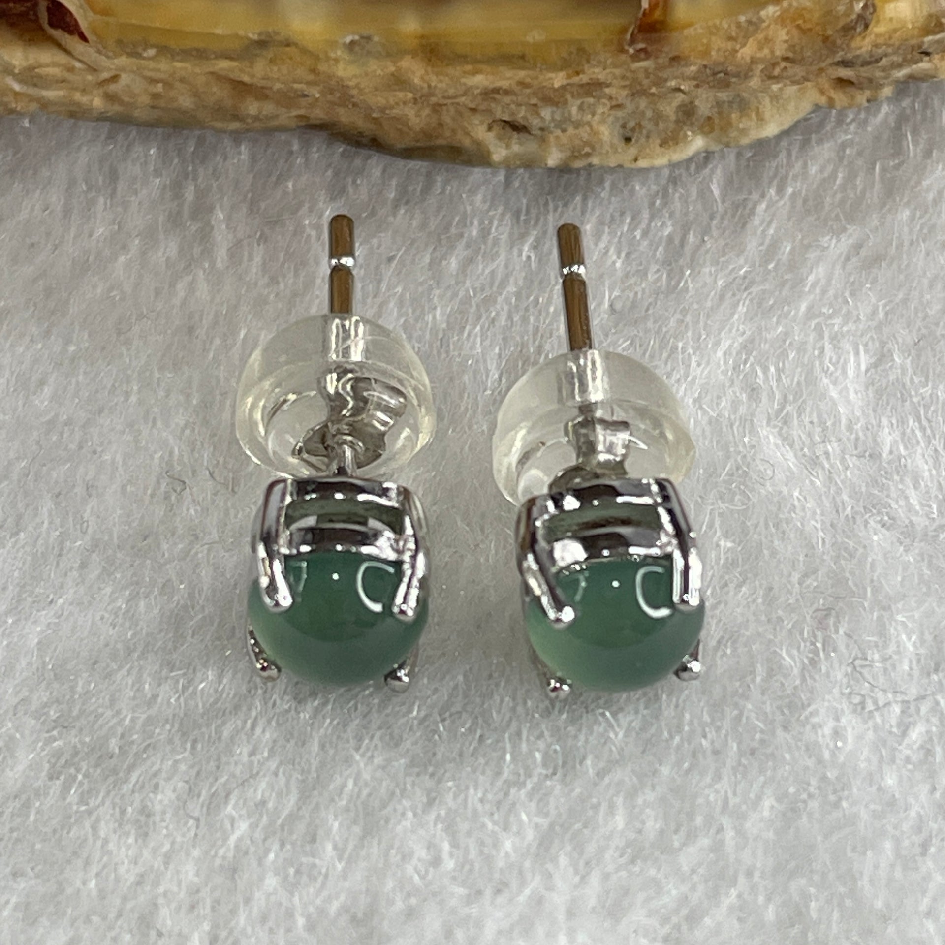 Certified Type A Icy Blueish Green Jadeite Earring in S925 Sliver 0.98g 4.5 by 2.5mm
