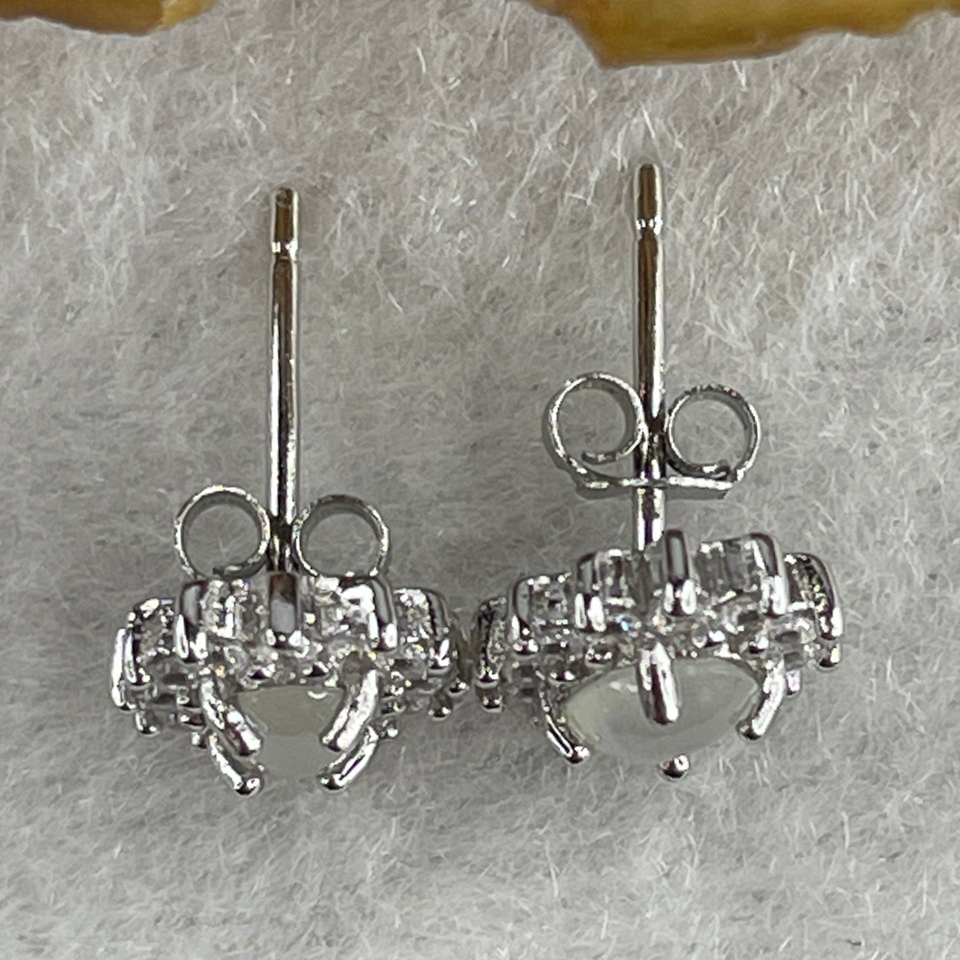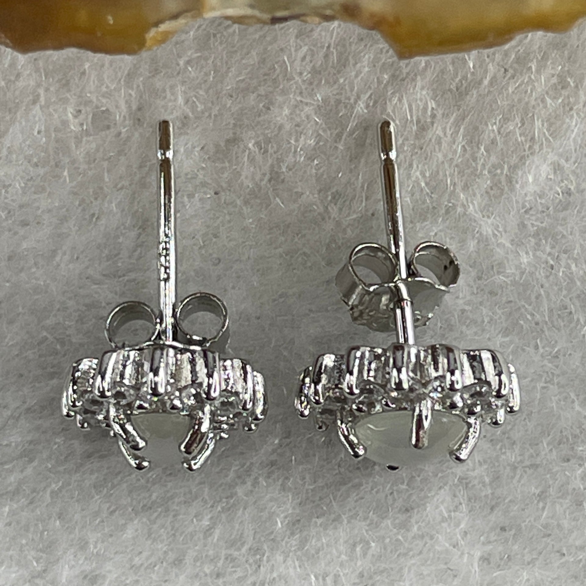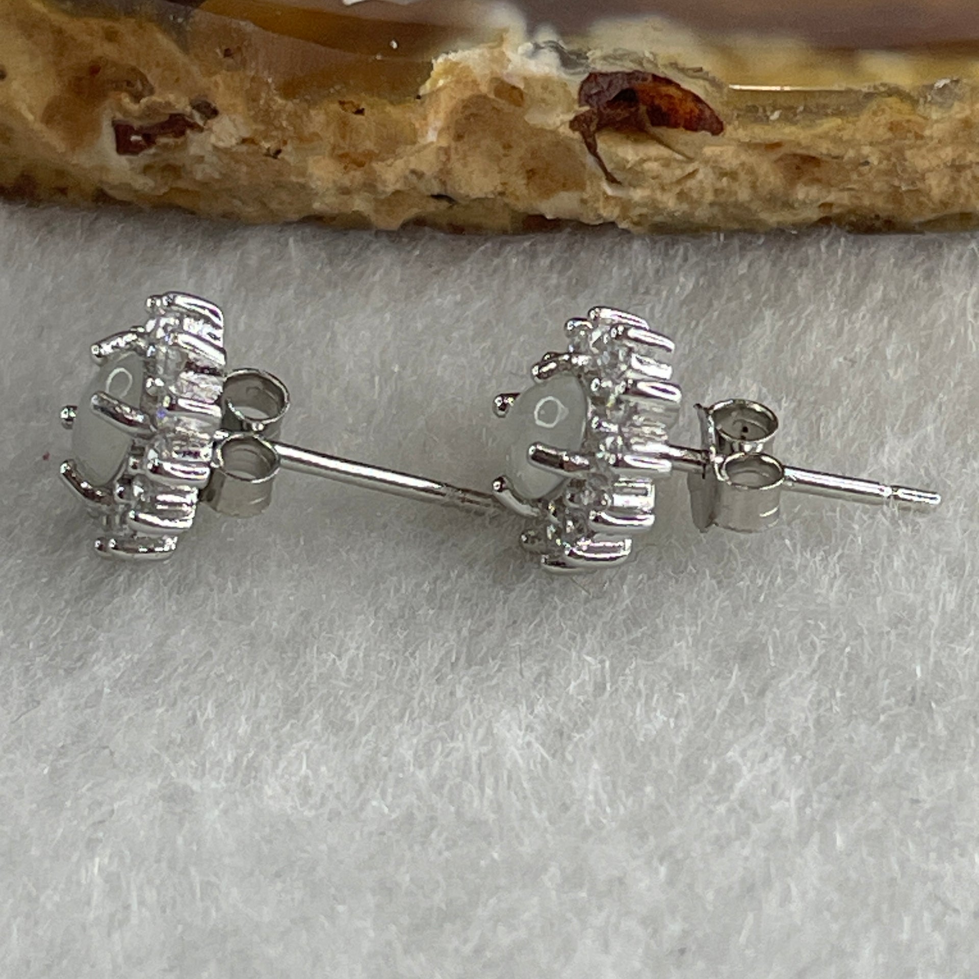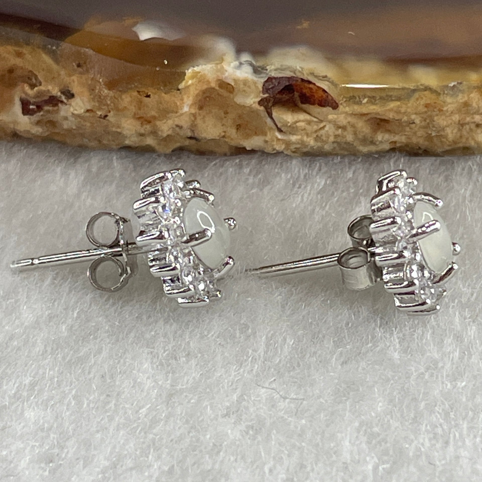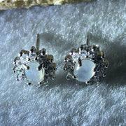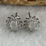 Type A Icy White Jadeite Earring with Cubic Zirconia in S925 Sliver 1.62g 4.7 by 4.1 by 2.0mm