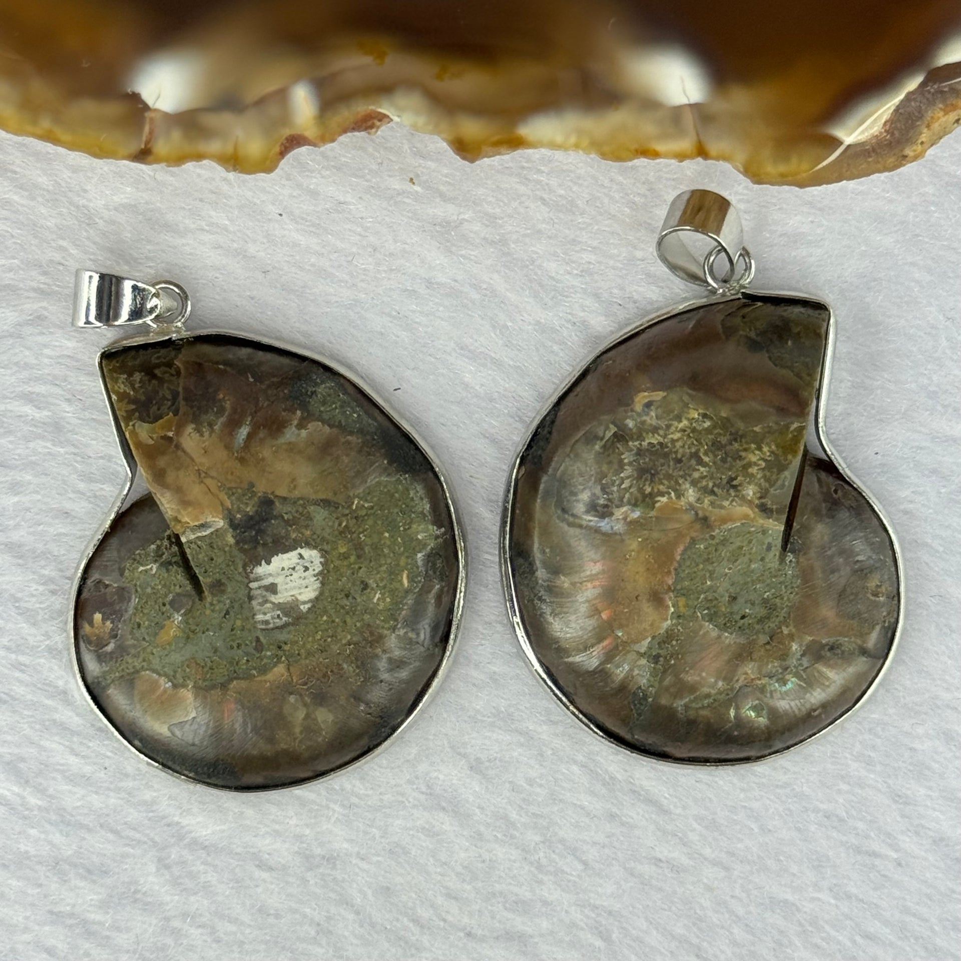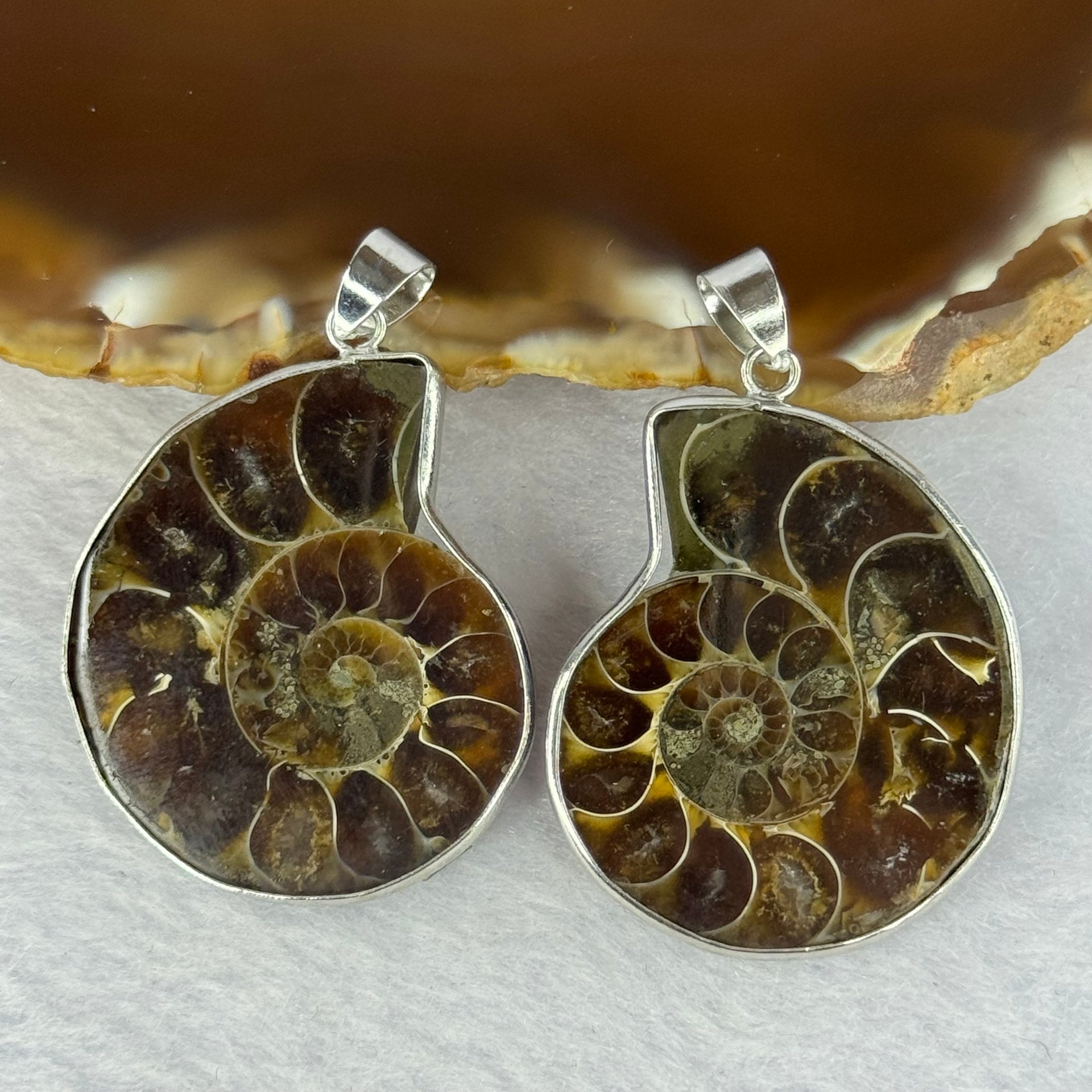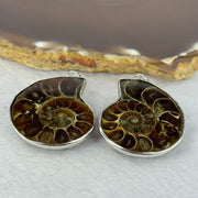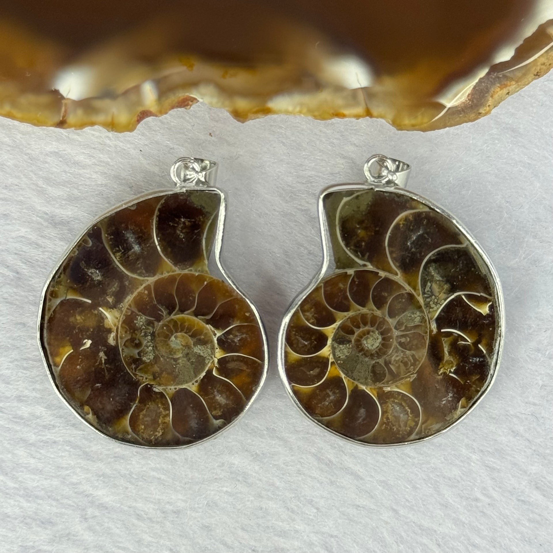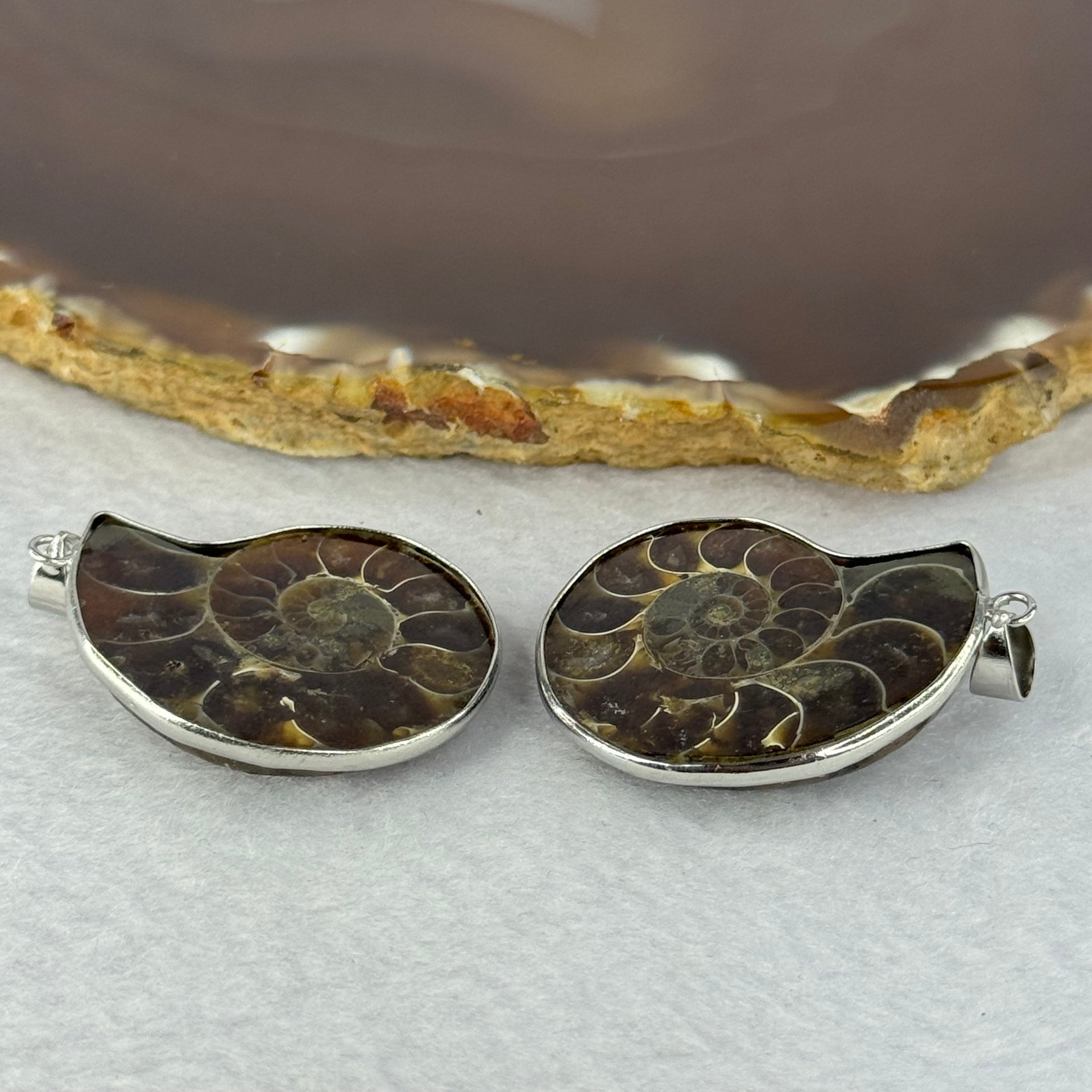 Natural Ammonite Fossil In Sliver Pendent/Charm Pair Total Weight 19.28g Each About 15.2 by 12.9 by 3.6mm