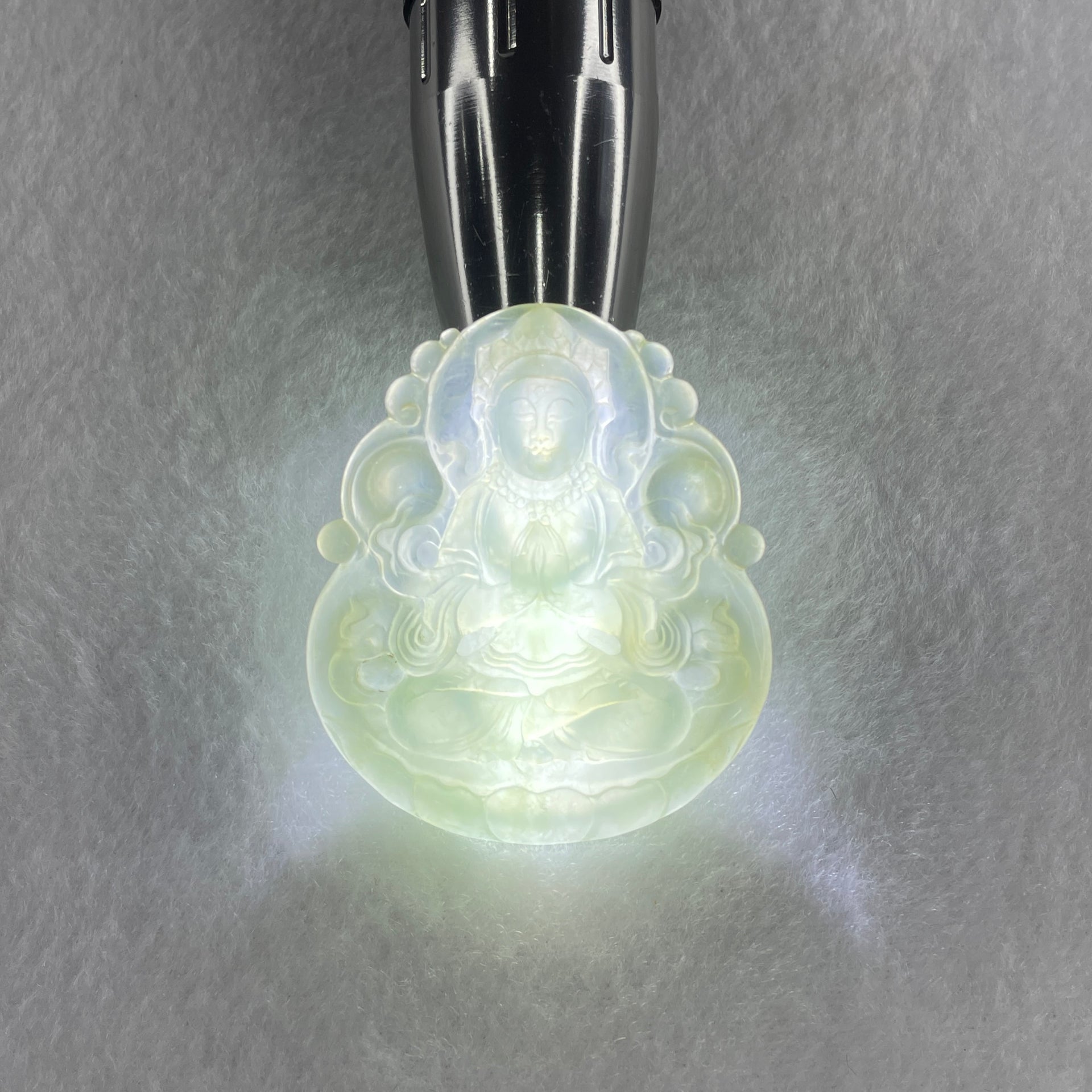 Natural Type A High Icy Light Green Jadeite Guan Yin Pendant 24.77g 54.9 by 47.4 by 6.1mm