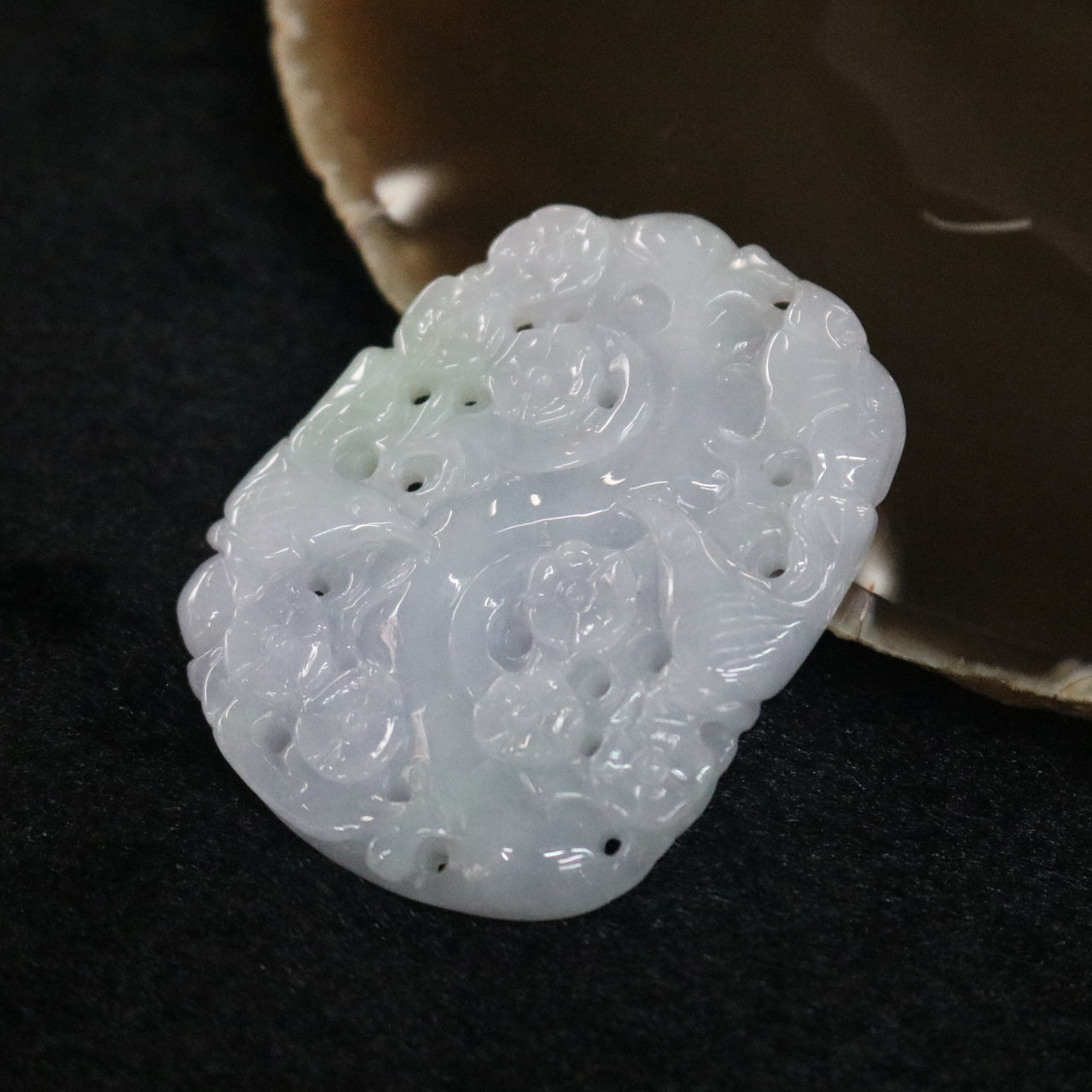 Grandmaster Type A Lavender Green Jadeite Twin Bird And Flower Pendant 喜上眉梢 63.42g 52.5 by 52.5 by 12.1mm$2,800.00$2,800.00Unit price / per -