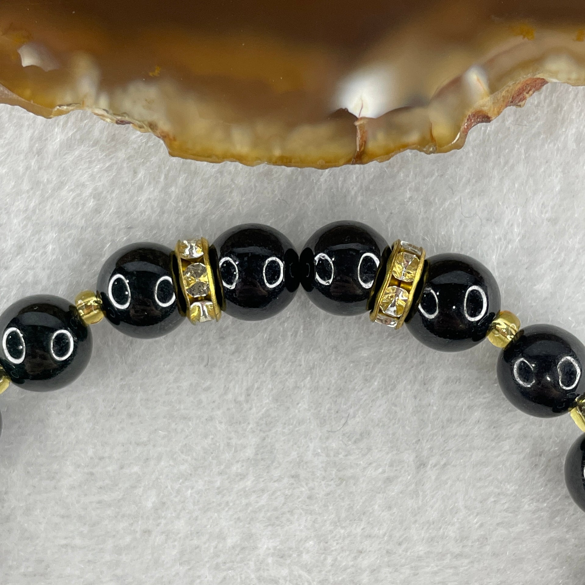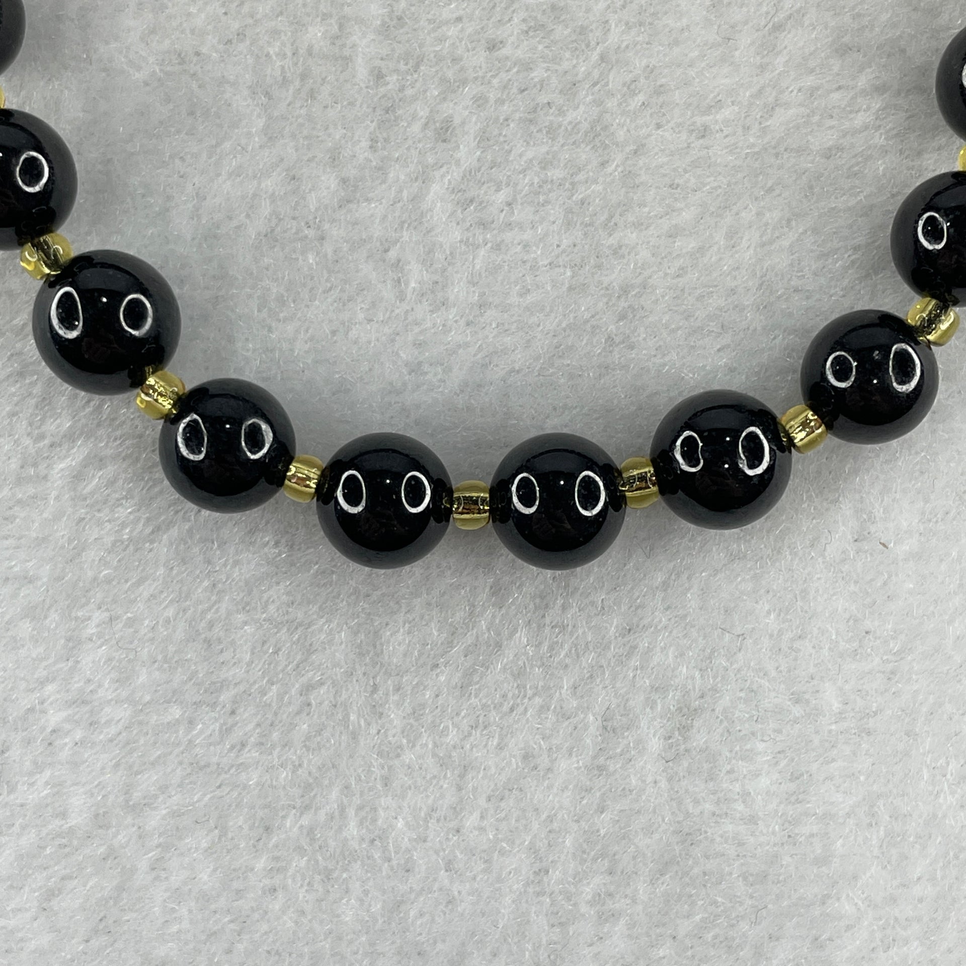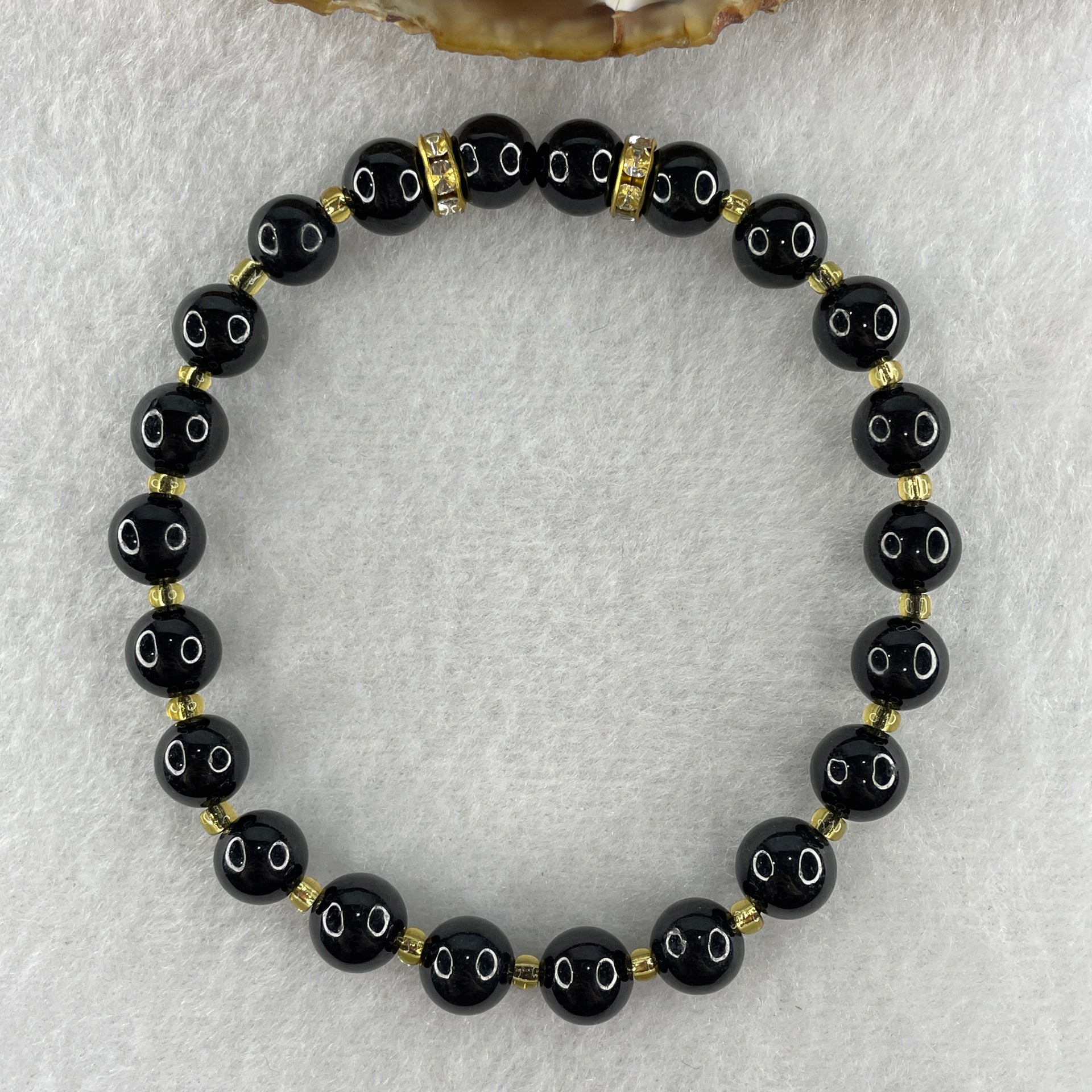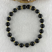 Certified Natural Type A Opaque Black Omphacite Jadeite Beads Bracelet 21.806g 18.5cm 8.5mm 22 Beads