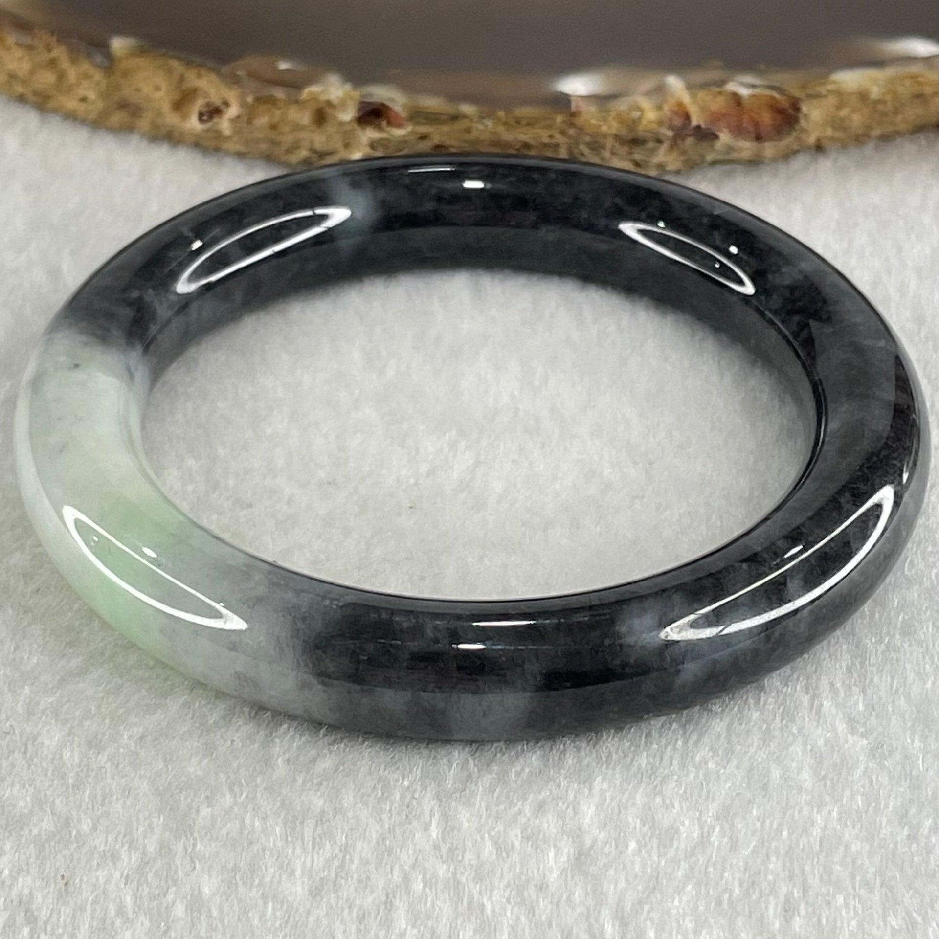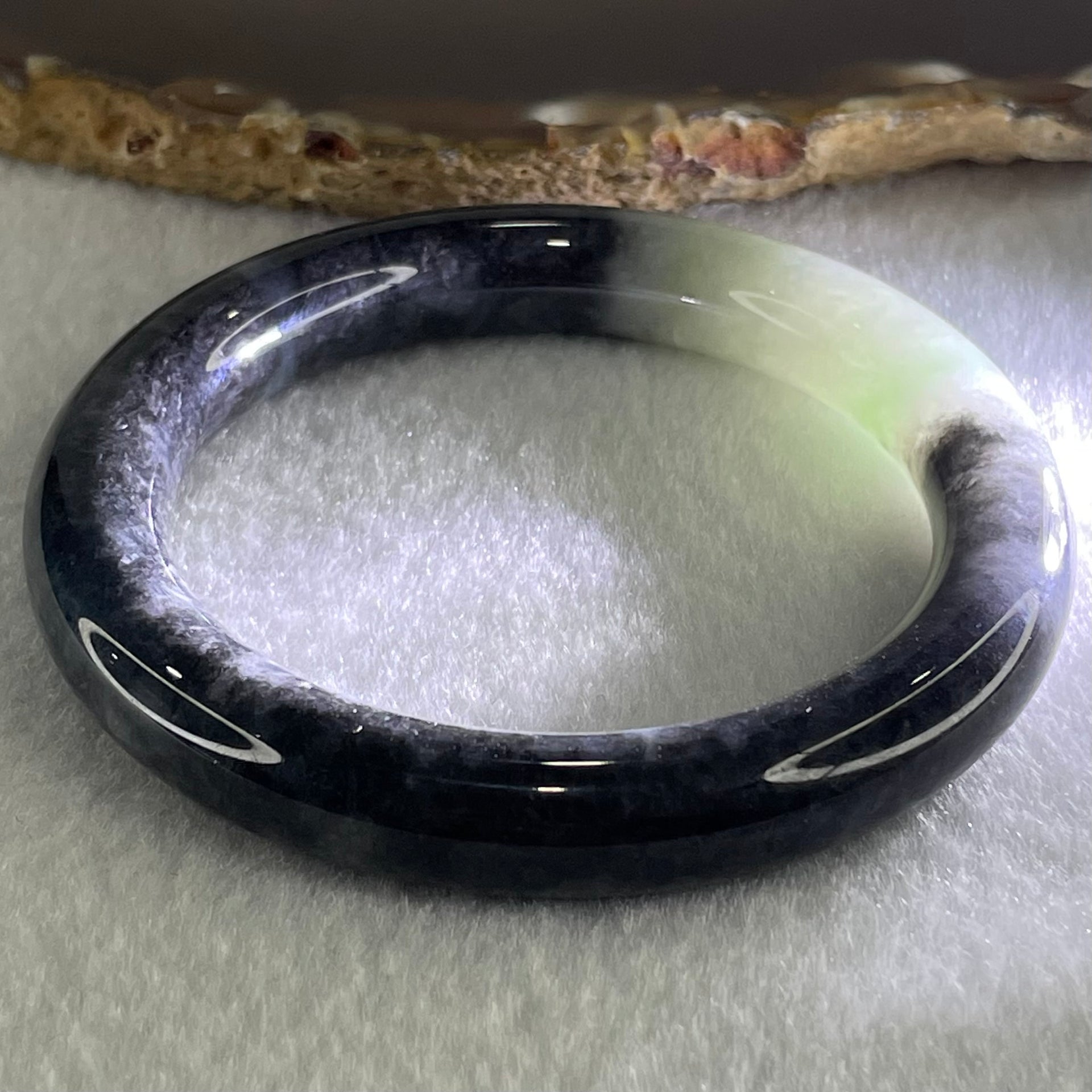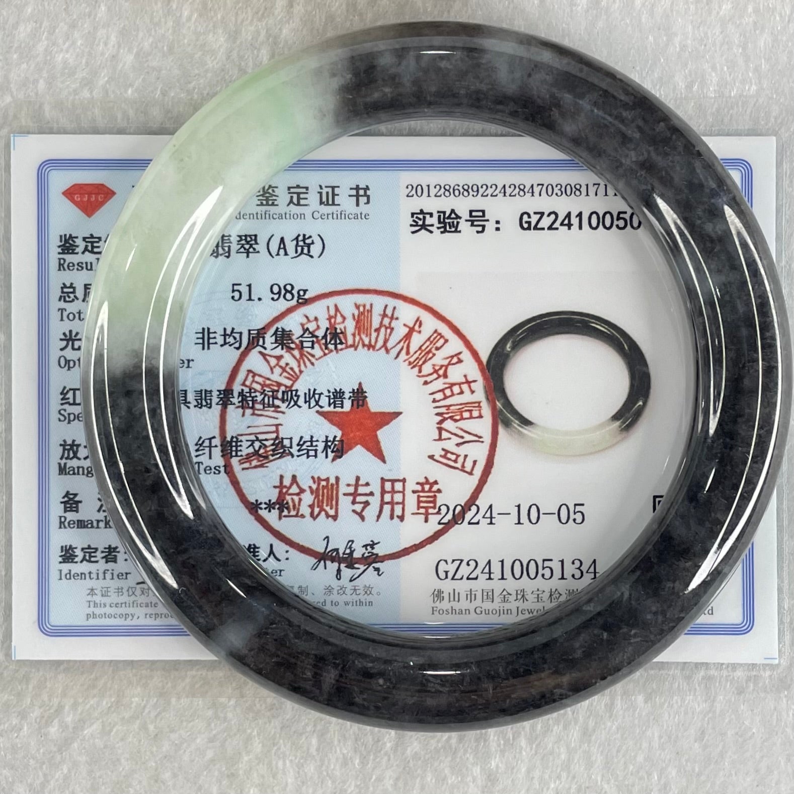 Type A Translucent to Opaque Wuji Black with Light Green Patch Jadeite Bangle 51.91g Internal Diameter 52.9mm 10.8 by 10.4mm (Close to Perfect)