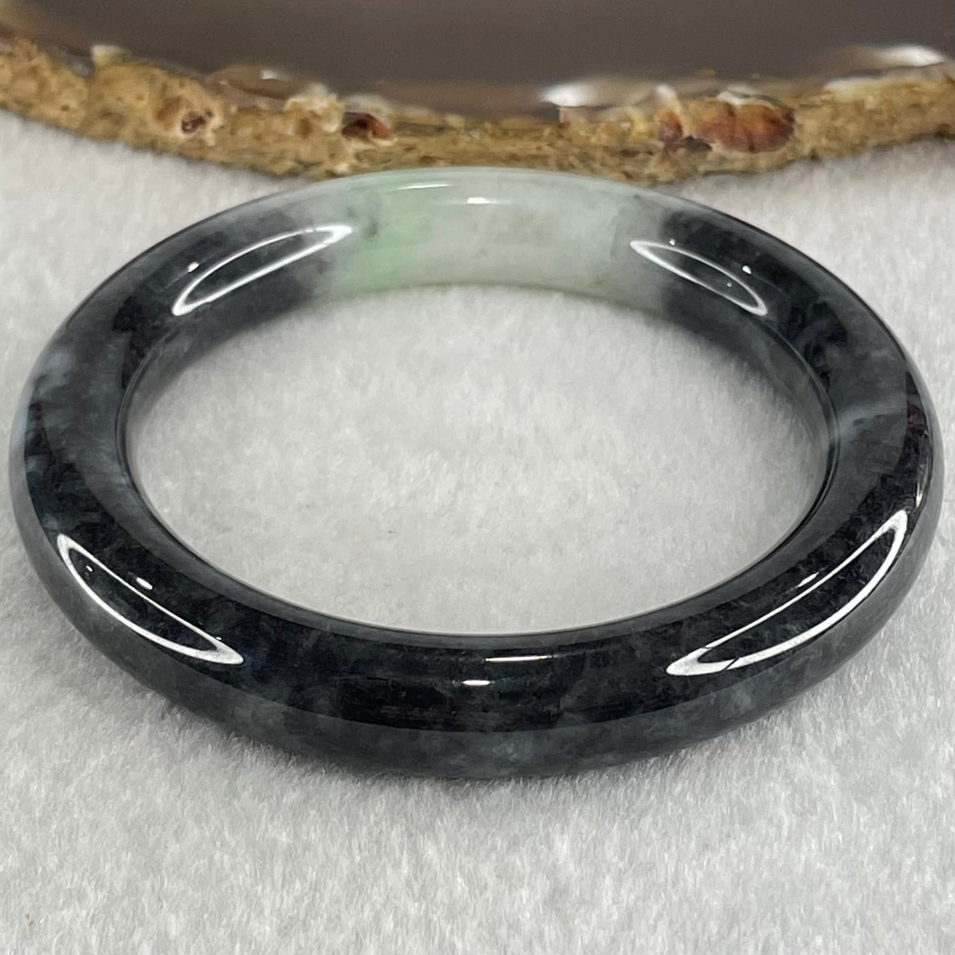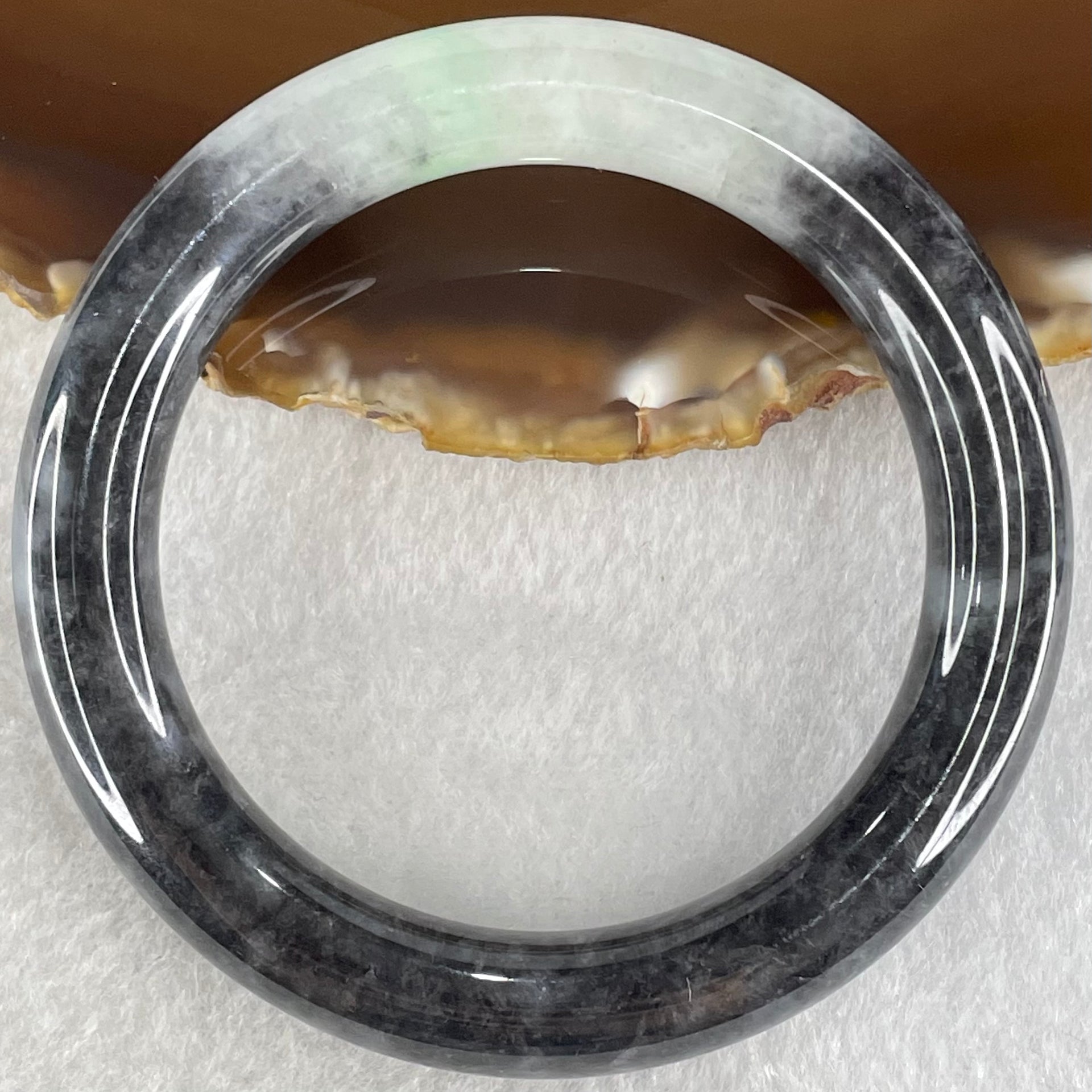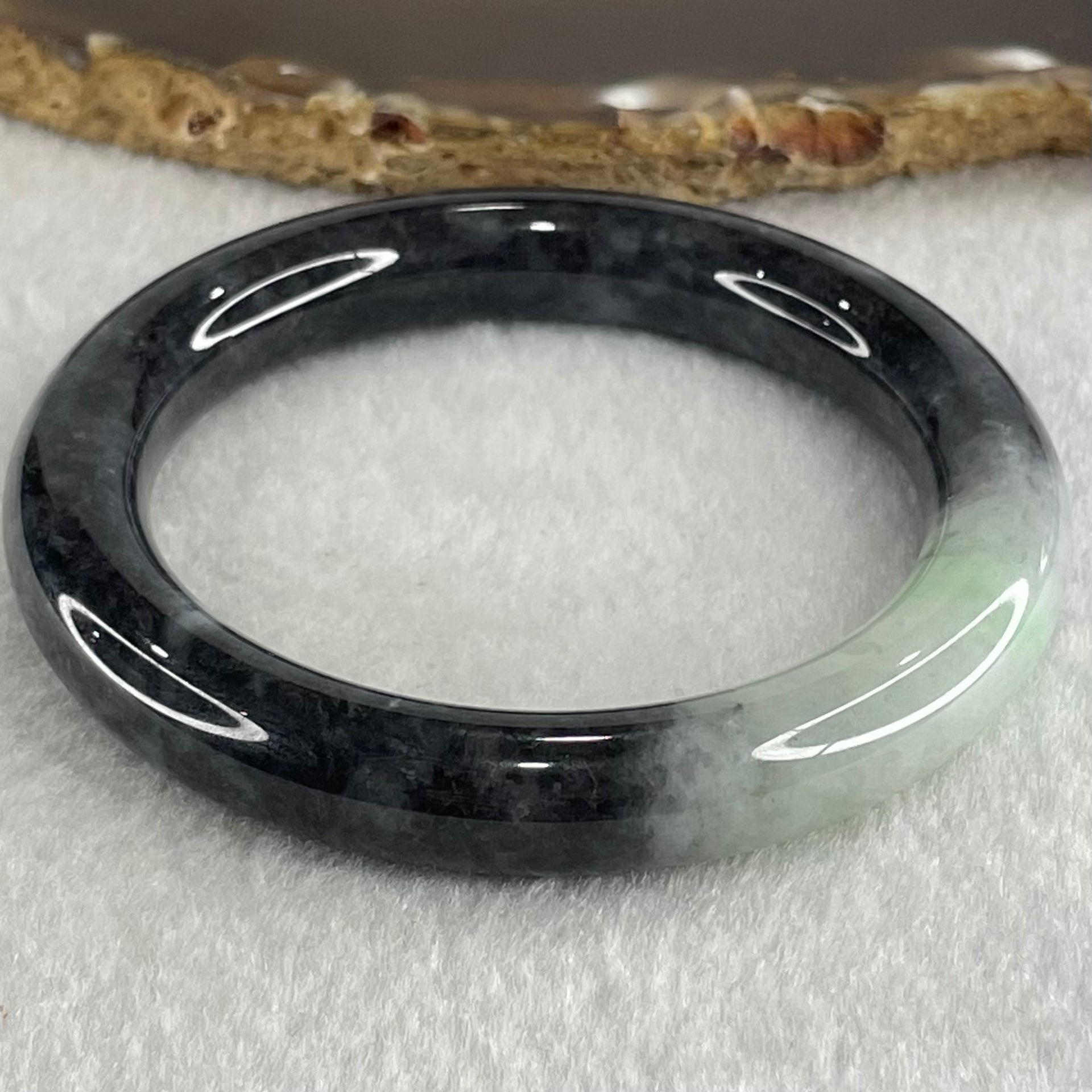 Type A Translucent to Opaque Wuji Black with Light Green Patch Jadeite Bangle 51.91g Internal Diameter 52.9mm 10.8 by 10.4mm (Close to Perfect)