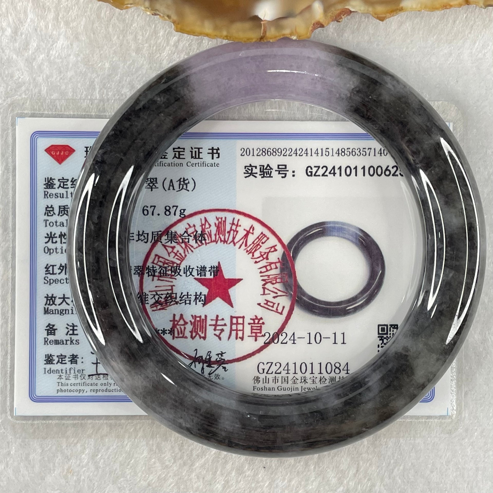 Type A Wuji Black and Intense Lavender Jadeite Bangle 67.87g Internal Diameter 53.2mm 11.4 by 11.2mm (Close to Perfect)