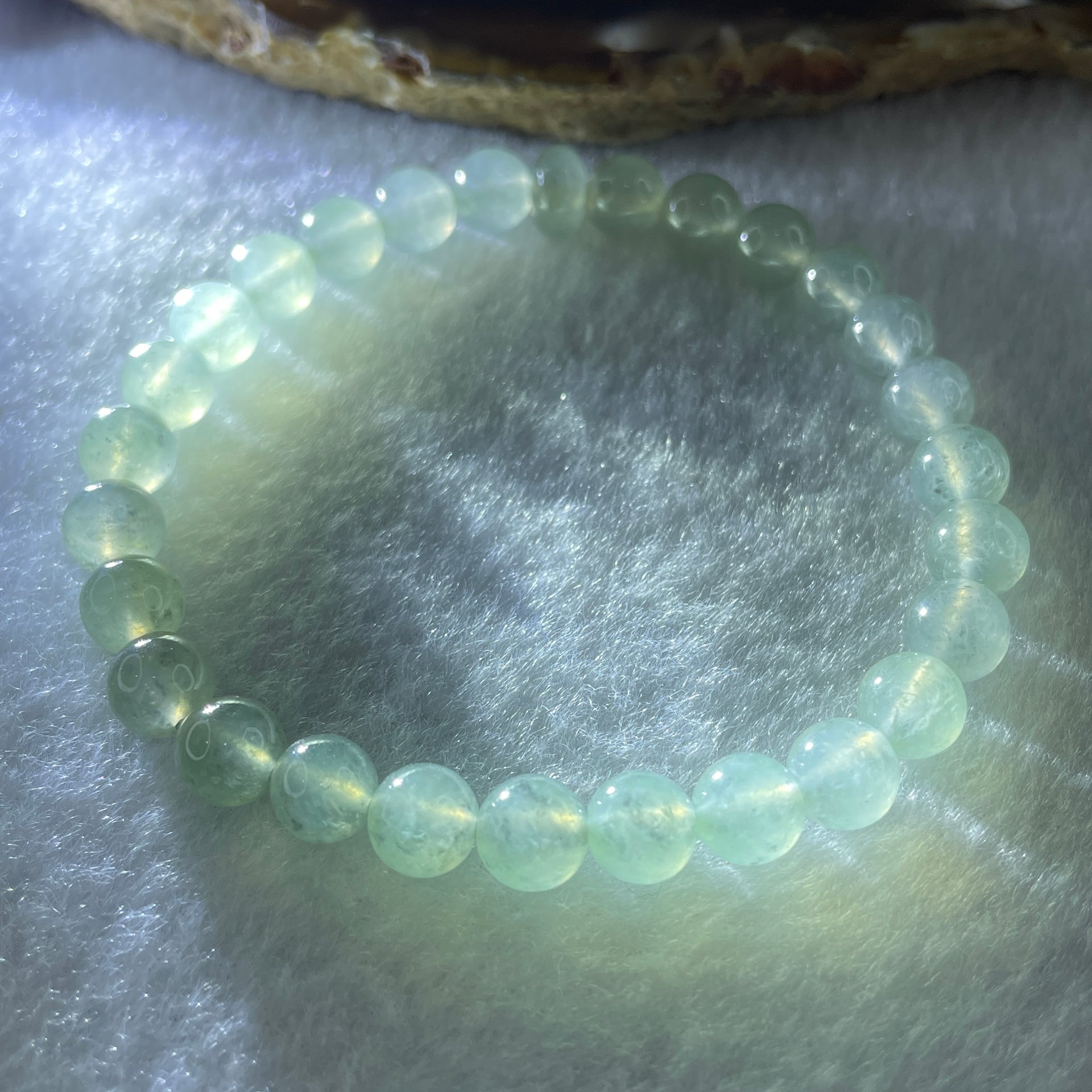 High Grade Natural Type A Icy Light Blueish Green Jadeite Beads Bracelet 14.91g 15.5cm 6.9mm 28 Beads