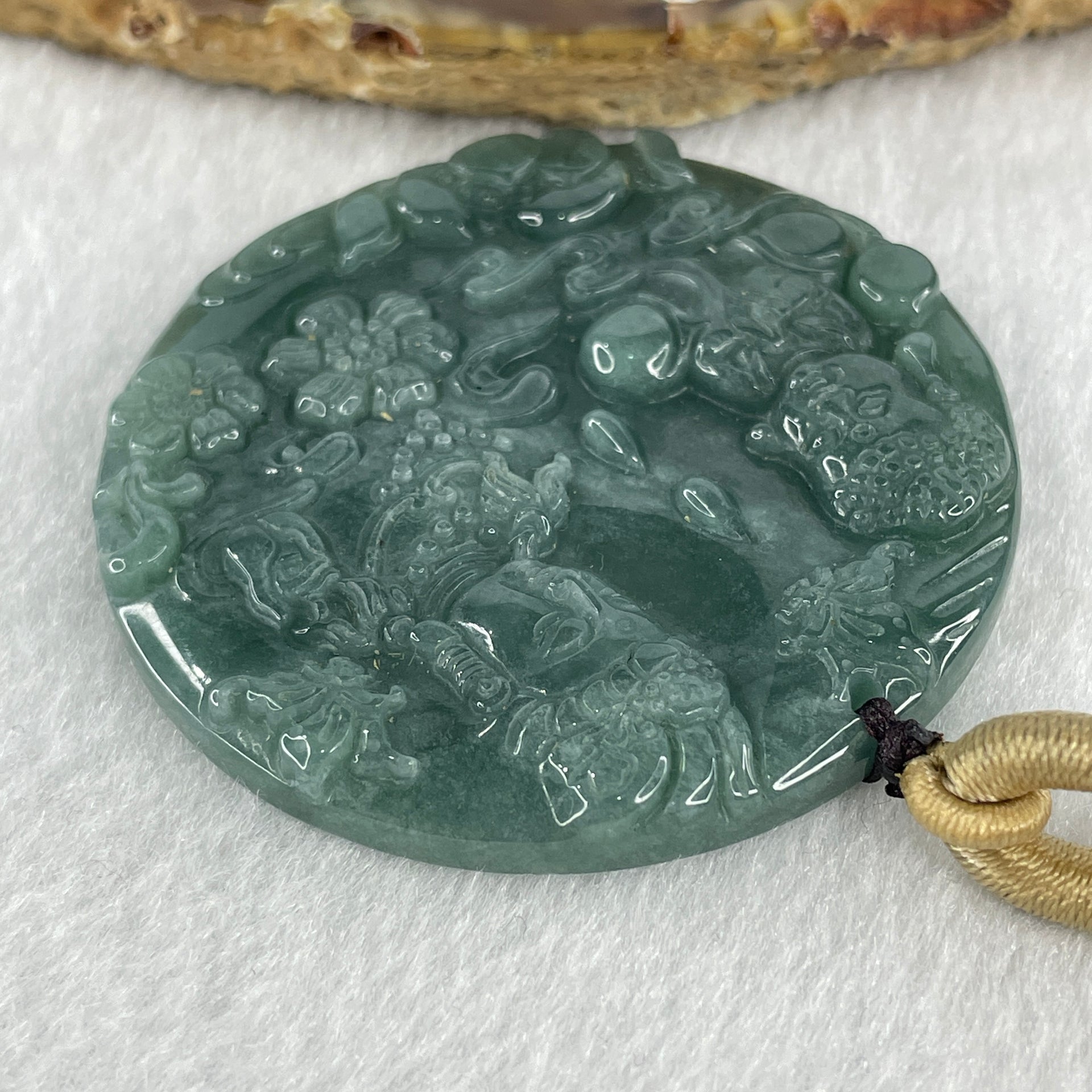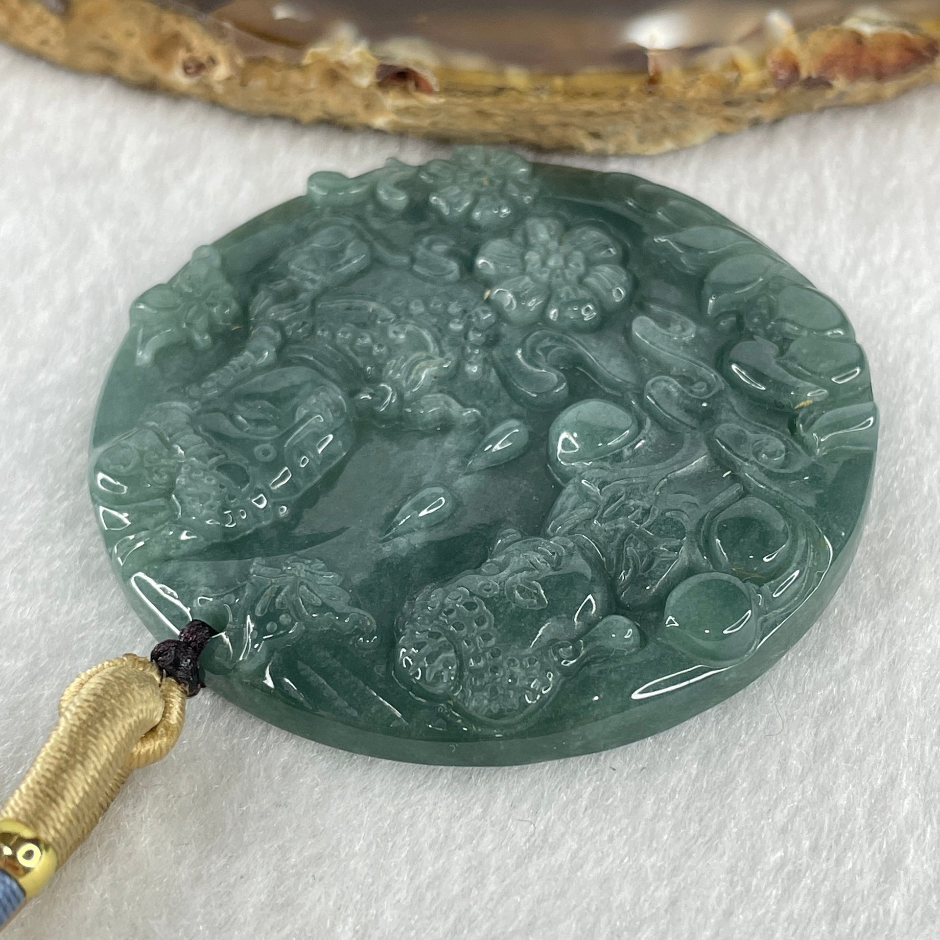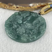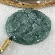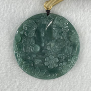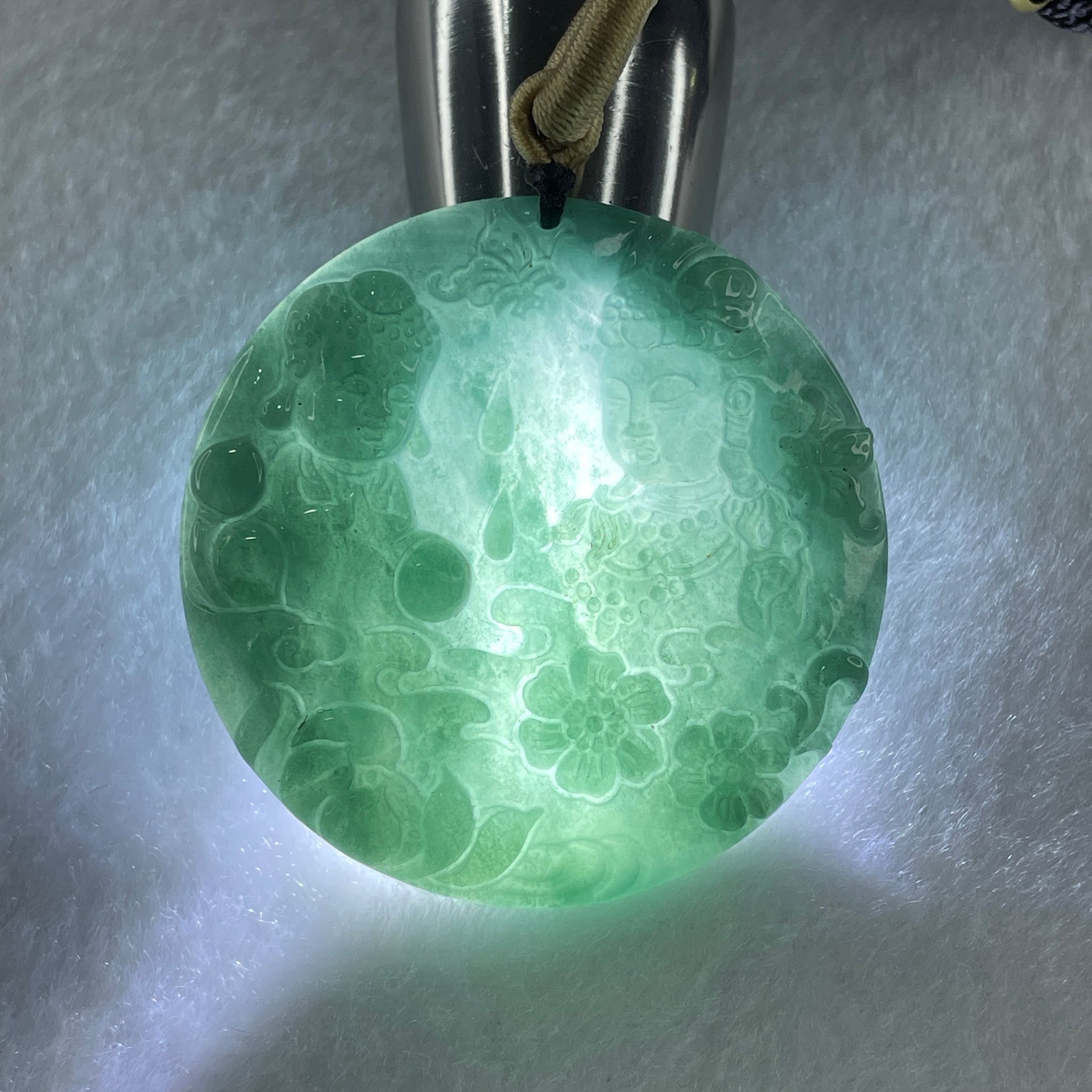 Natural Type A Blueish Green Jadeite Guan Yin with Baby Buddha Pendant 35.27g 49.5 by 5.8mm