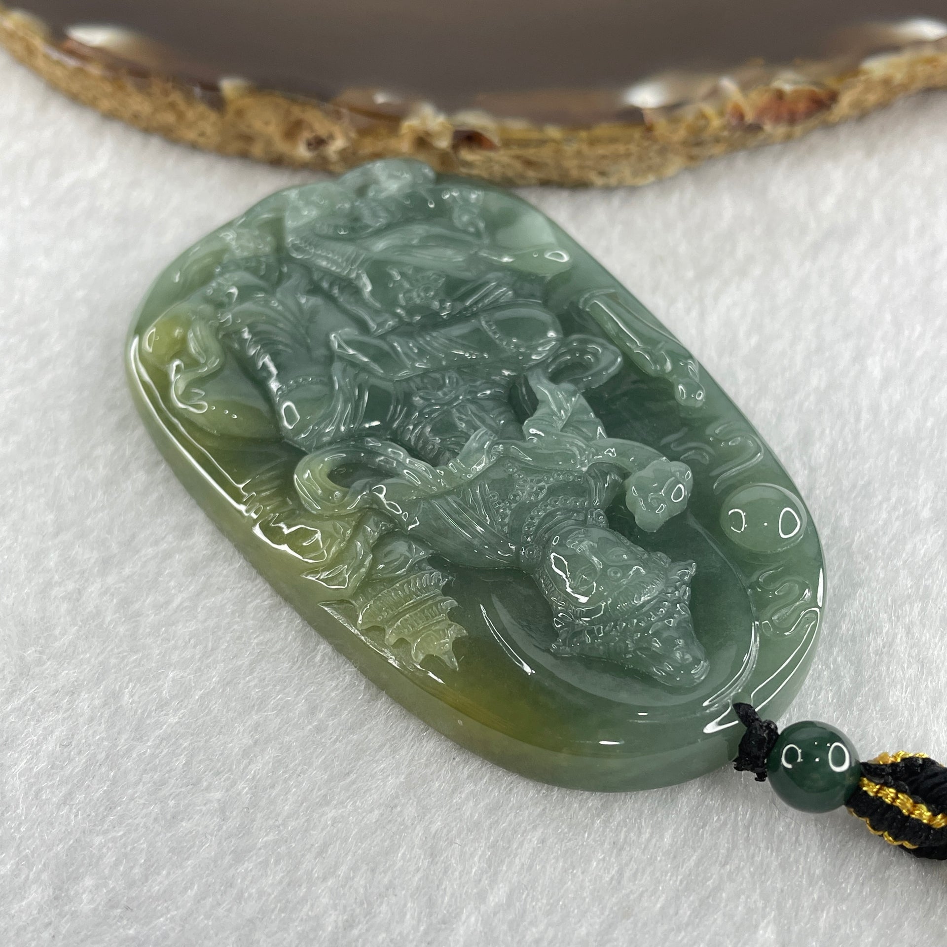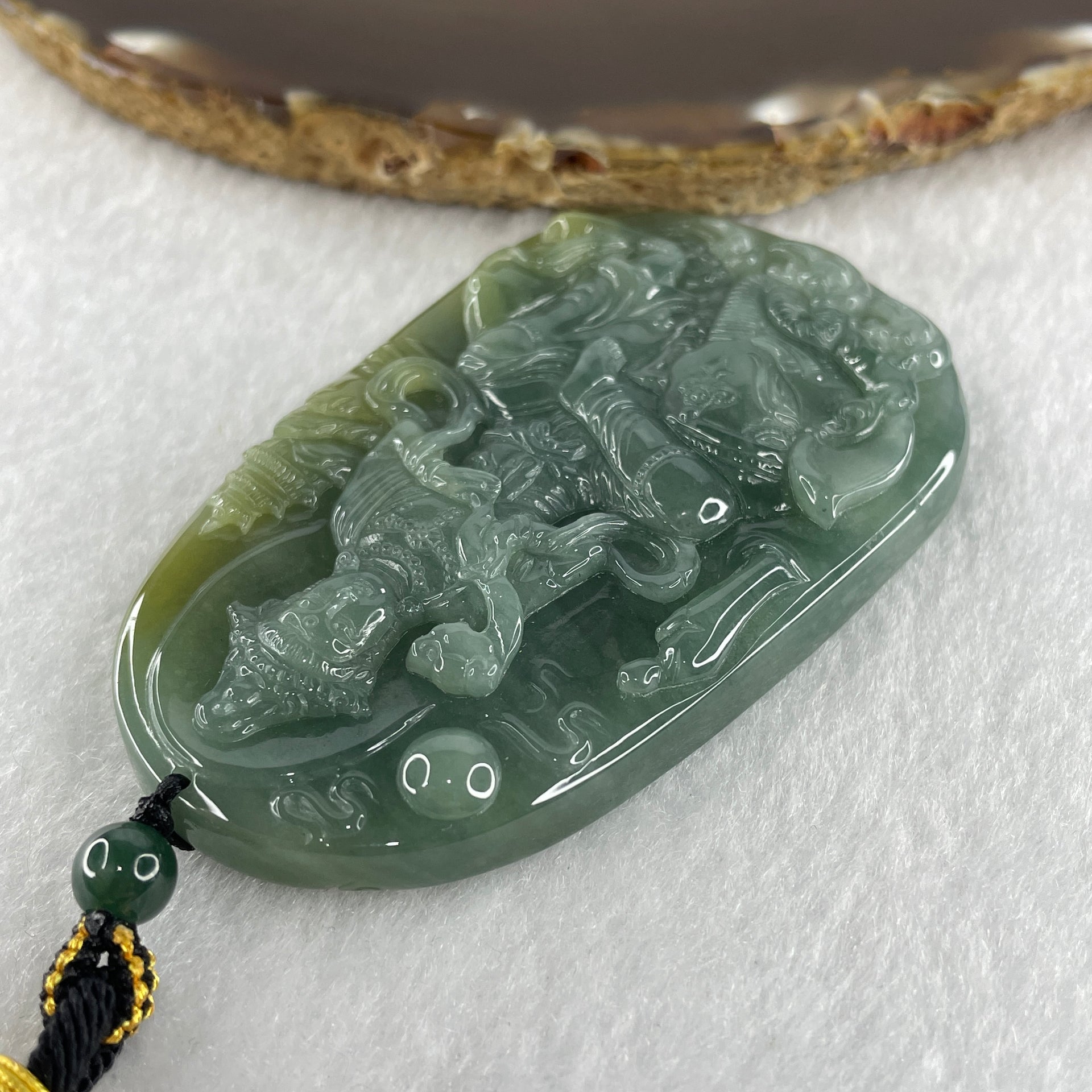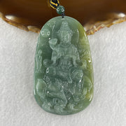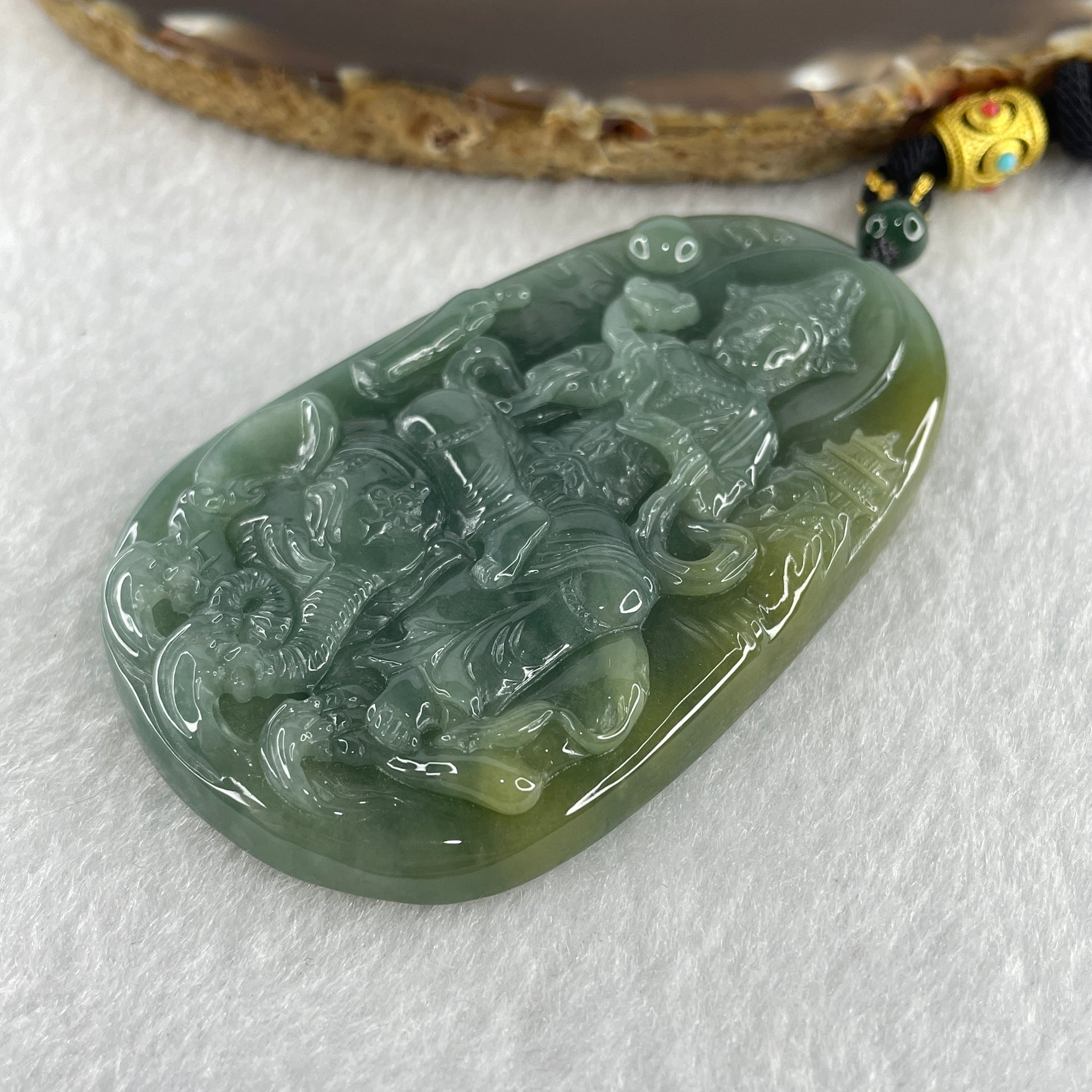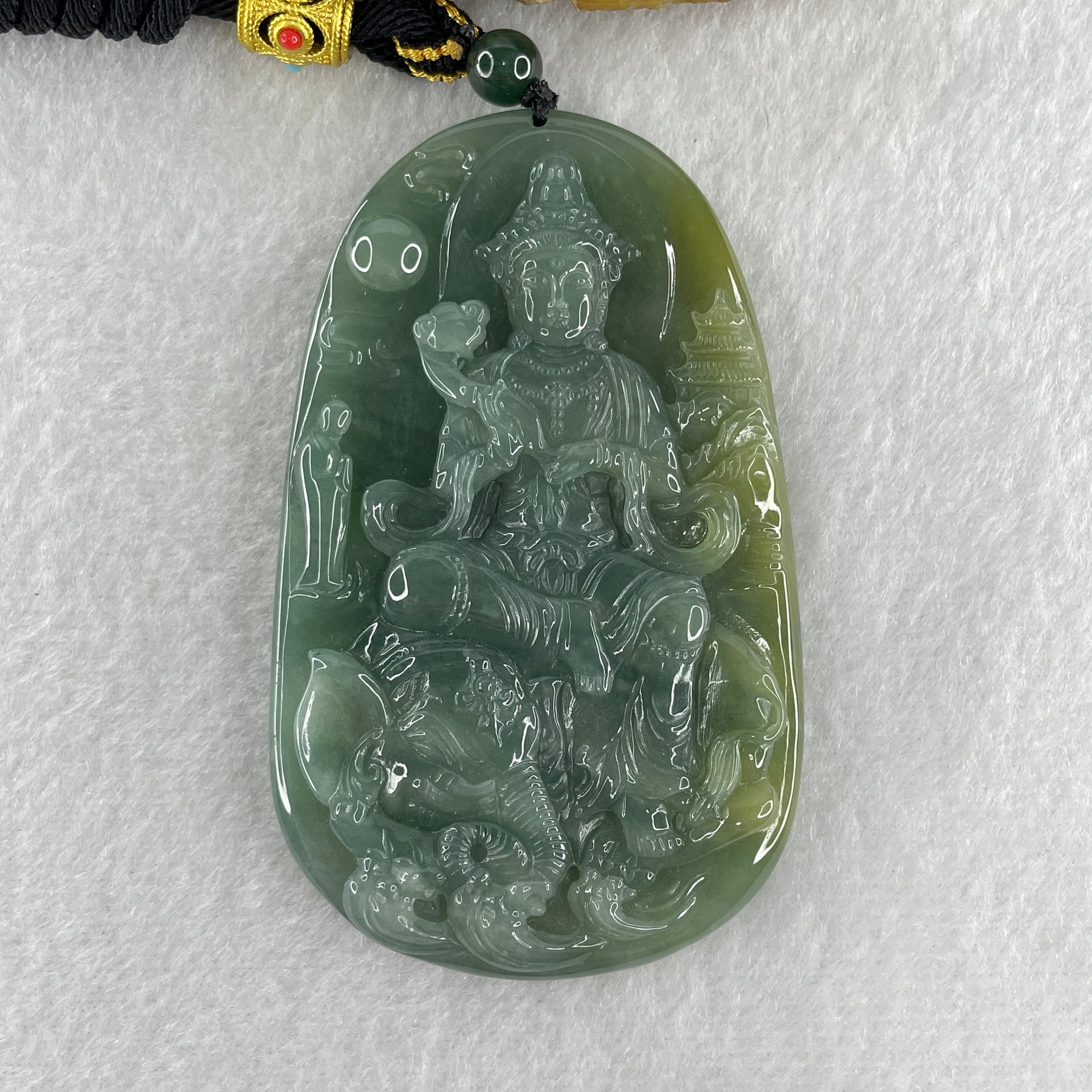 Natural Type A Blueish Green Jadeite Samantabhadra Bodhisattva Guan Yin on Elephant and Flower Pendant 70.59g 72.3 45.1 by 9.3mm