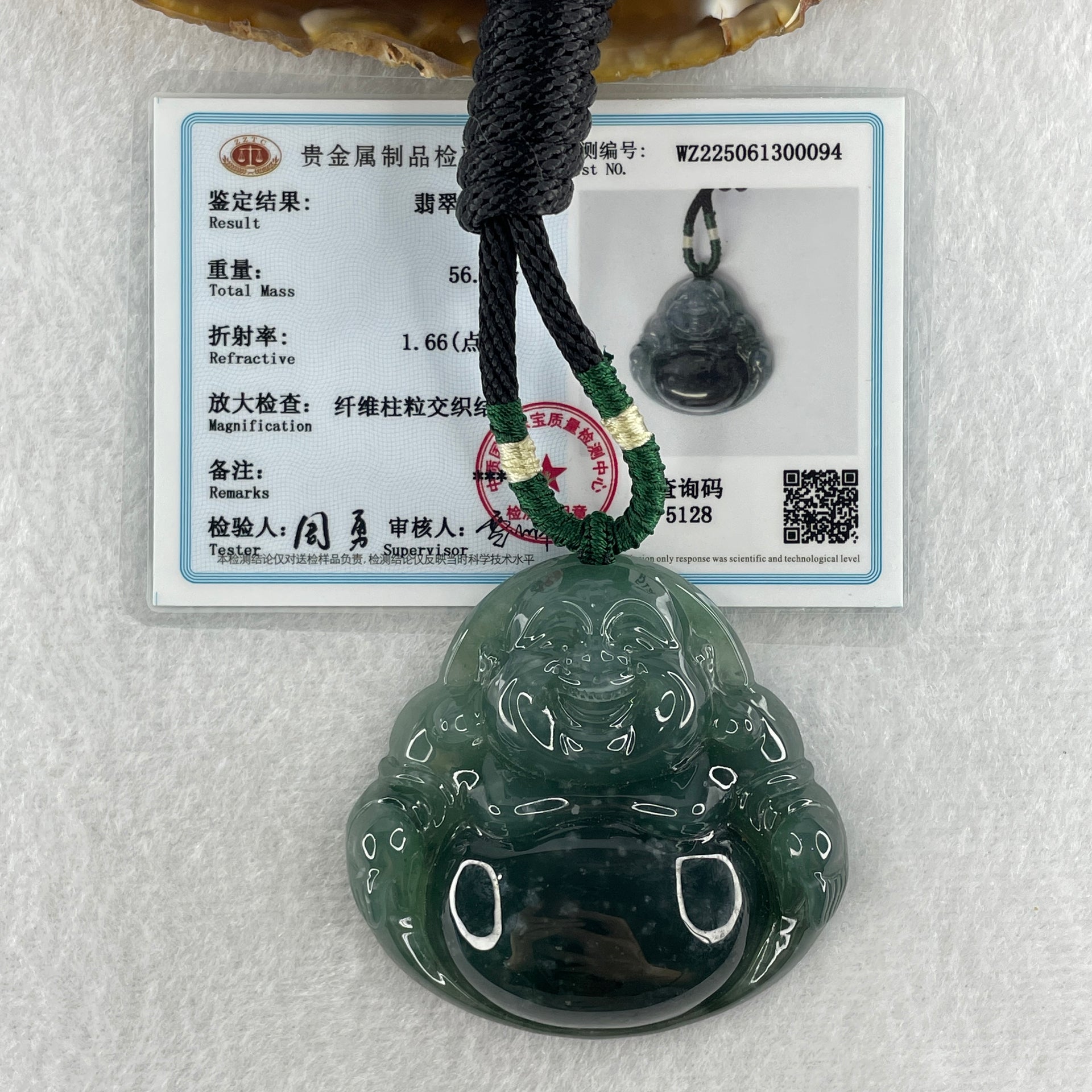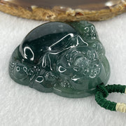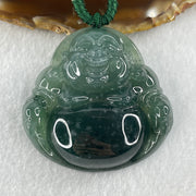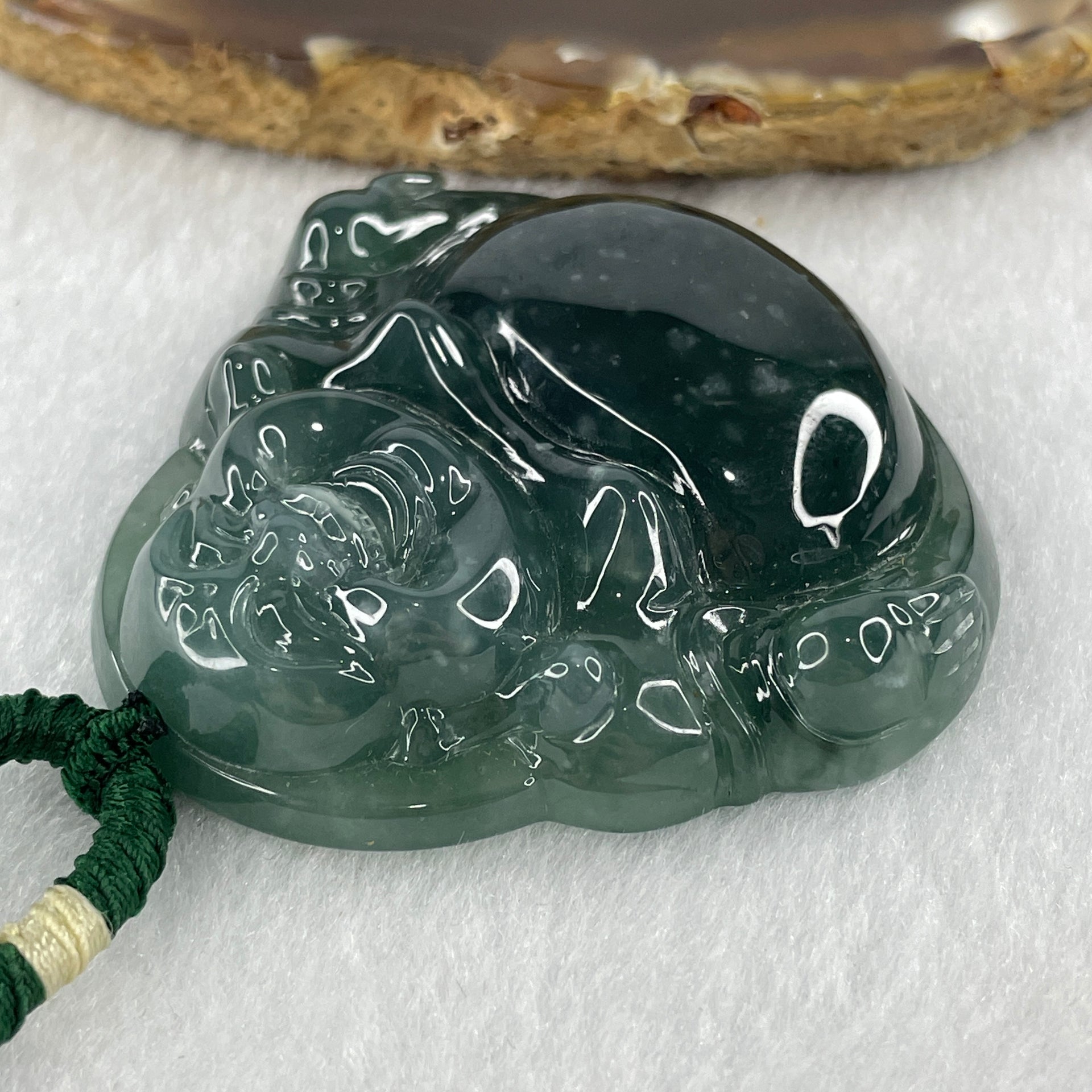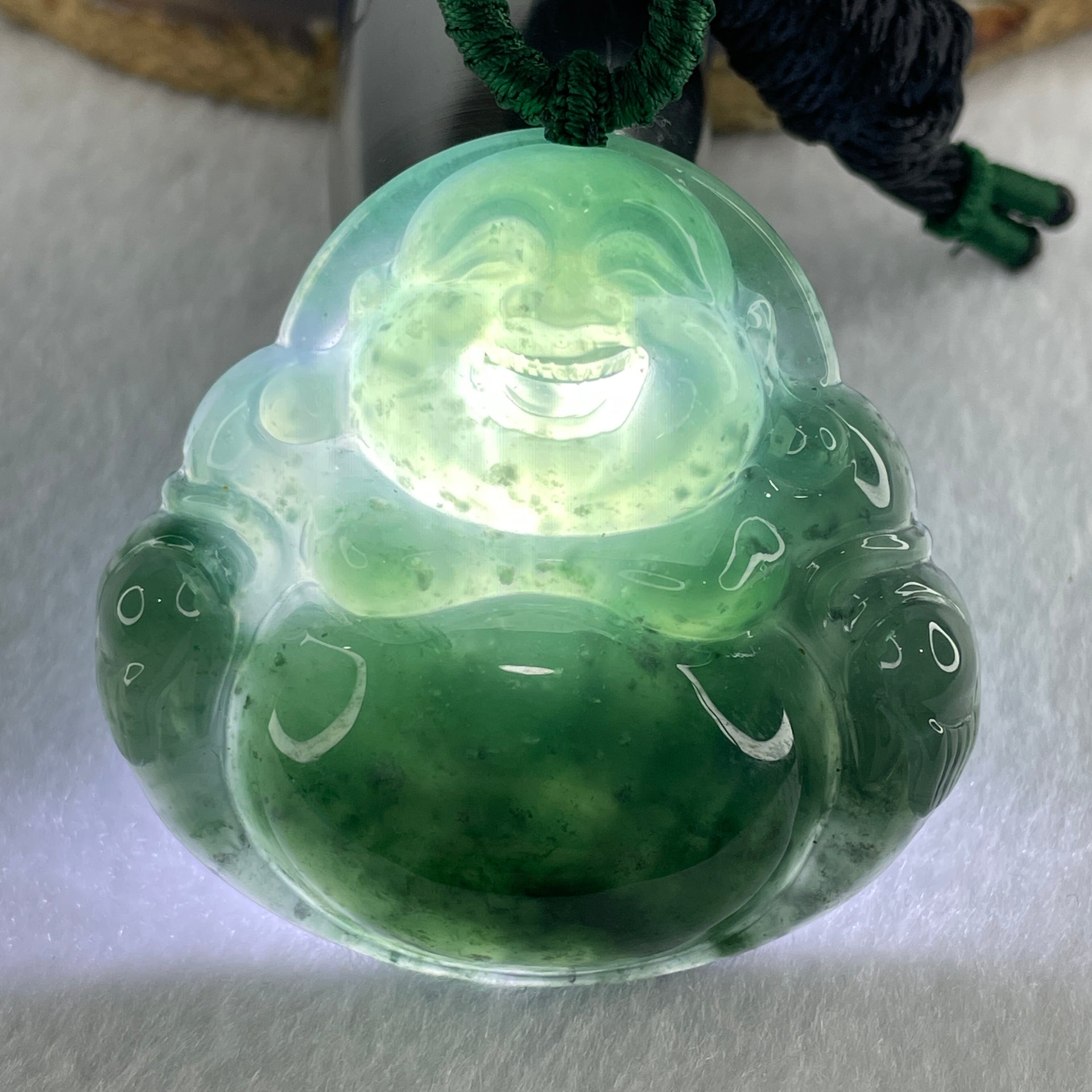 Natural Type A Icy Blueish Green Jadeite Milo Buddha Pendant 56.65g 50.8 by 52.8 by 12.4mm
