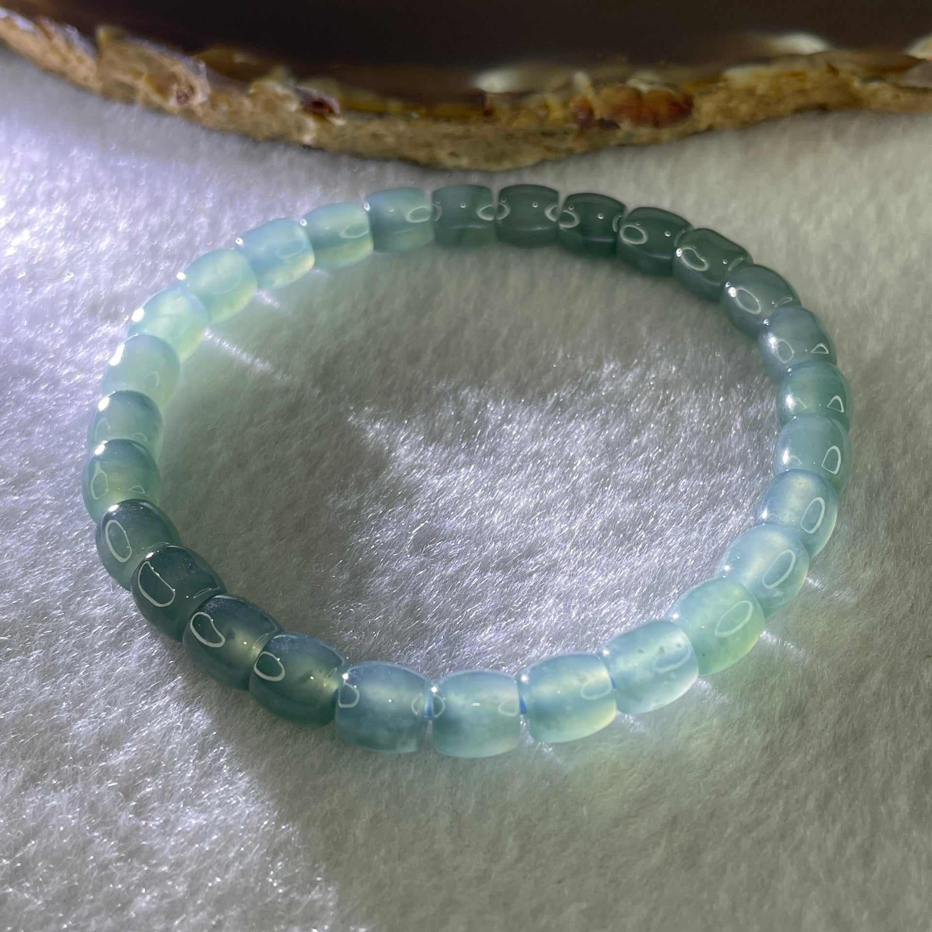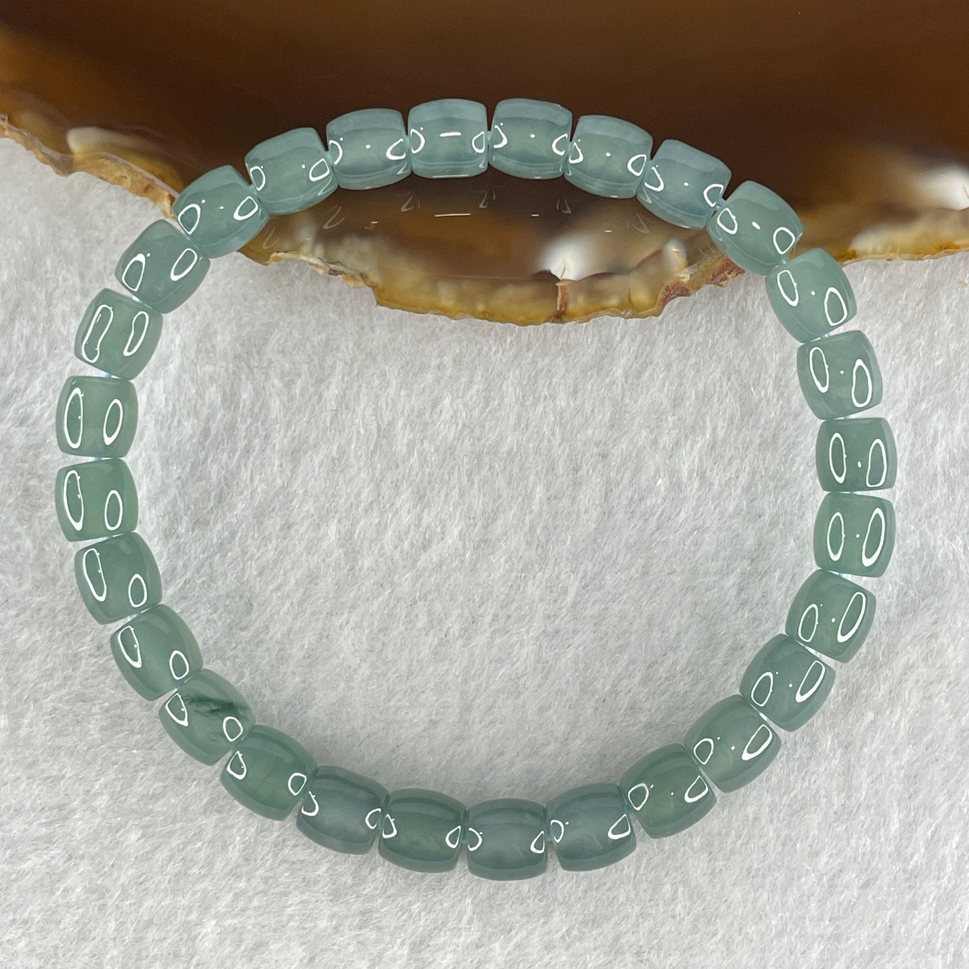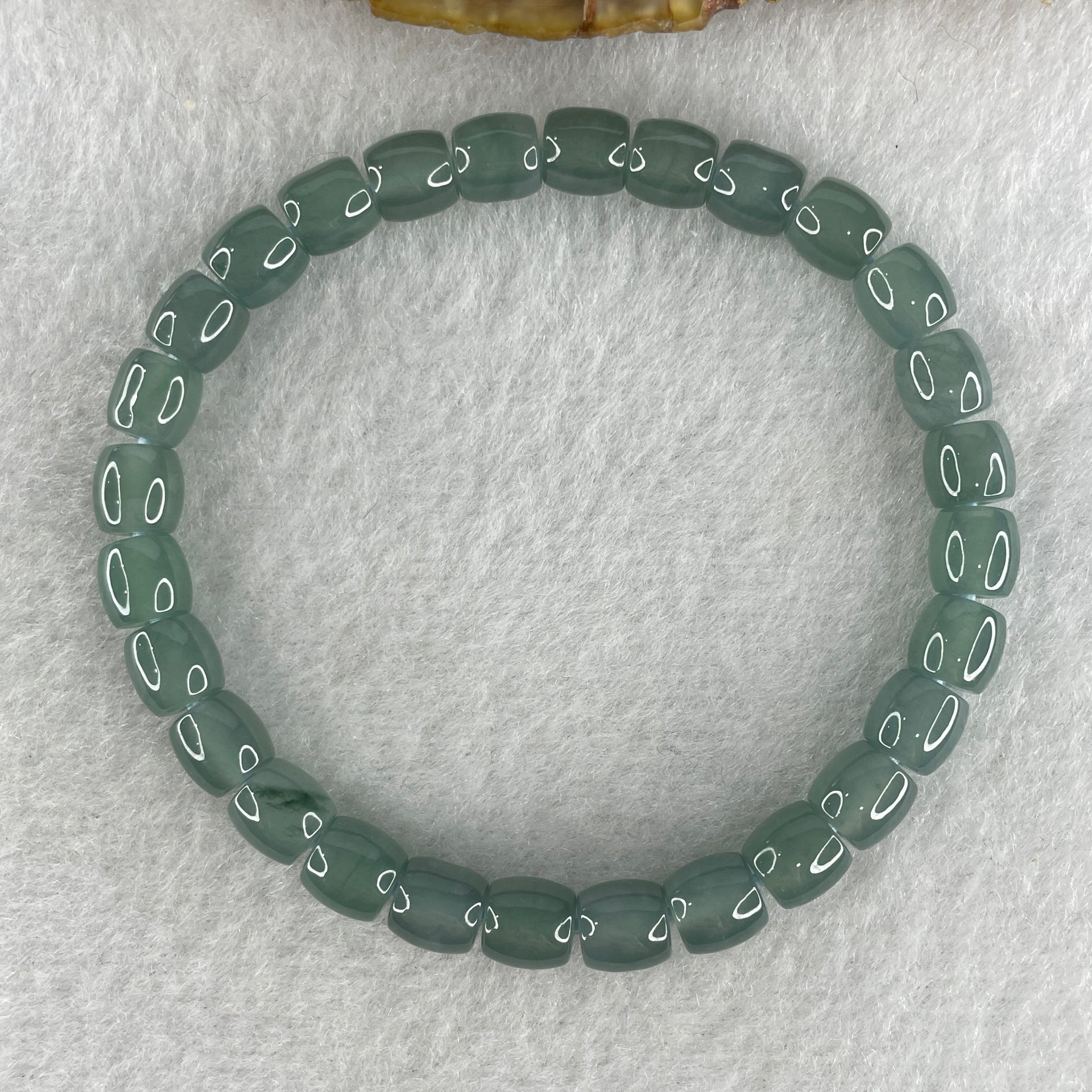 Natural Type A Semi Icy Blueish Green Jadeite Lulutong Beads Bracelet 15.82g 16cm 6.6mm 28 Beads