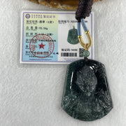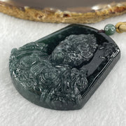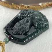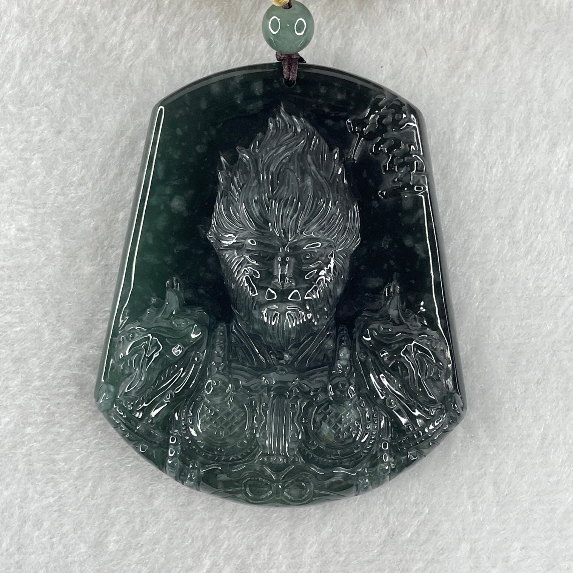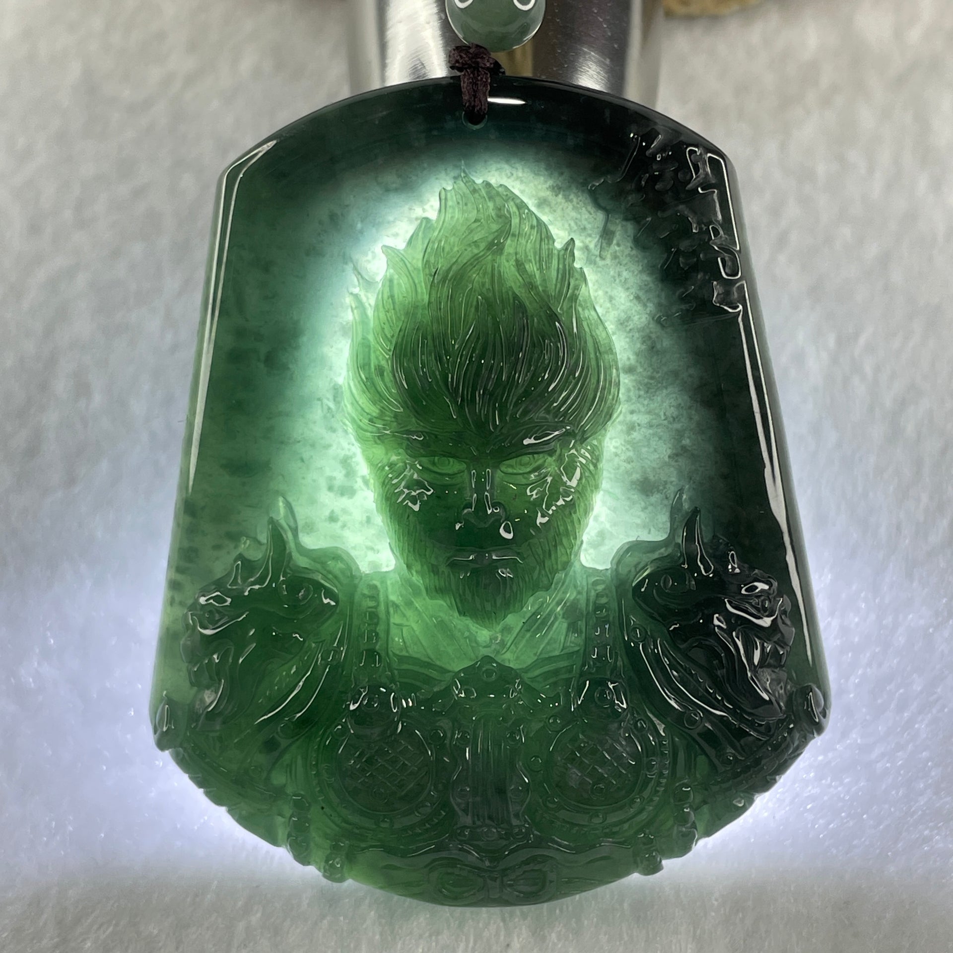 Natural Type A Semi Icy Dark Blueish Green Jadeite Sun Wu Kong Monkey God Pendant 70.54g 60.0 by 50.7 by 13.0mm