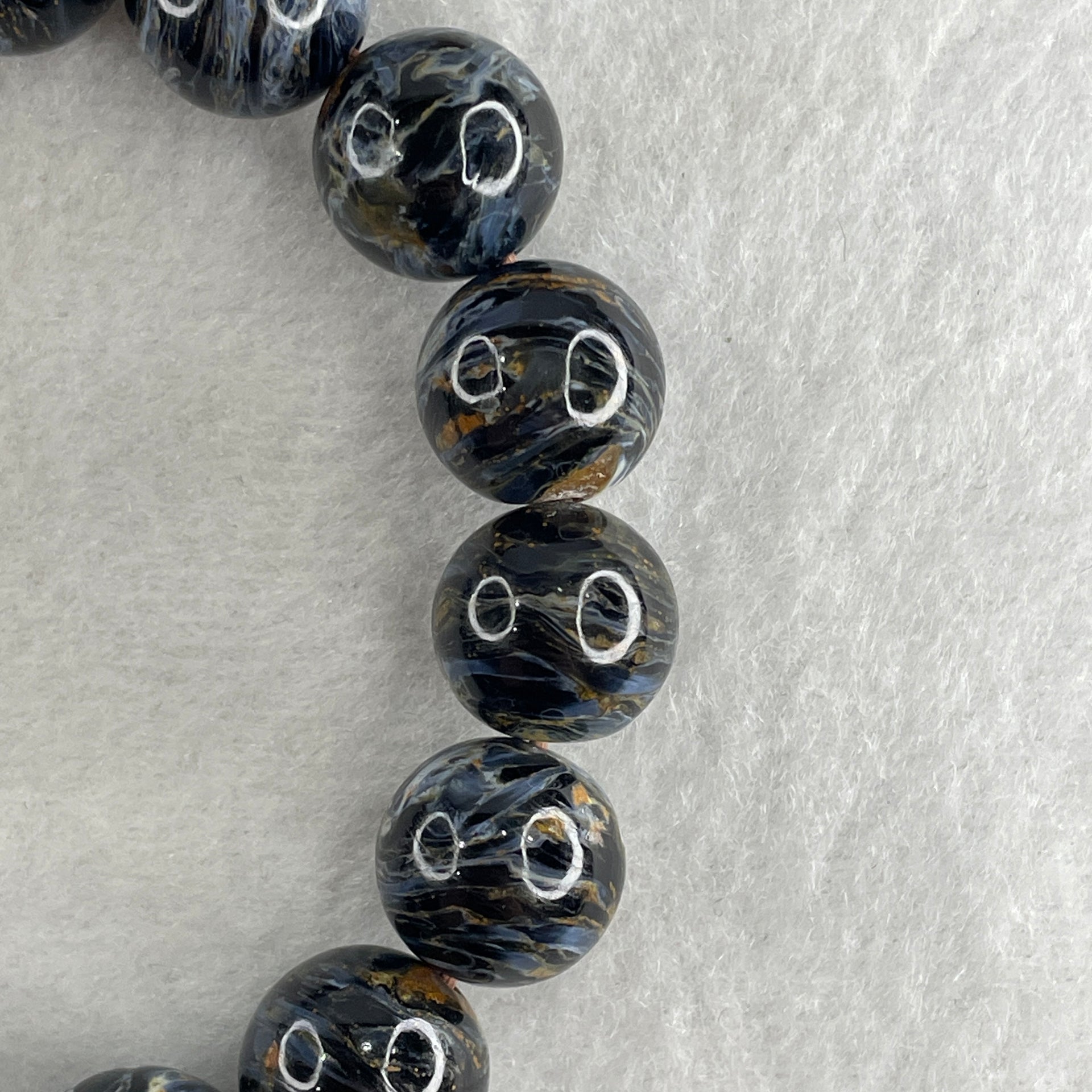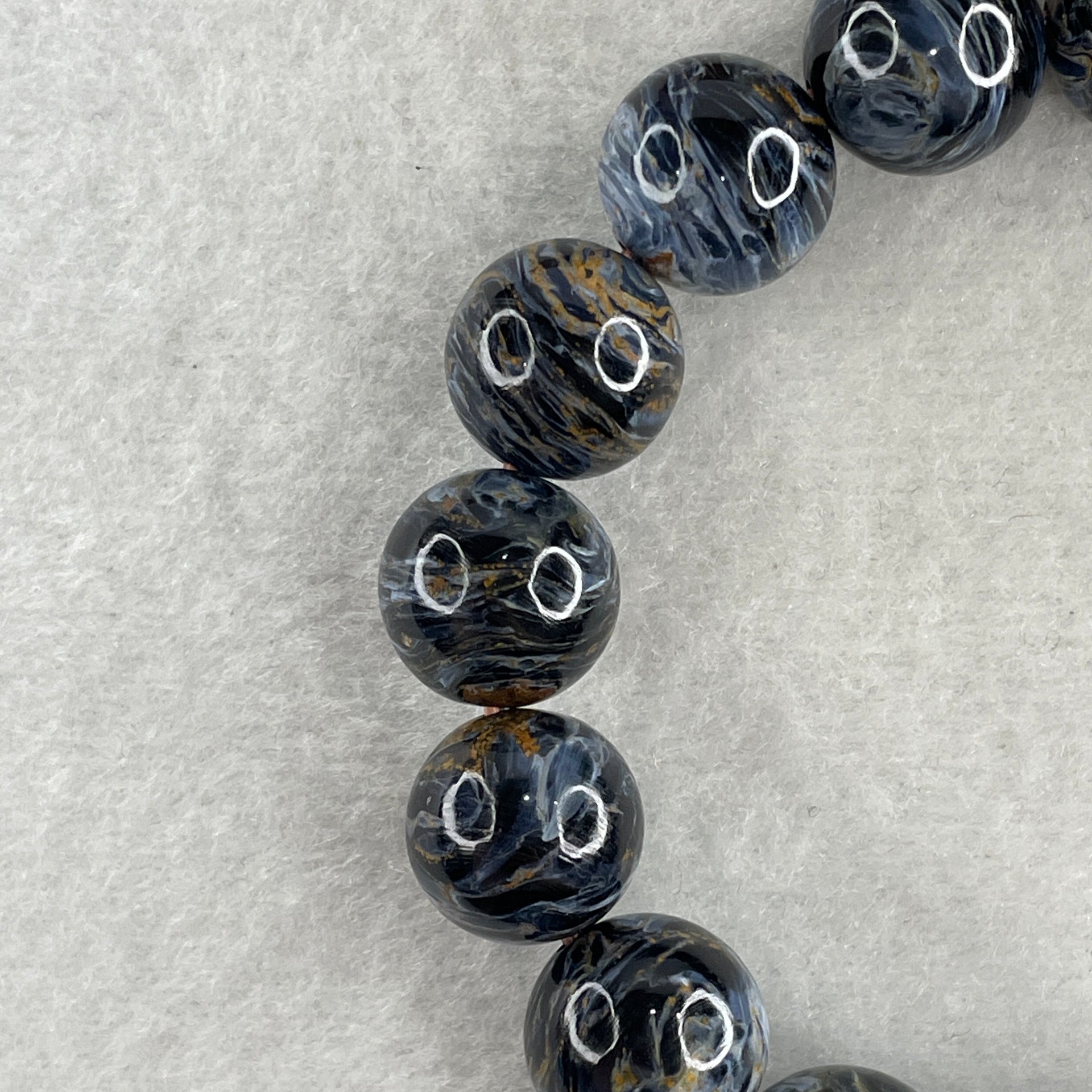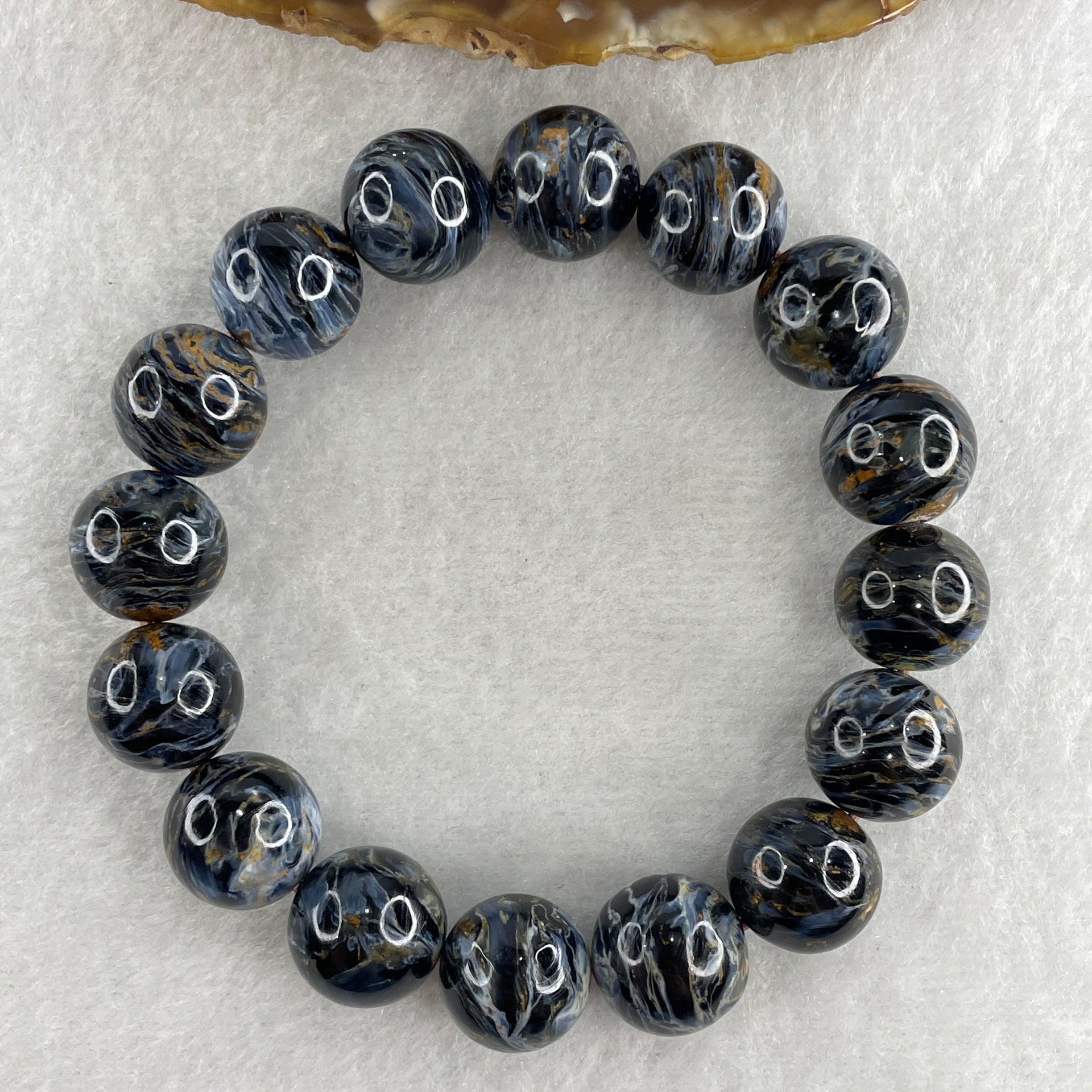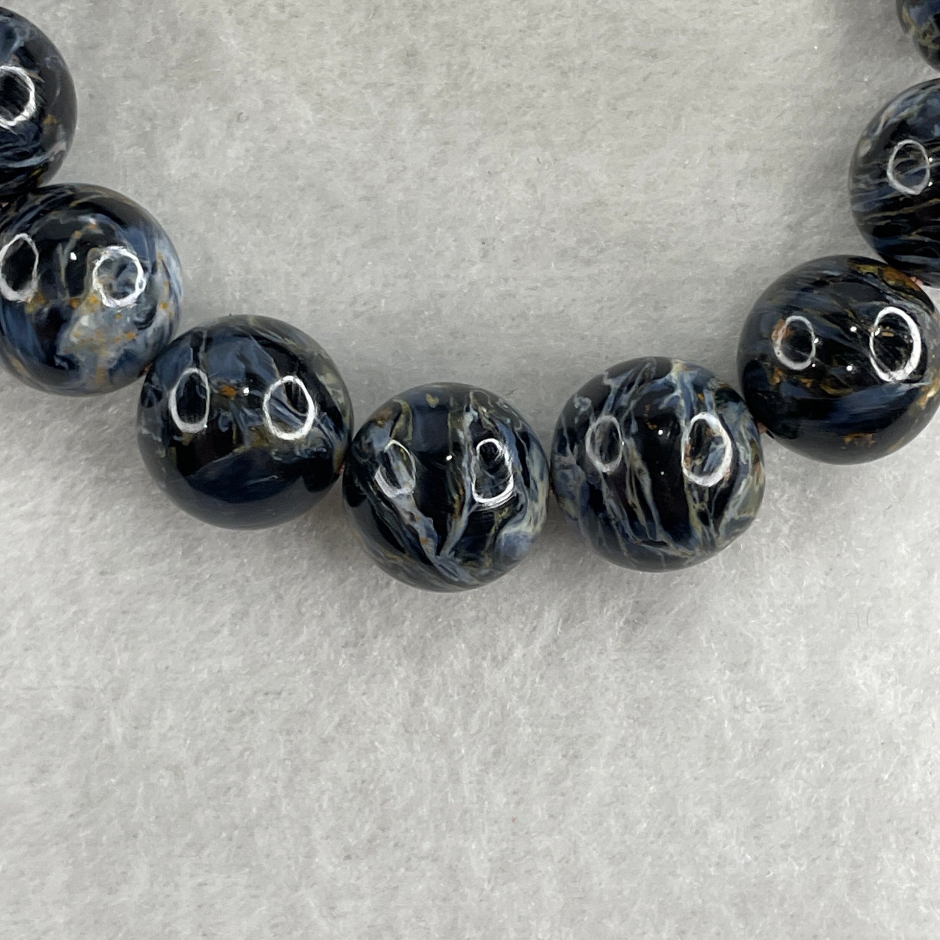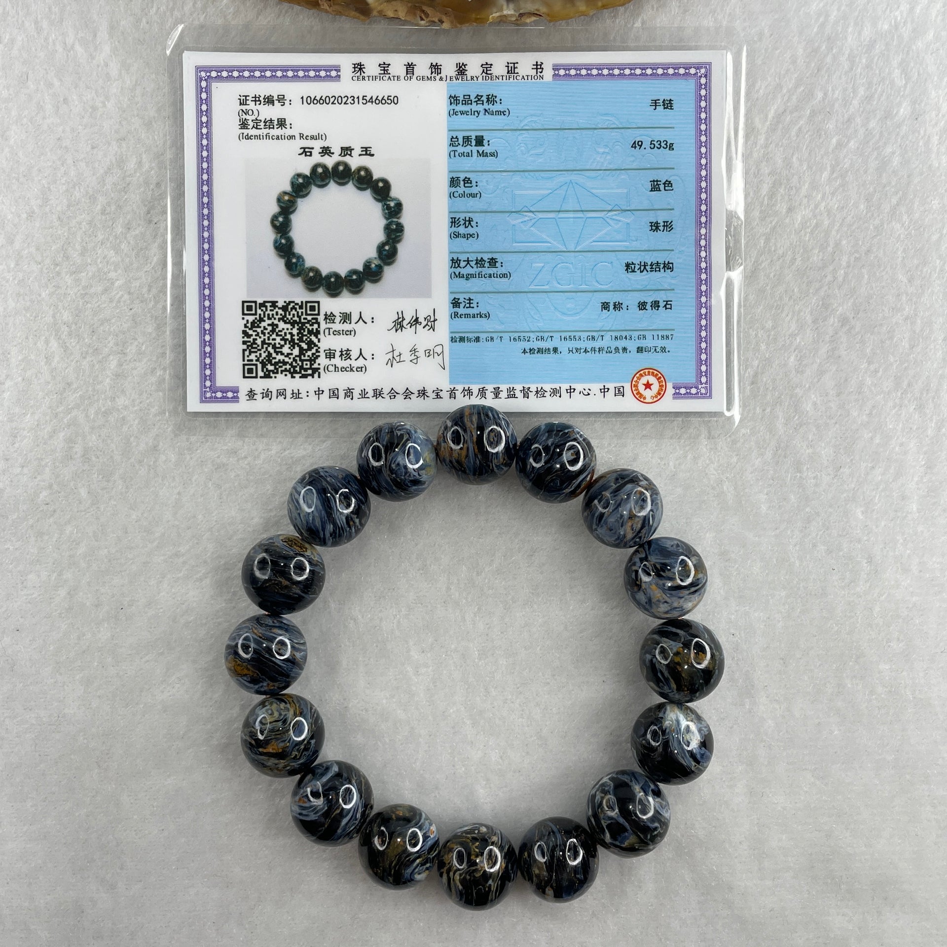 Certified Very Good Grade Natural Blue Pietersite Beads Bracelet 49.533g 16.5cm 13.4mm 16Beads