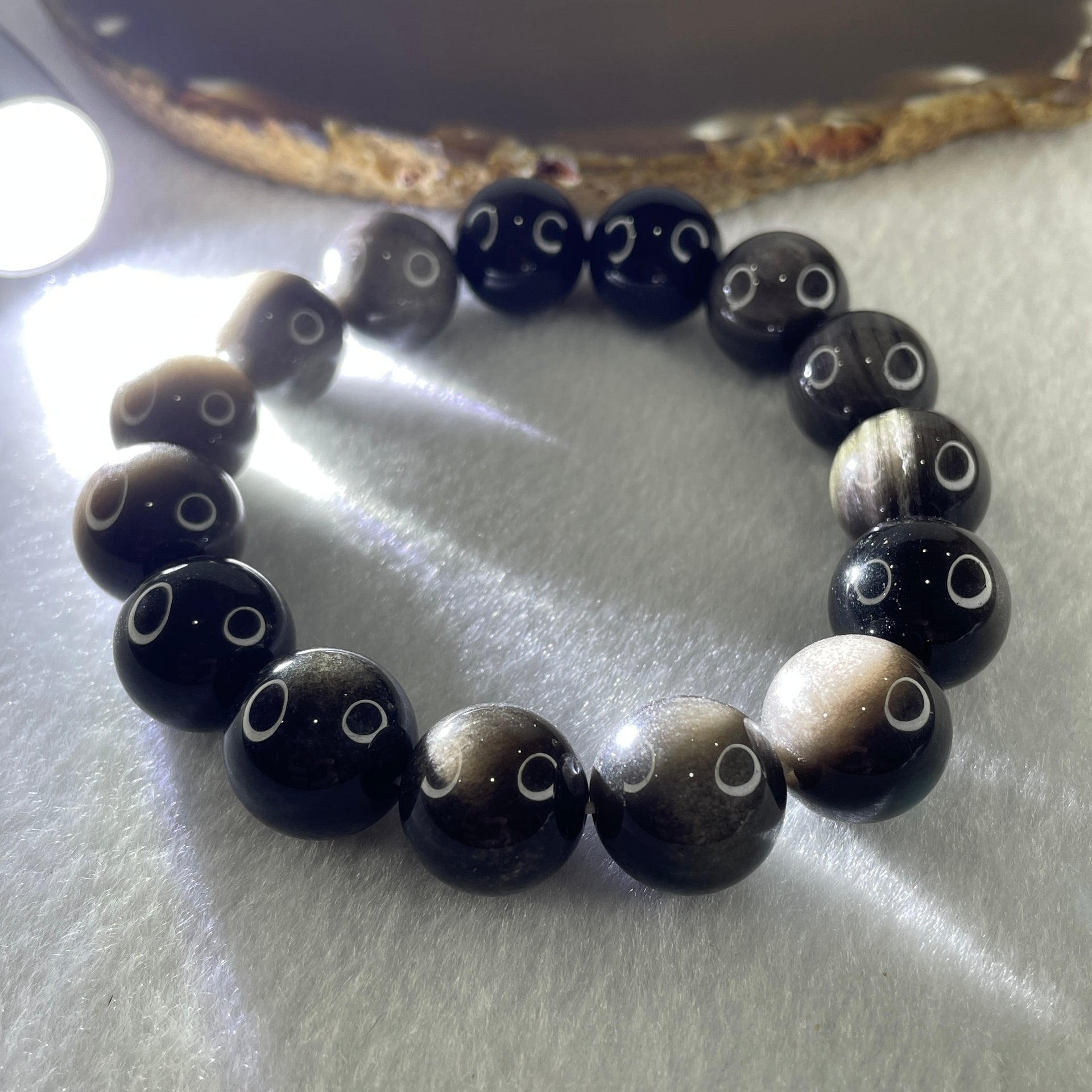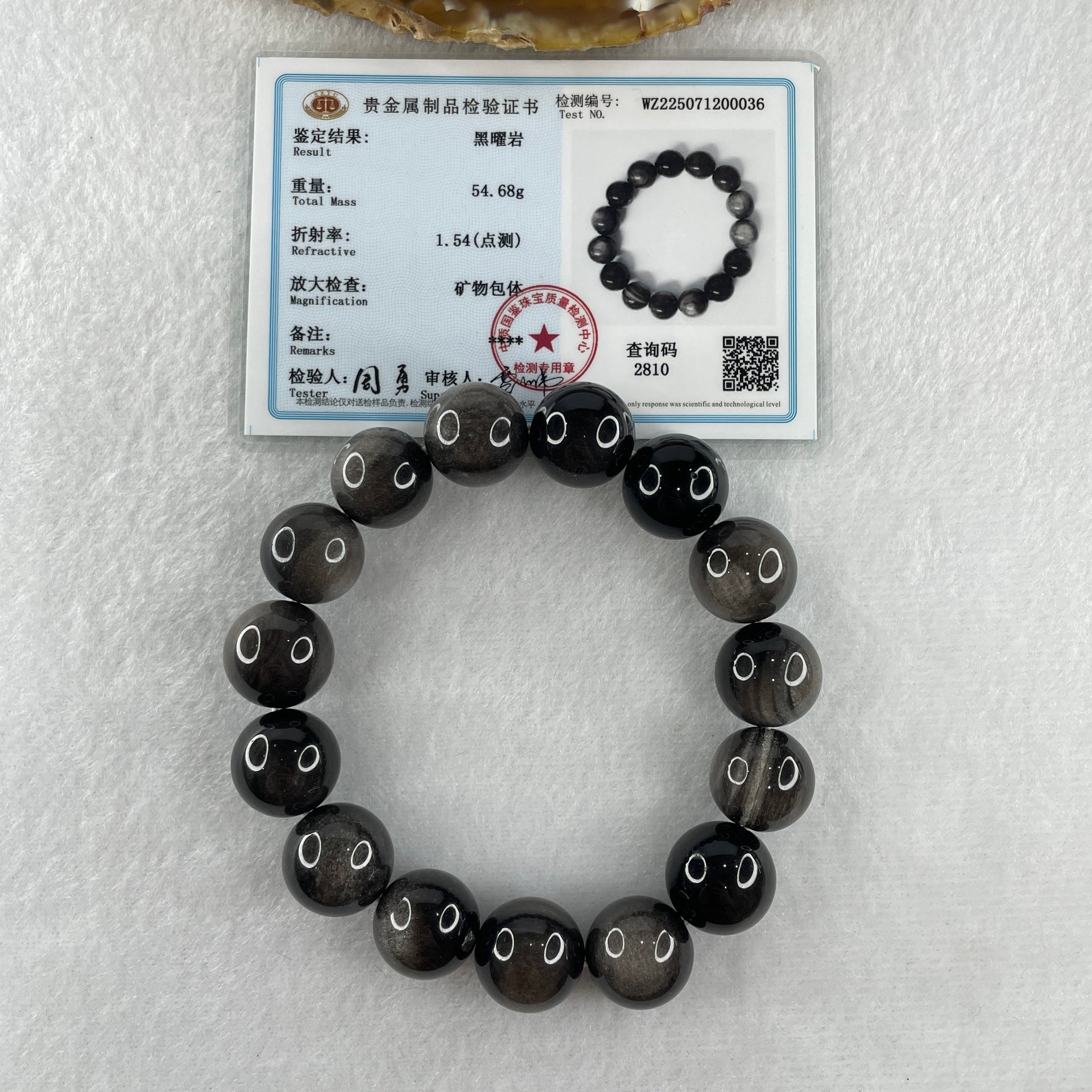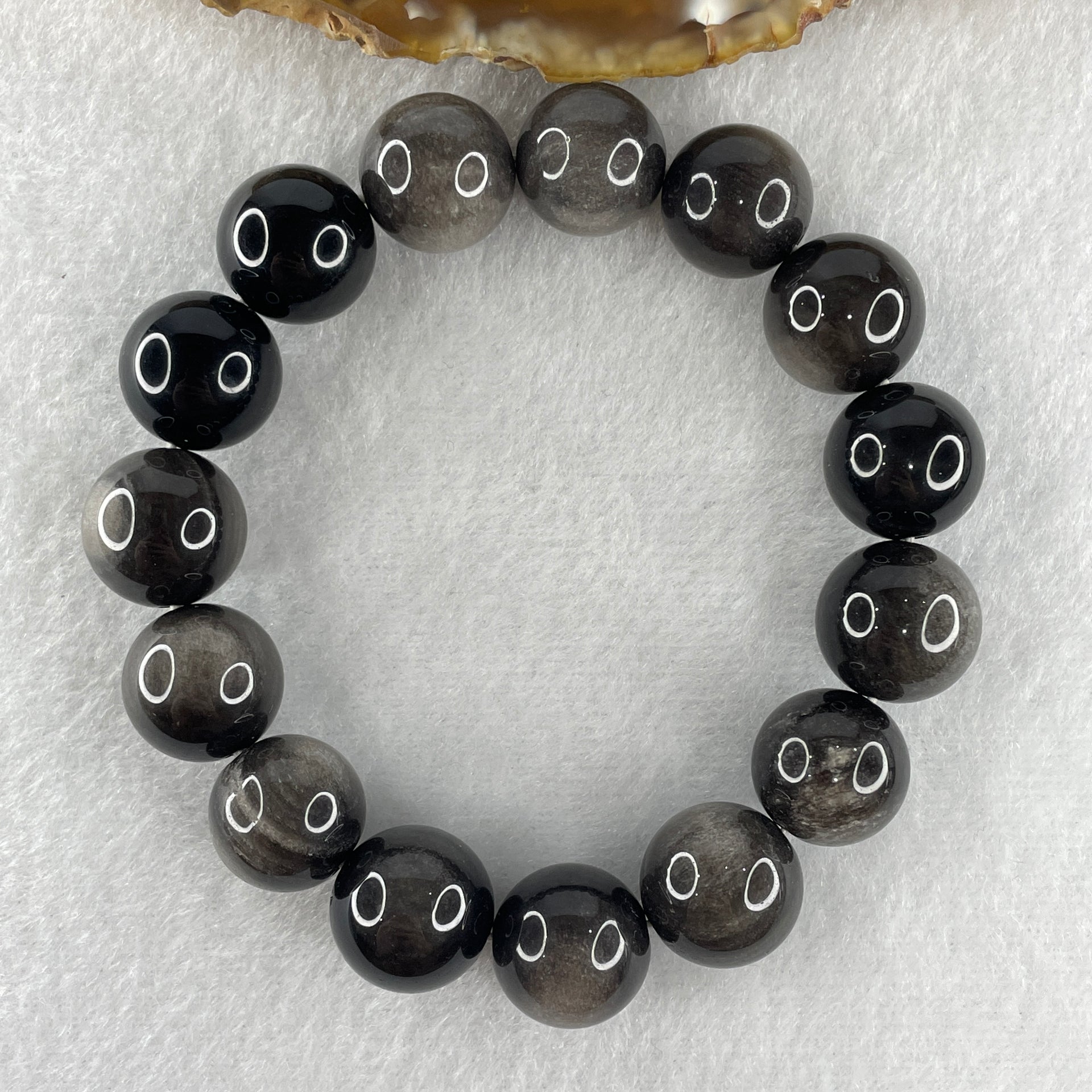 Natural Black Obsidian Beads Bracelet 54.68g 17cm 14.8mm 15 Beads