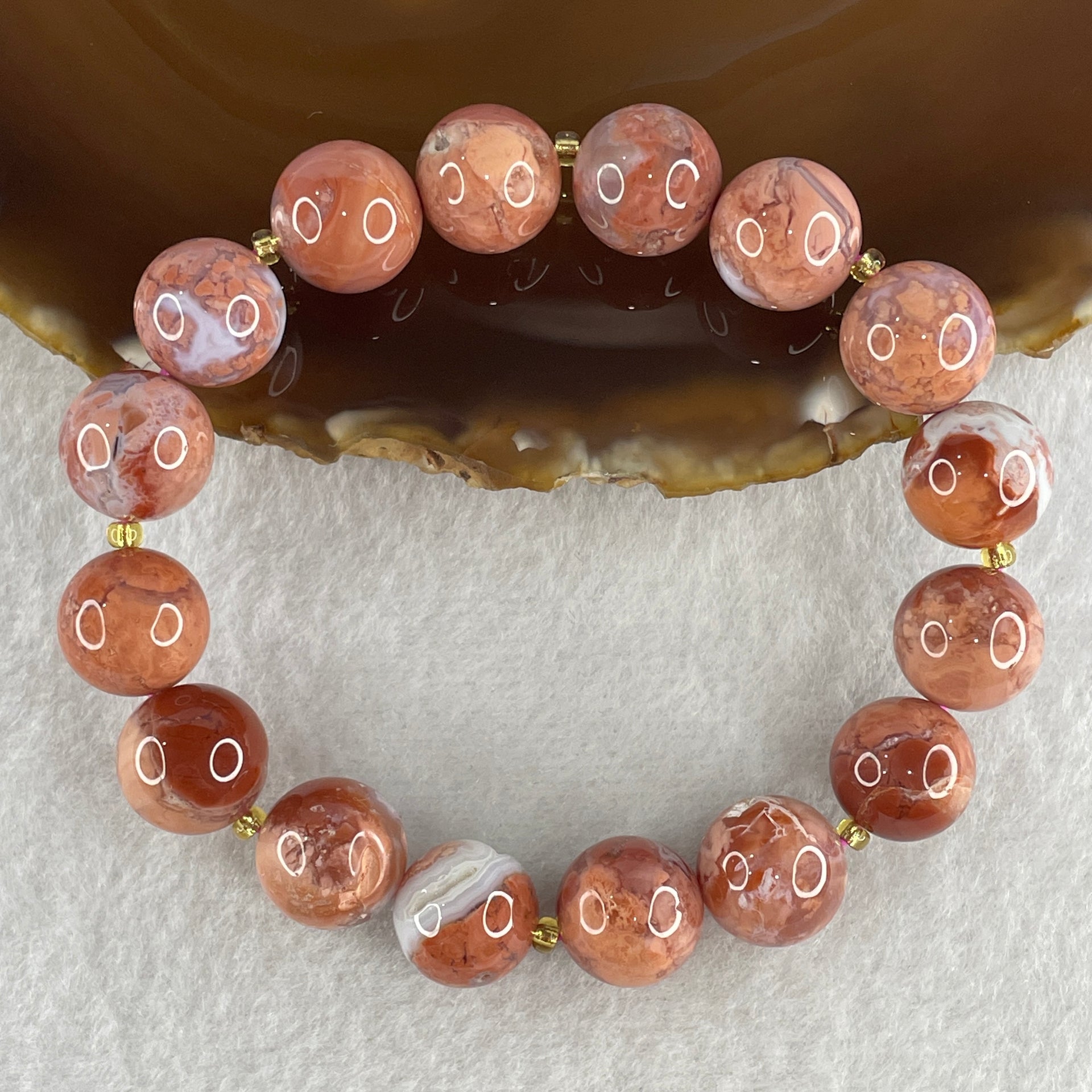 Natural Brecciated Jasper Beads Bracelet 43.27g 17cm 12.8mm 16Beads