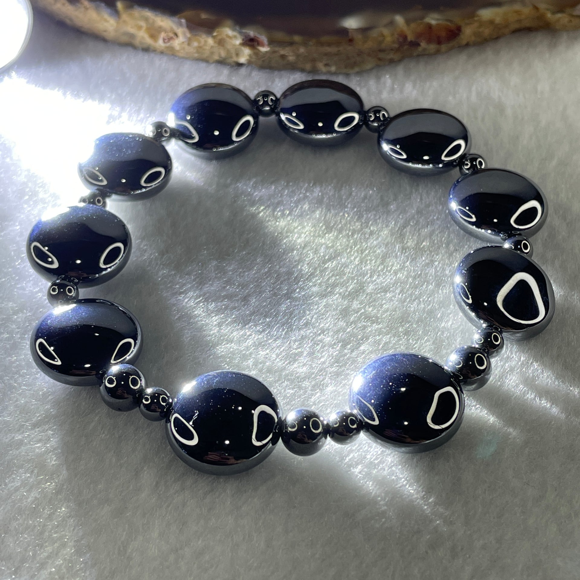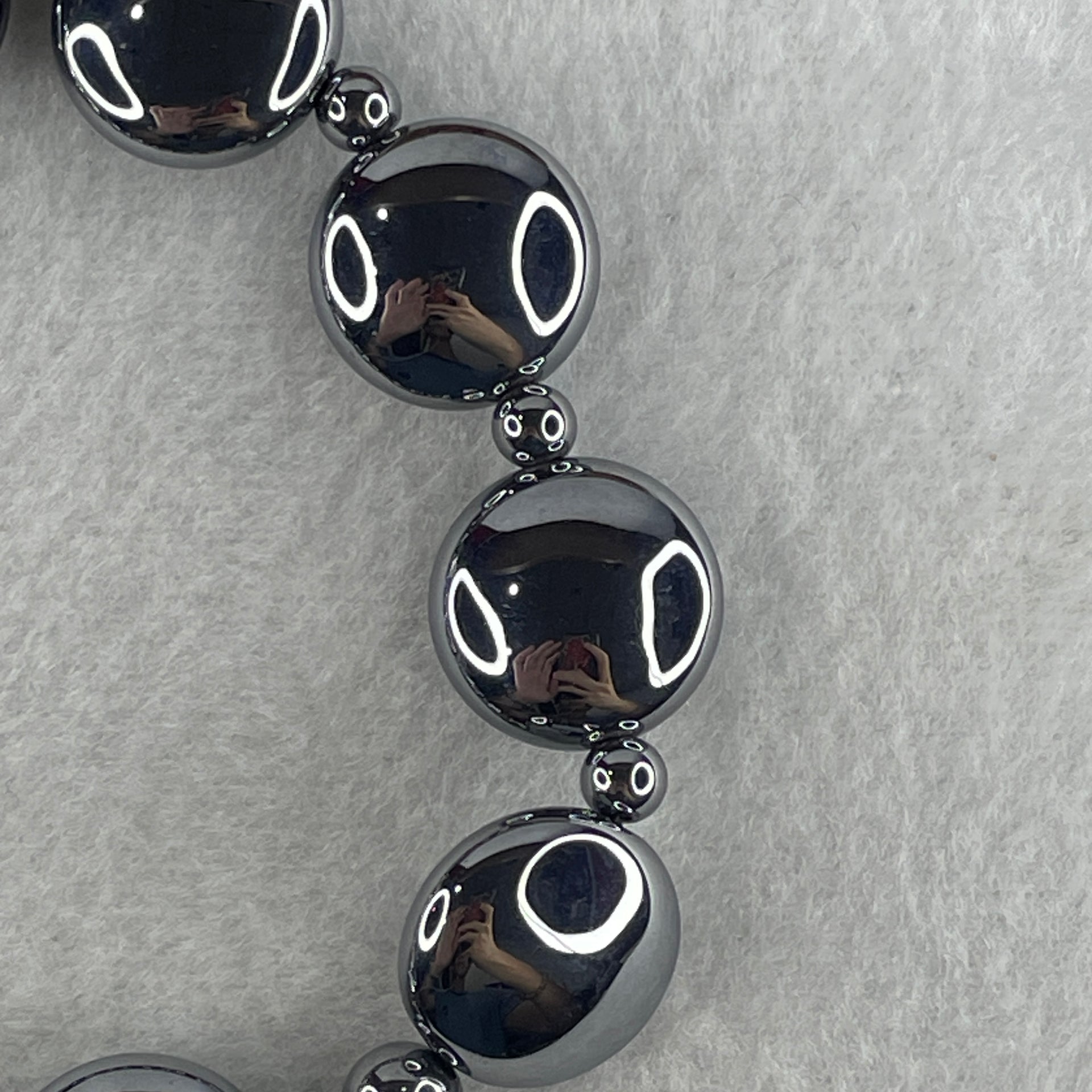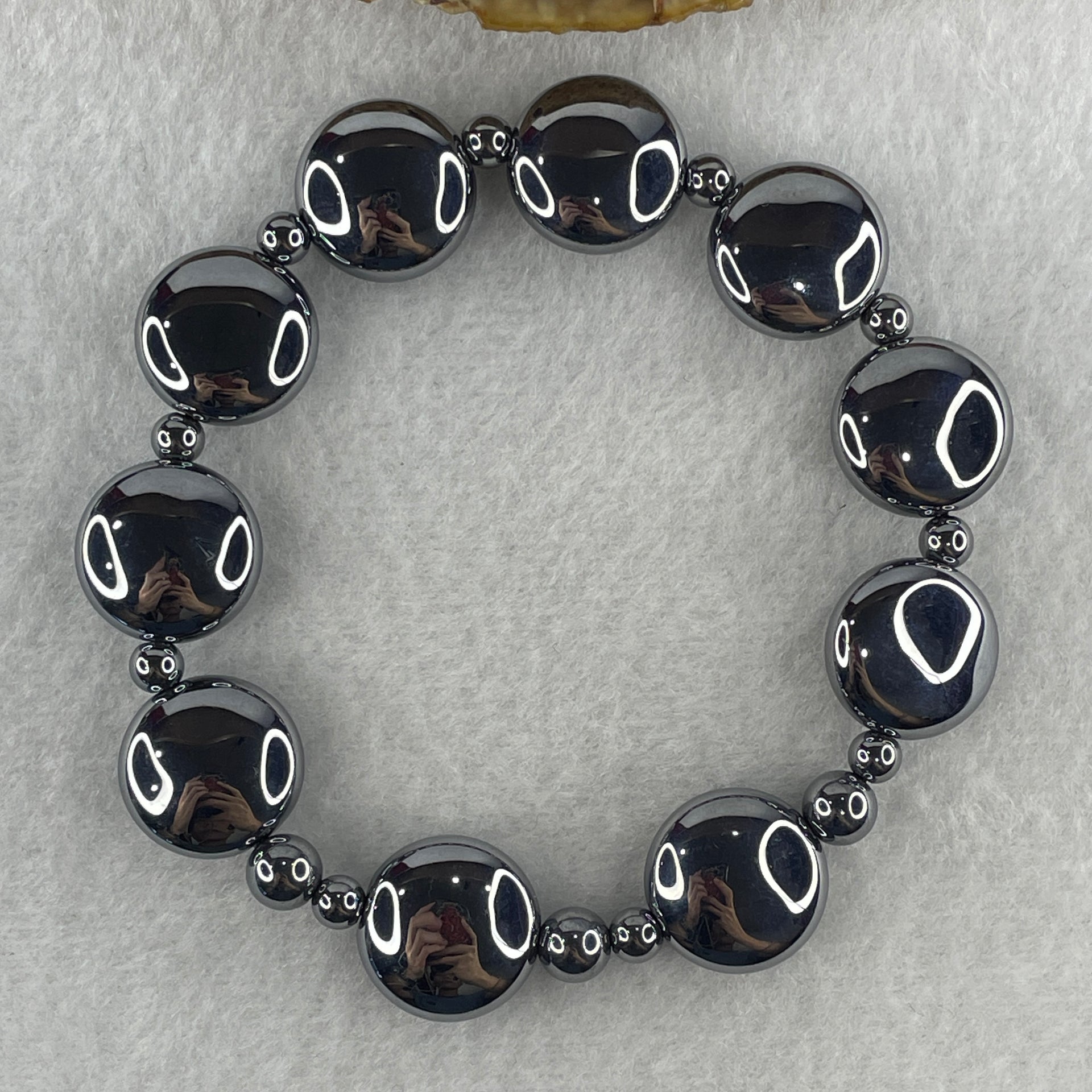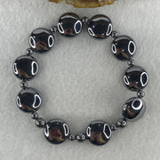 Natural Hematite Flat Beads Bracelet 27.41g 19cm 15.9mm 10Pcs