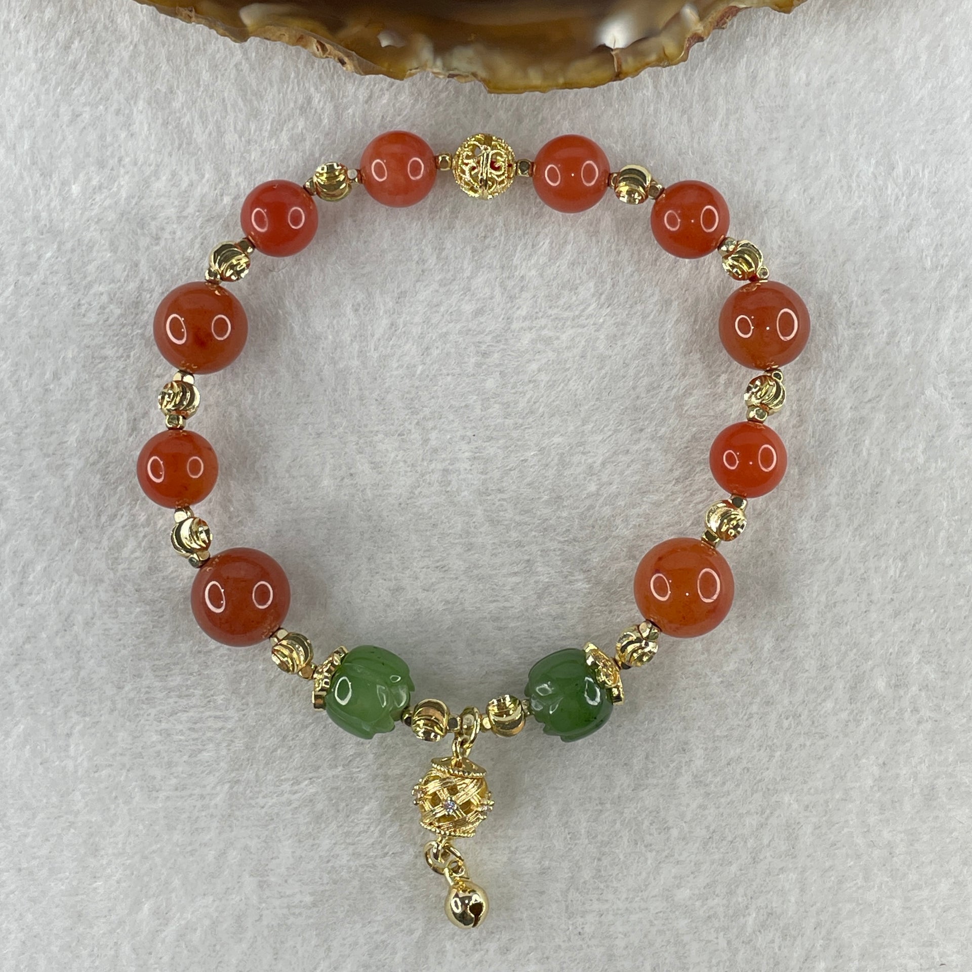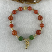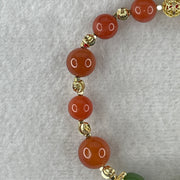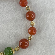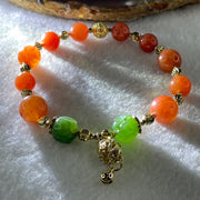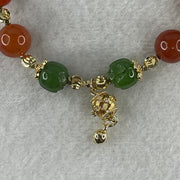 Natural Red with Green Lotus Agate Beads with Charm Bracelet 24.11g 18cm 9.1mm-6Beads 11.4mm-4Beads 10.2mm-2Beads