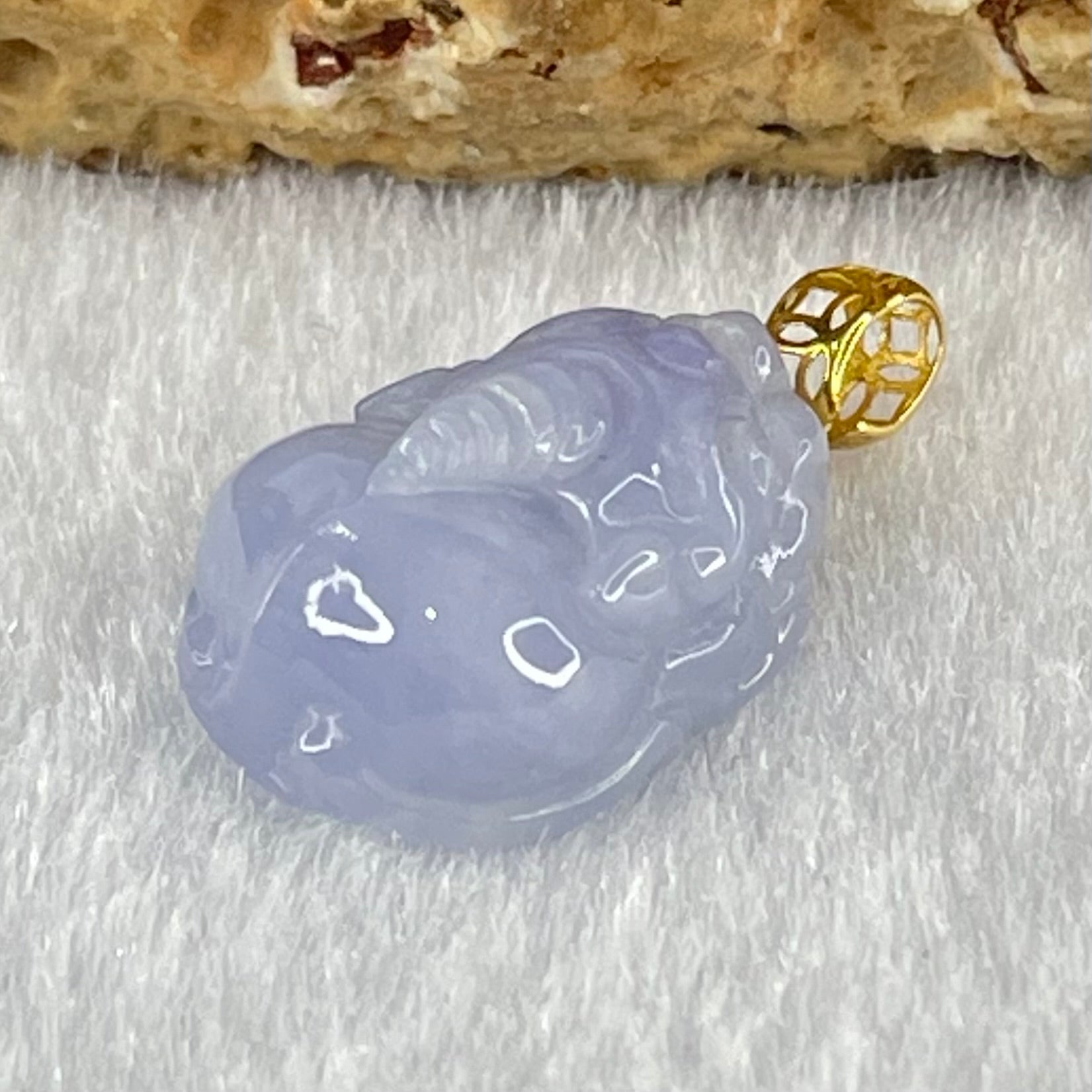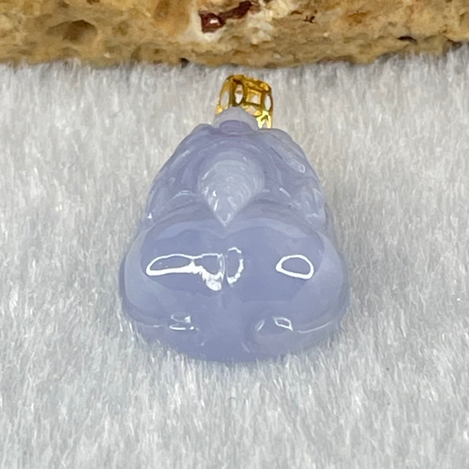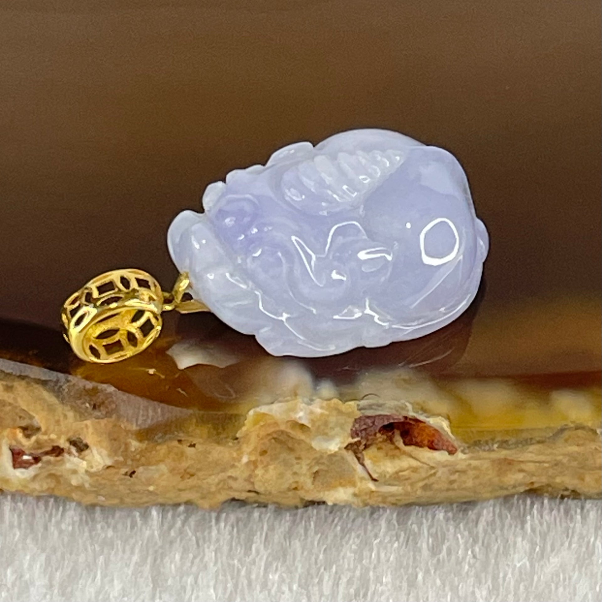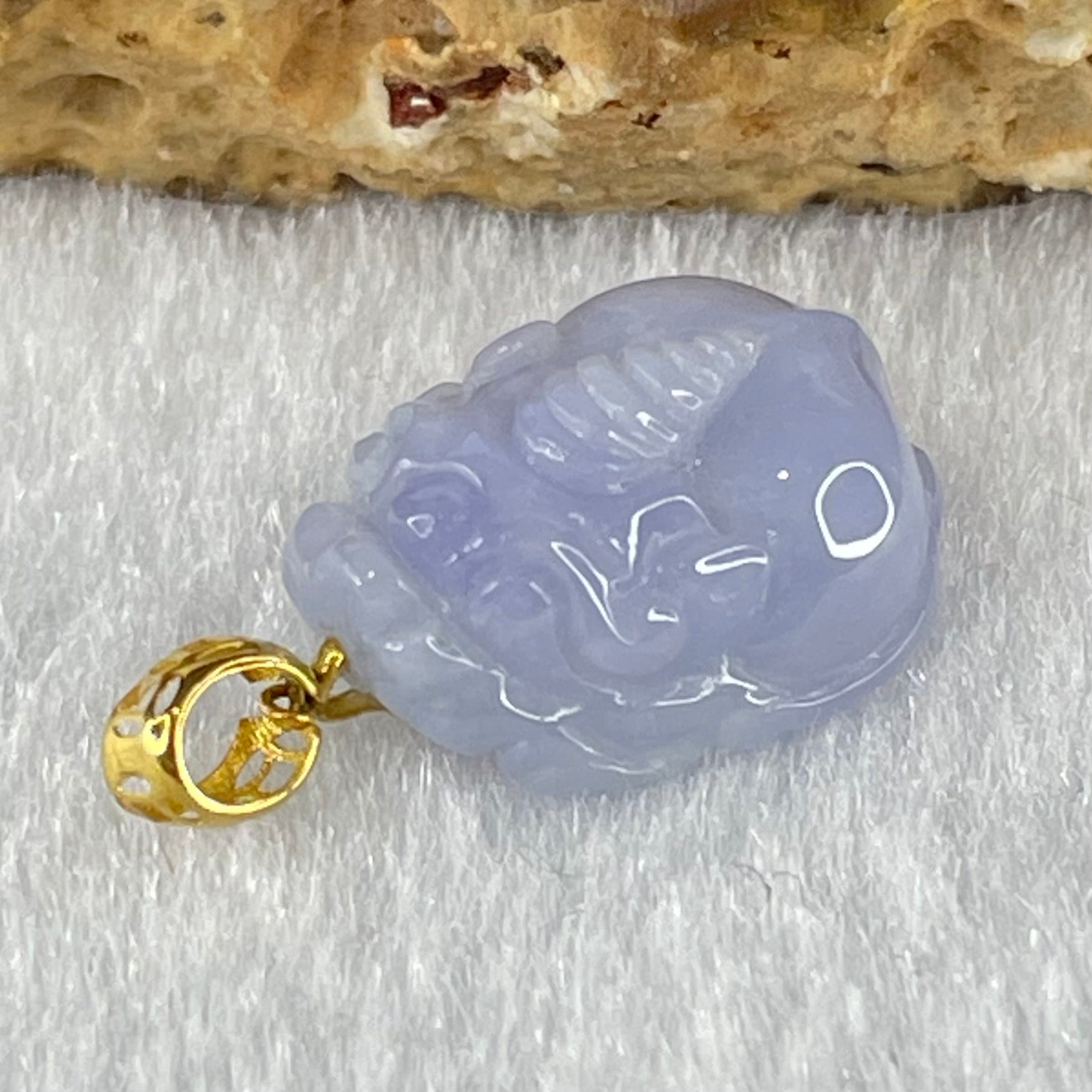 Type A Deep Lavender Jadeite Pixiu Charm with 18K AU750 Yellow Gold Clasps 2.14g 15.3 by 11.8 by 7.0mm
