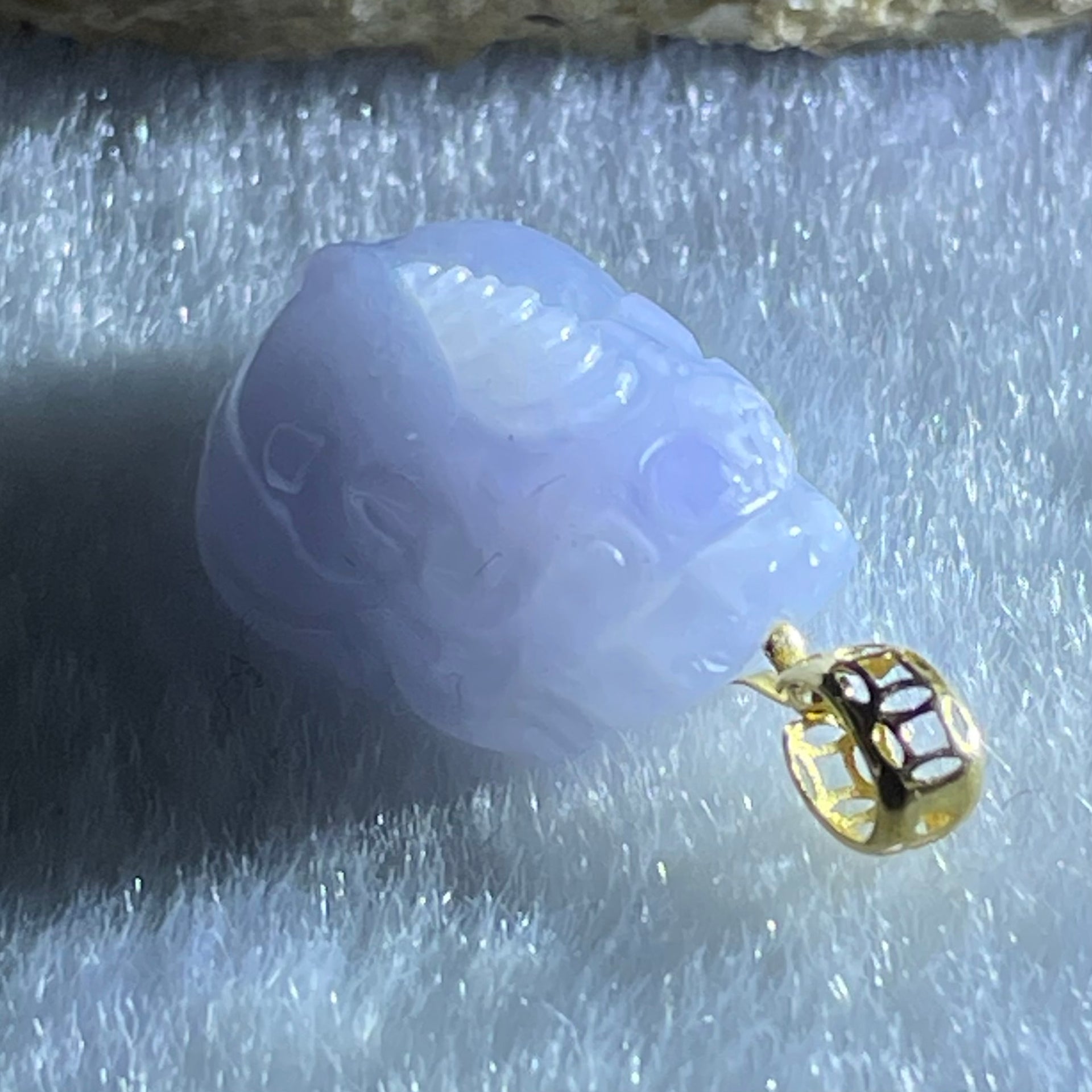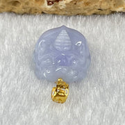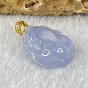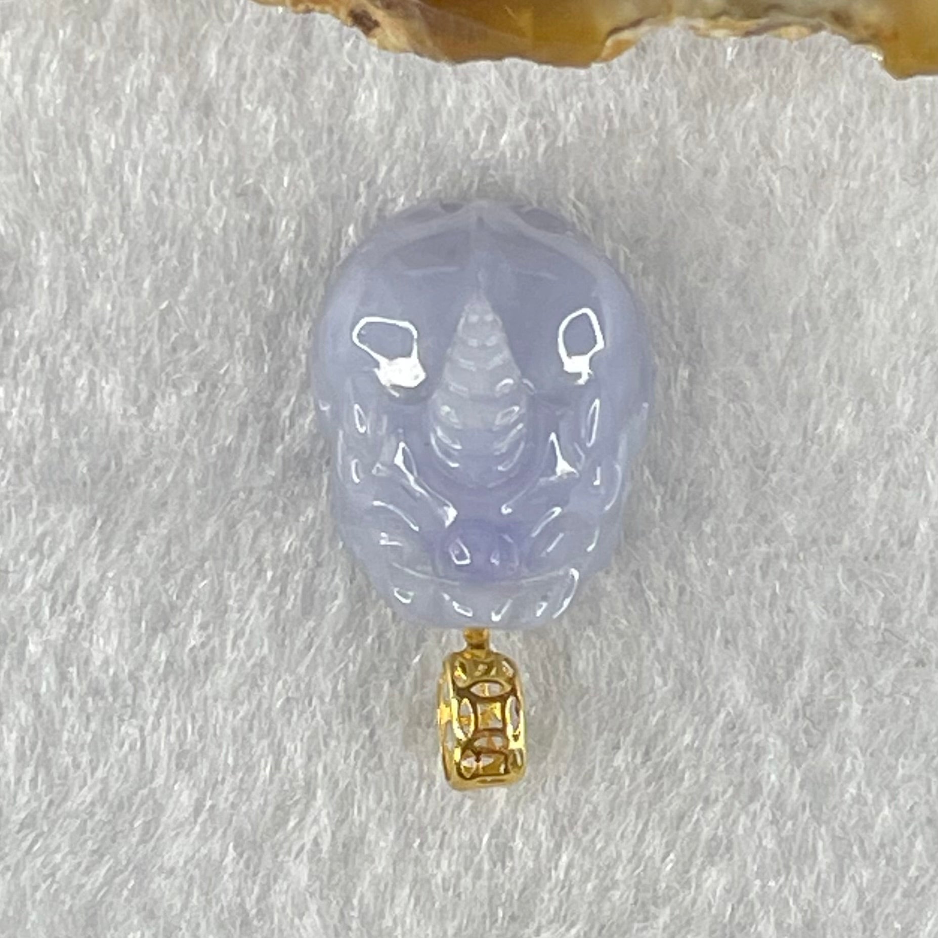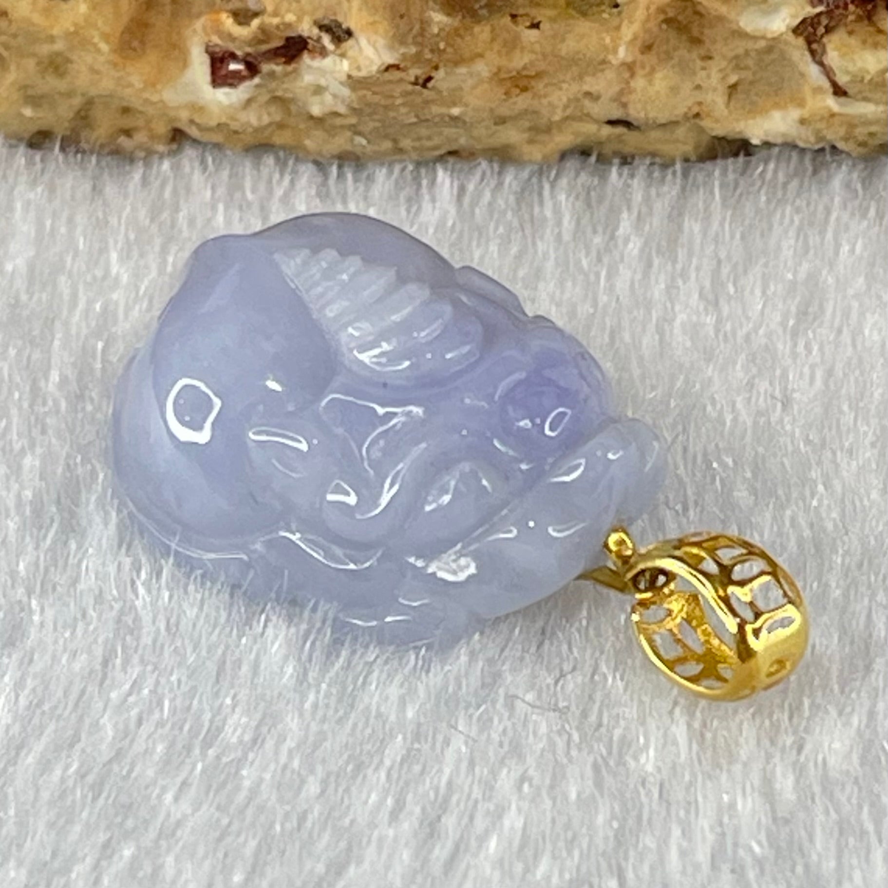 Type A Deep Lavender Jadeite Pixiu Charm with 18K AU750 Yellow Gold Clasps 2.14g 15.3 by 11.8 by 7.0mm
