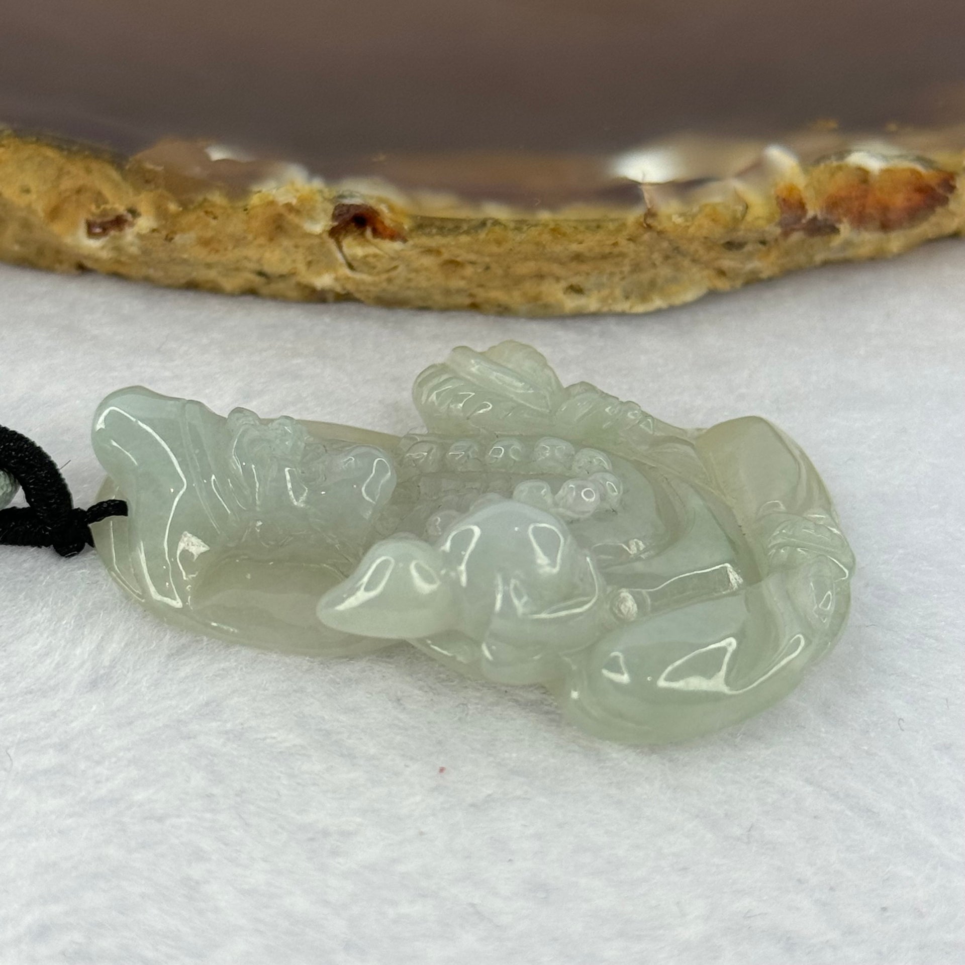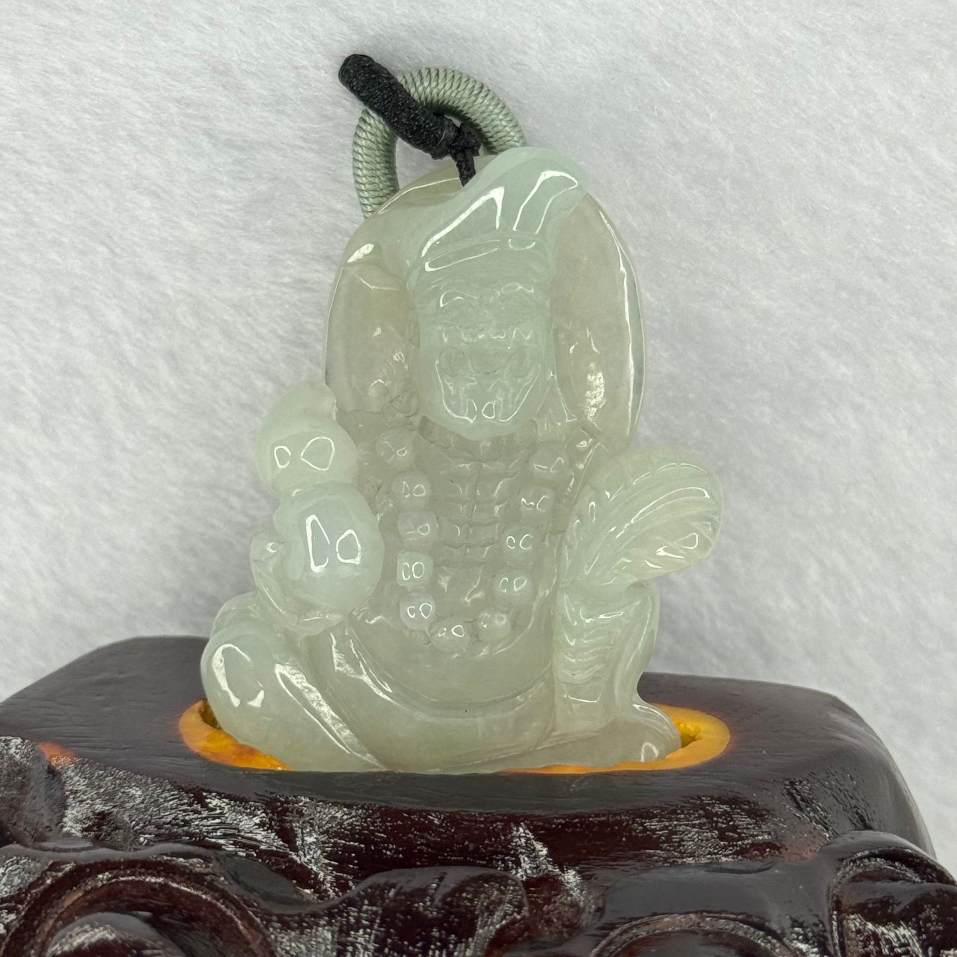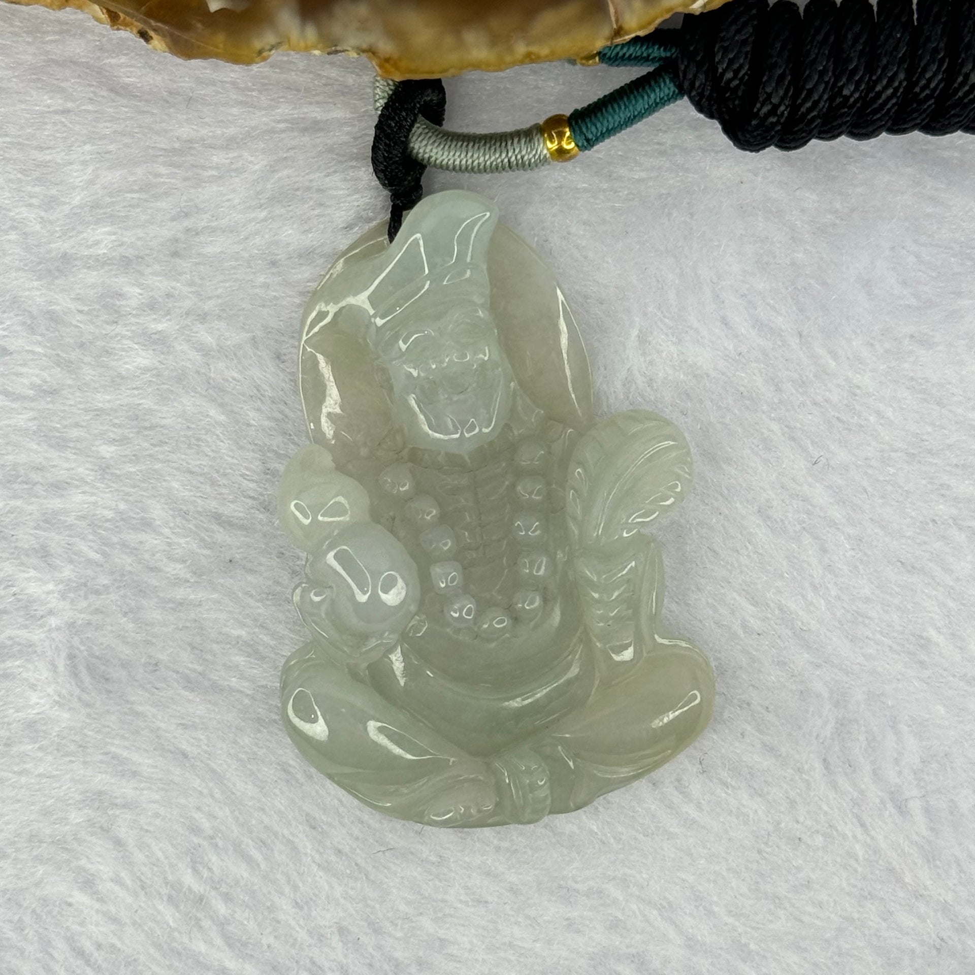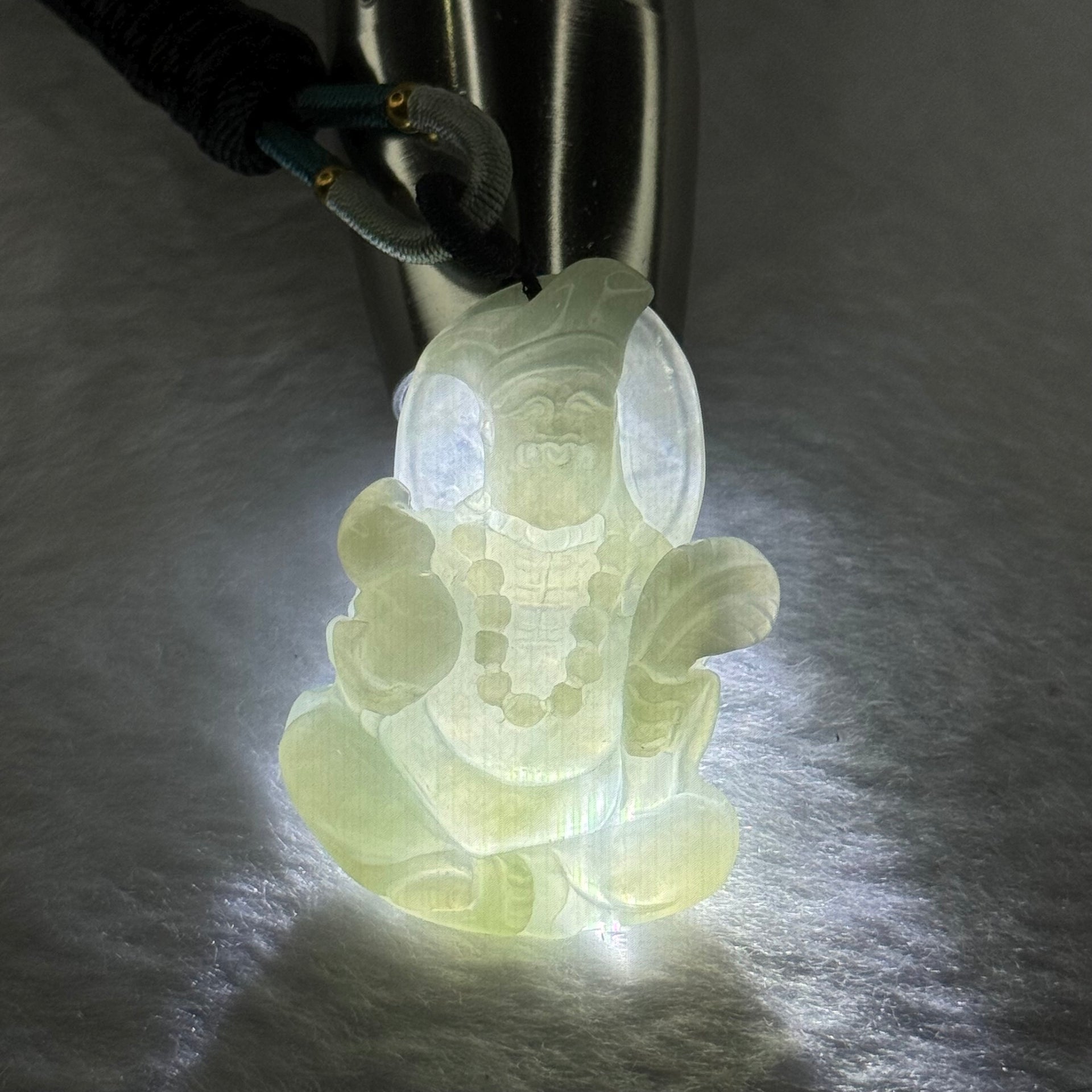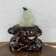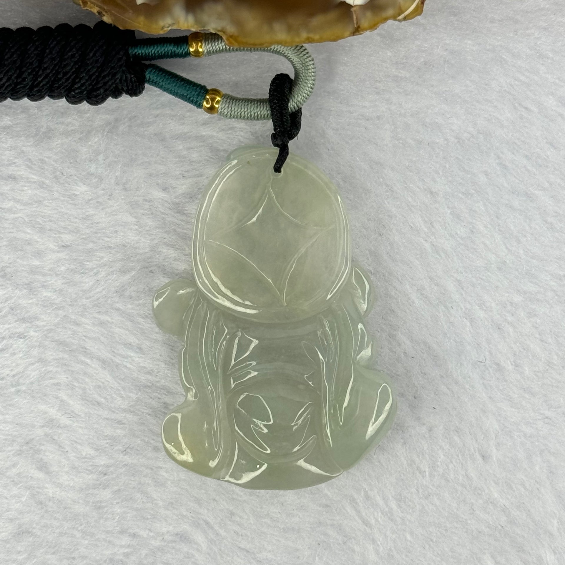 Type A Light Green Lavender Jadeite Ji Gong Pendent/ Mini Display with Wooden Stand 107.83g 83.0 by 75.4 by 46.6mm
