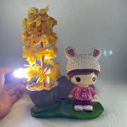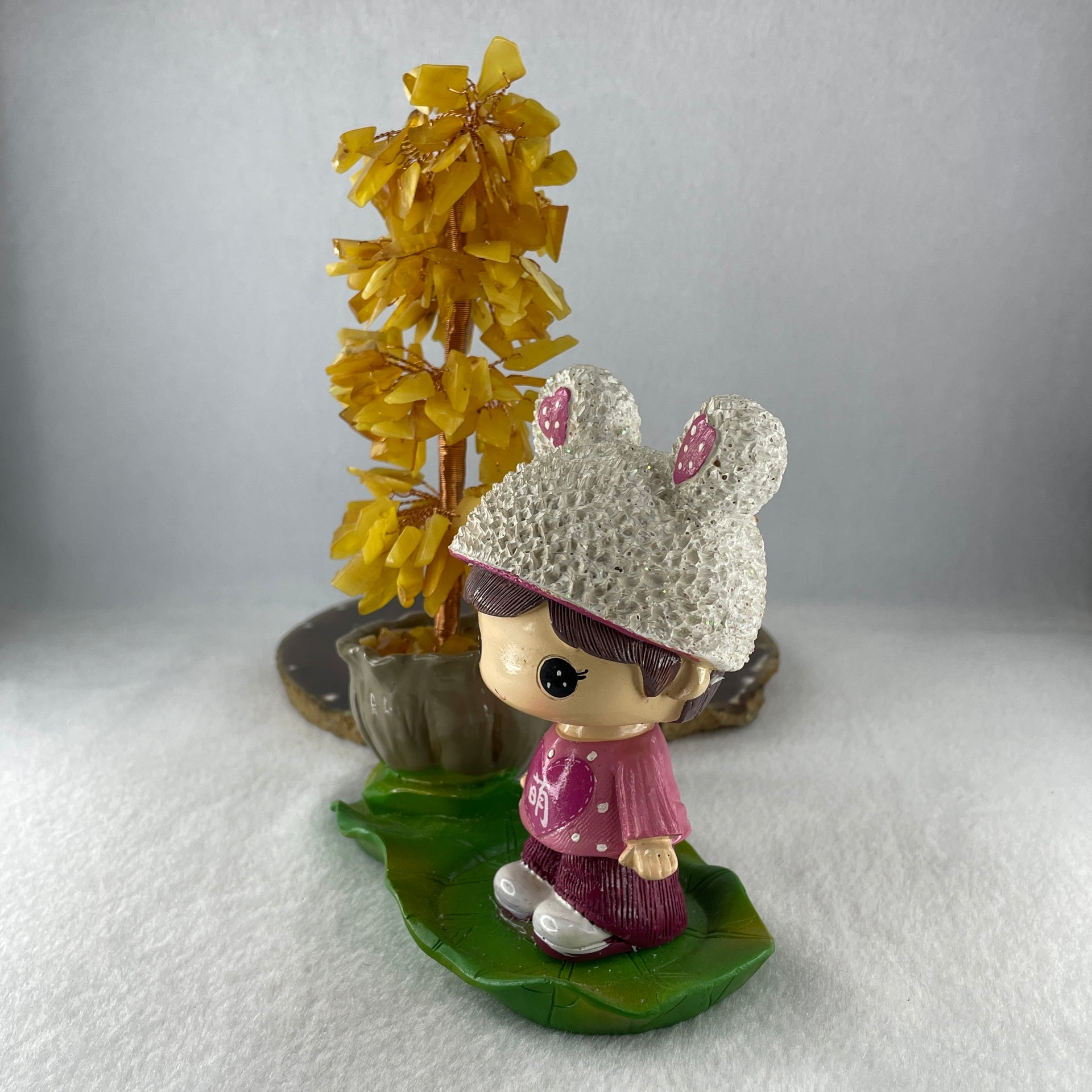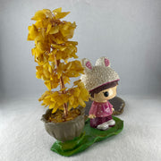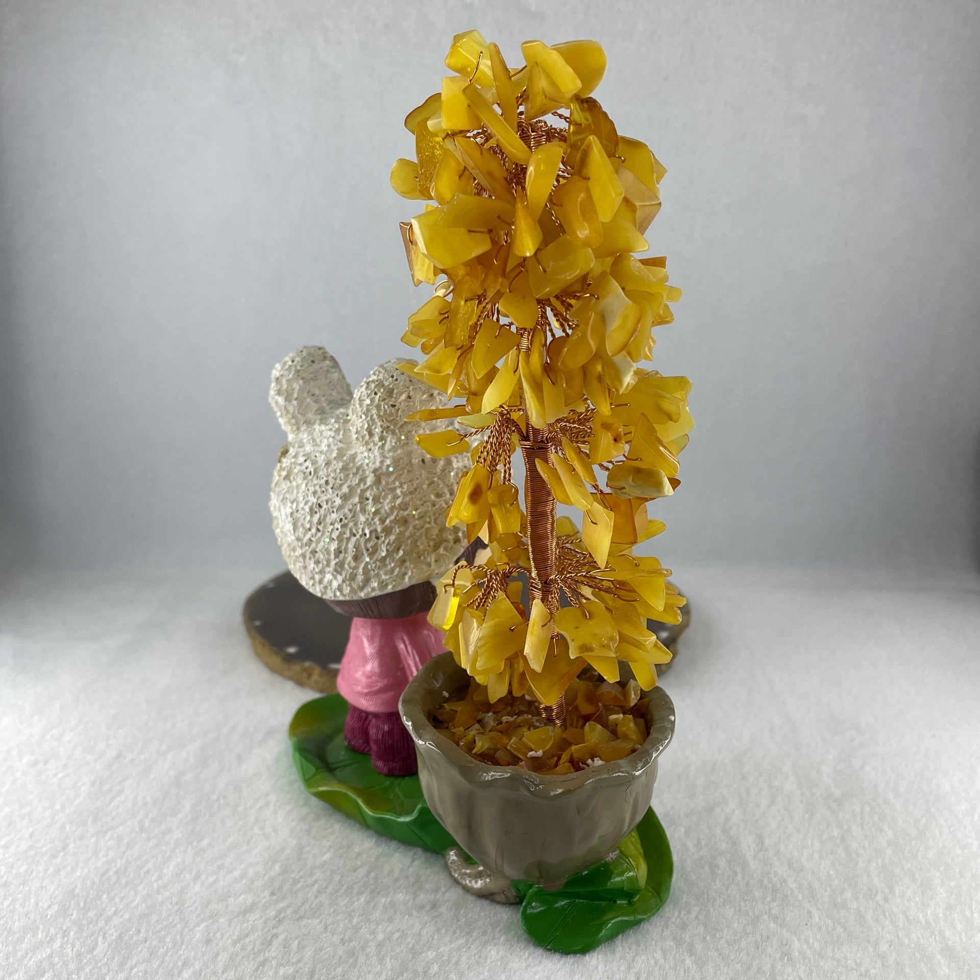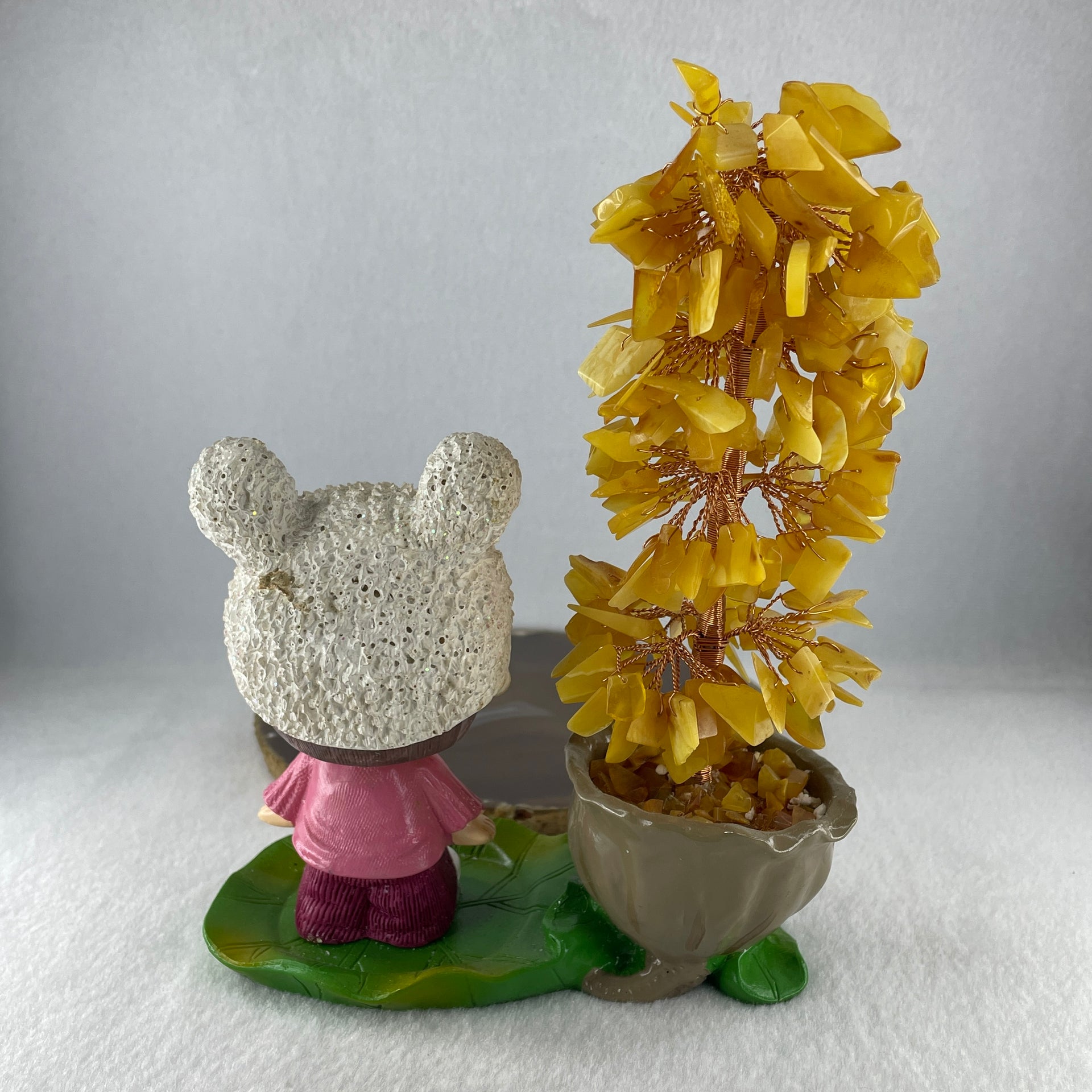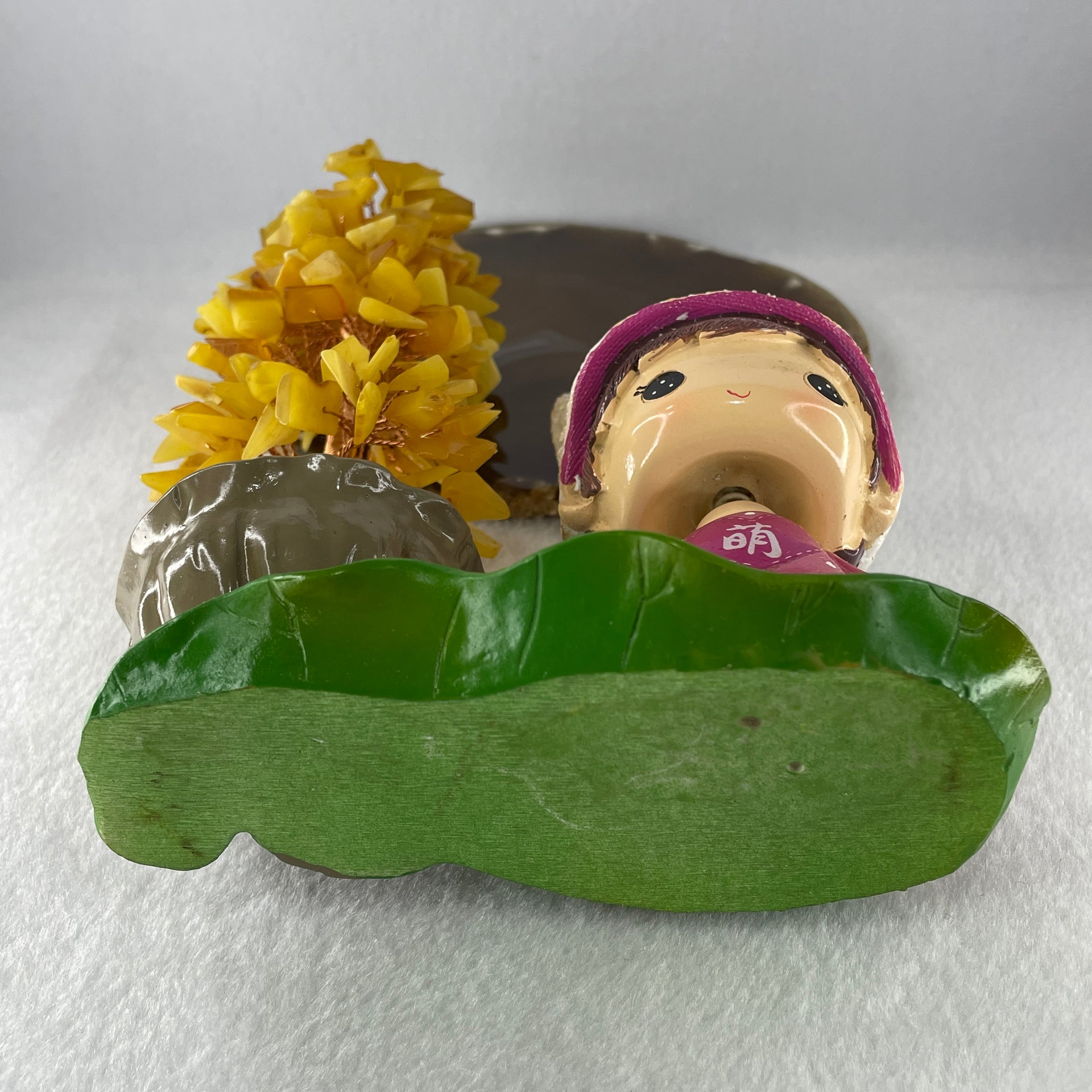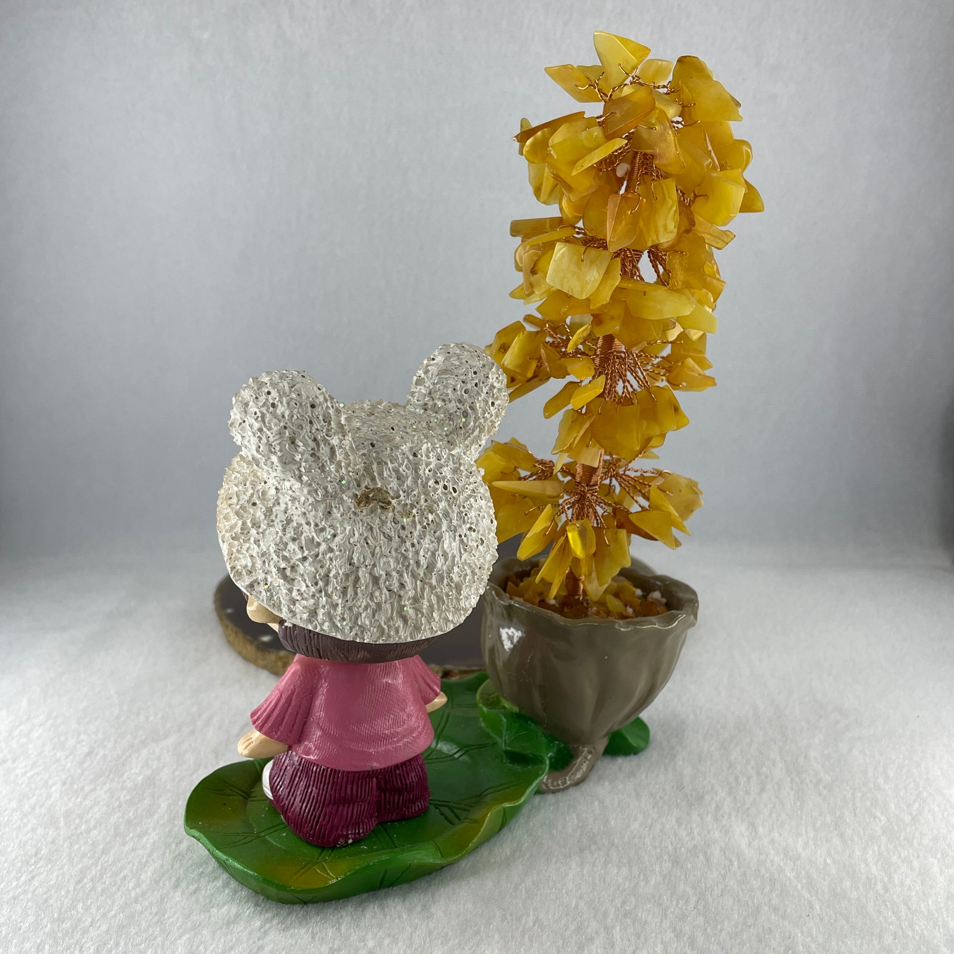 Citrine Money Tree with Movable Girl on Lotus Leaf Display 423.6g 132.0 by 71.0 by 190.0mm