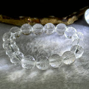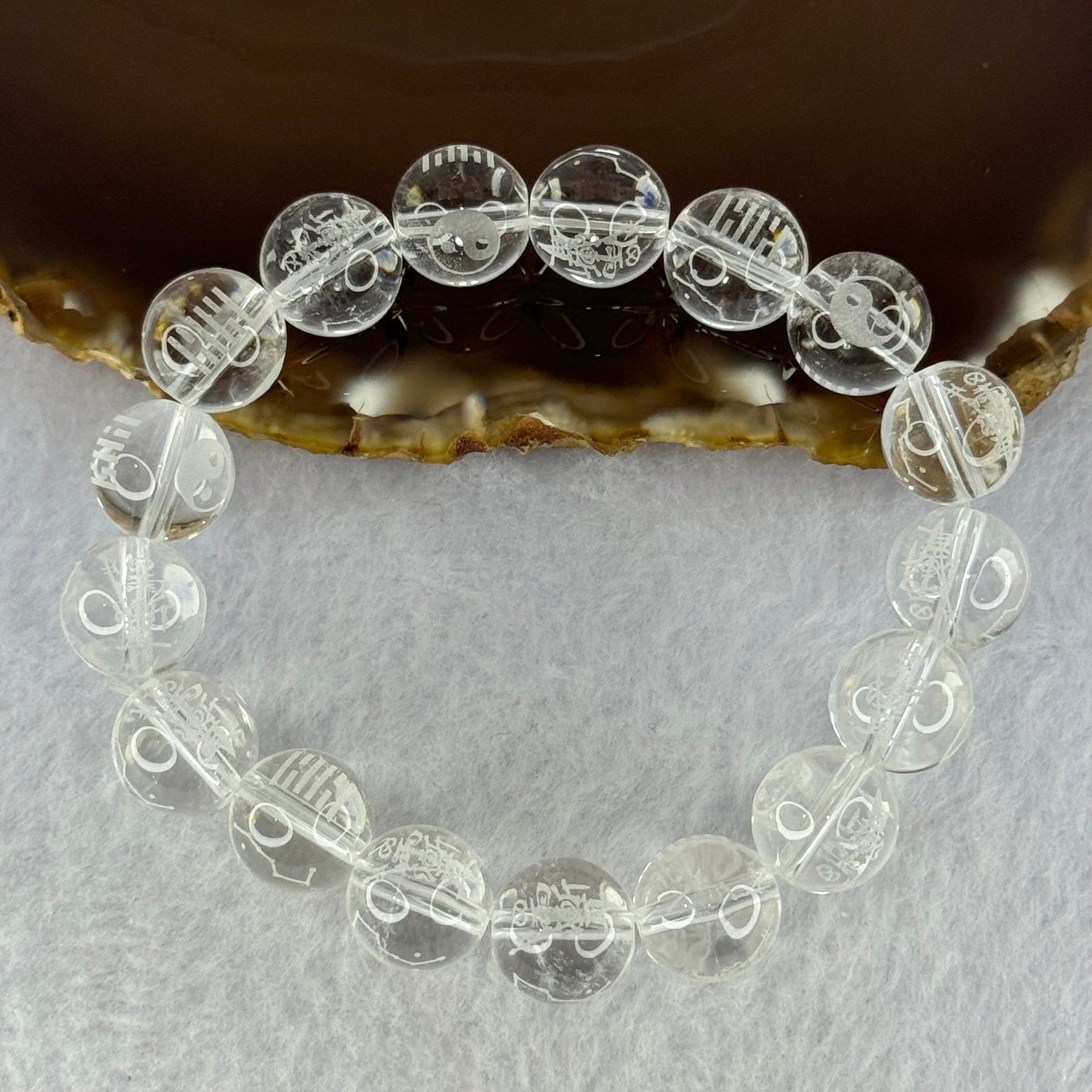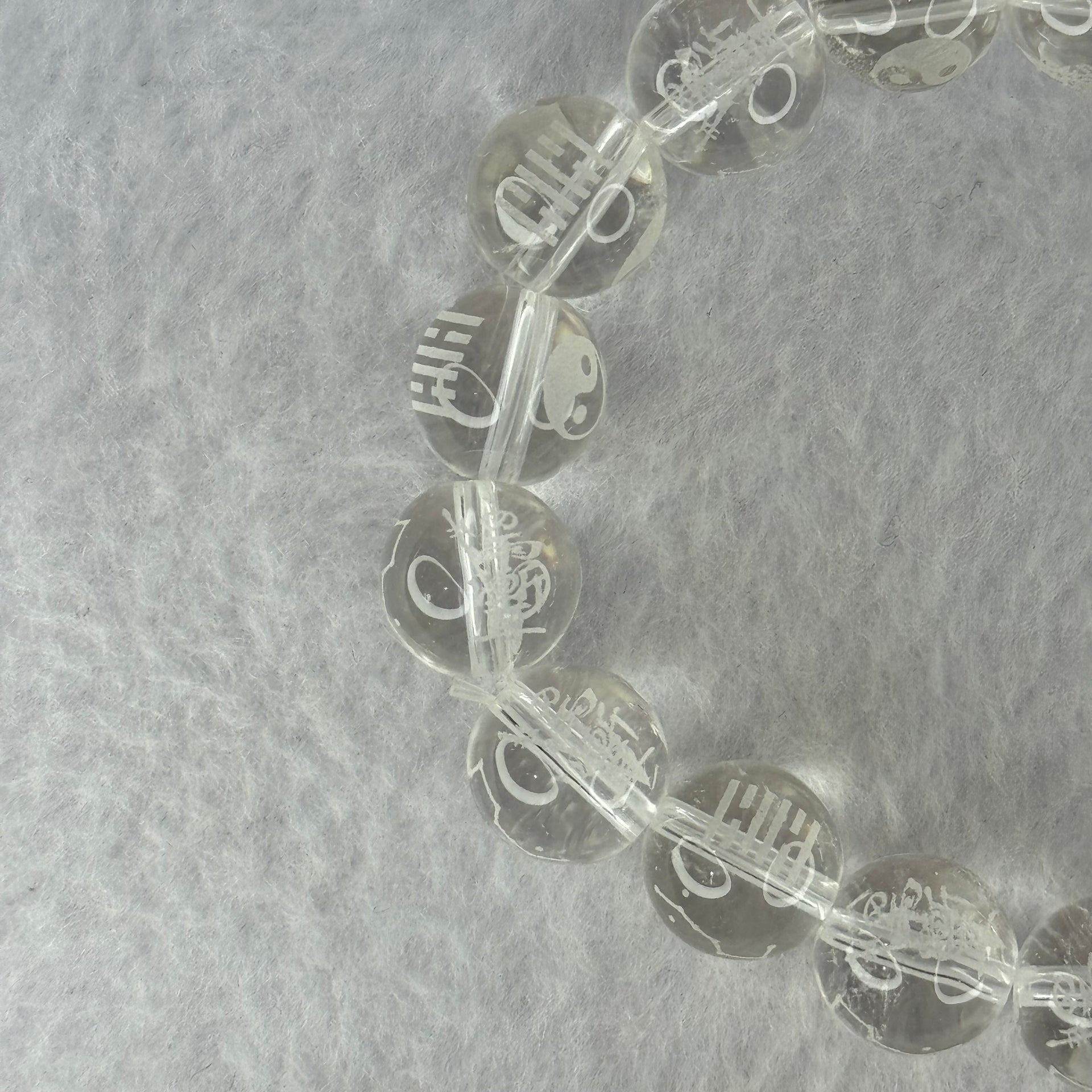 Natural Clear Quartz Beads with Inscription Bracelet 38.05g 17cm 11.9mm 17 Beads