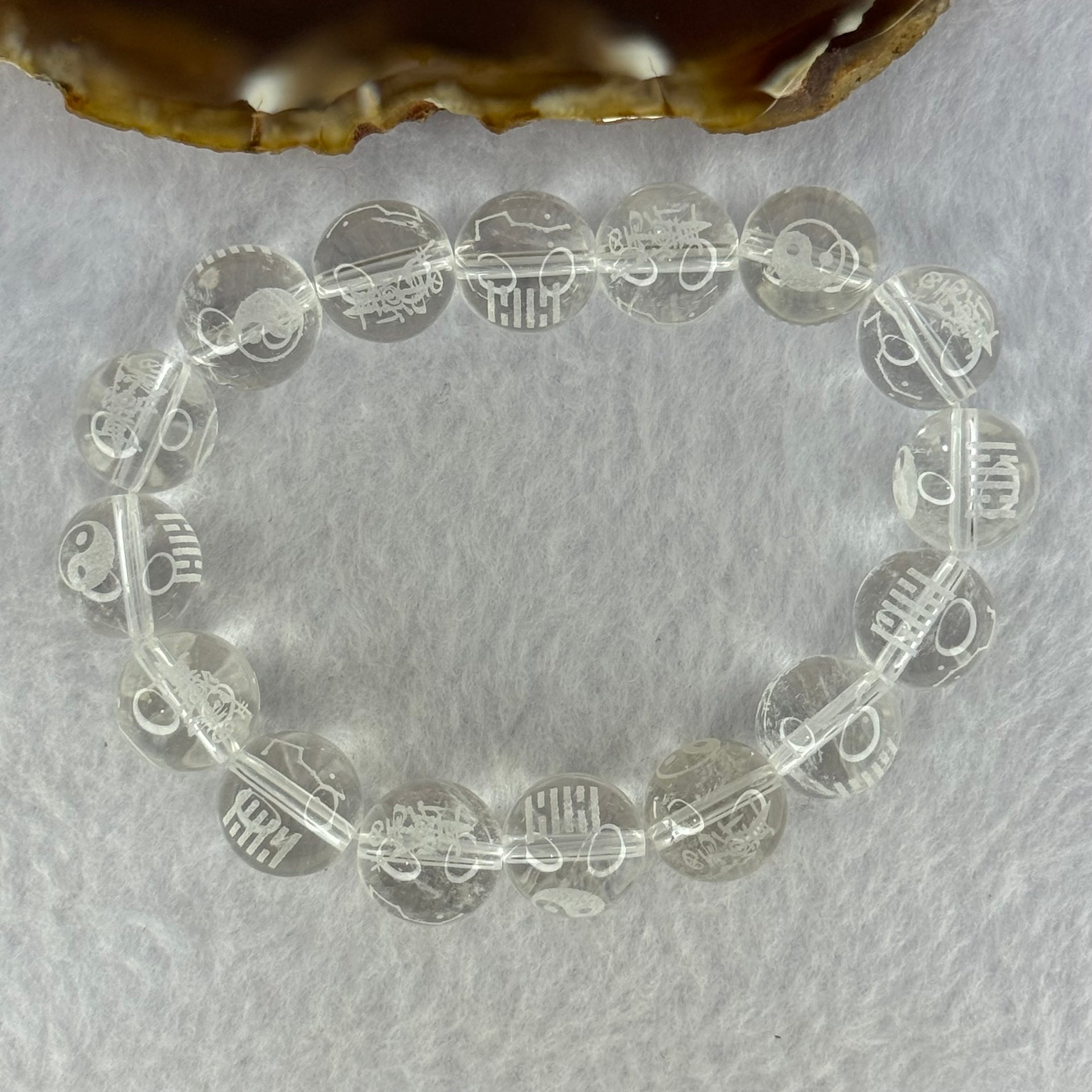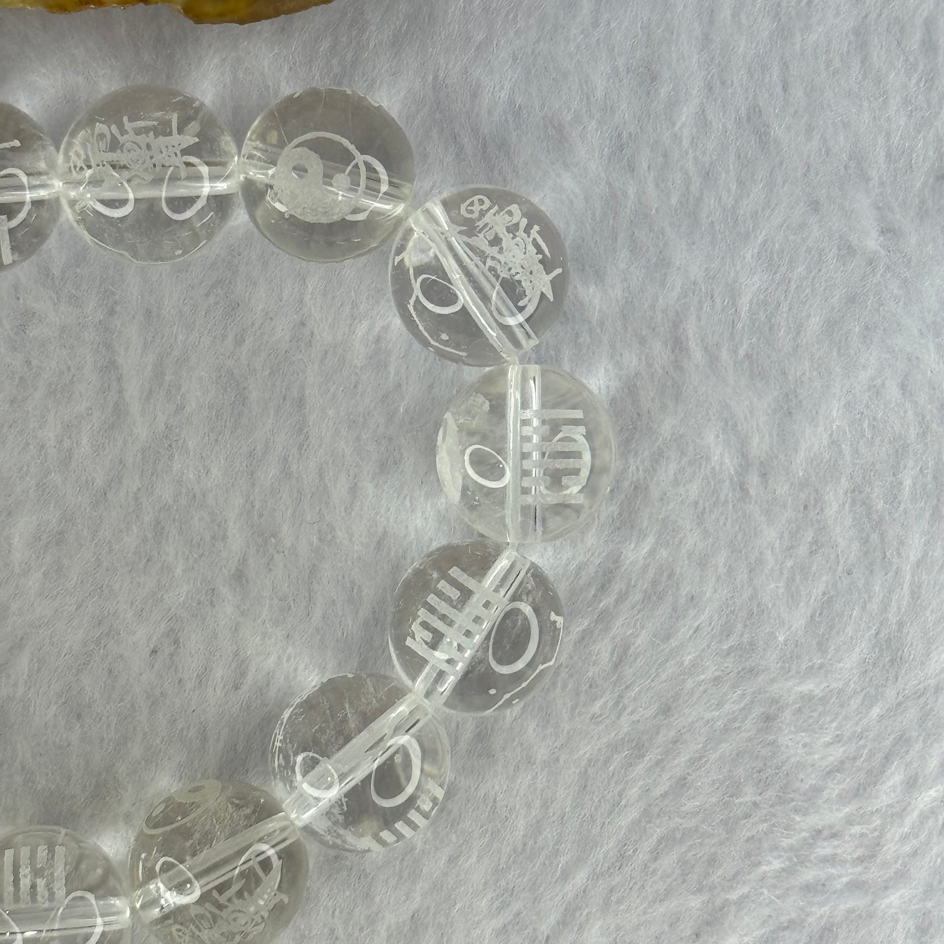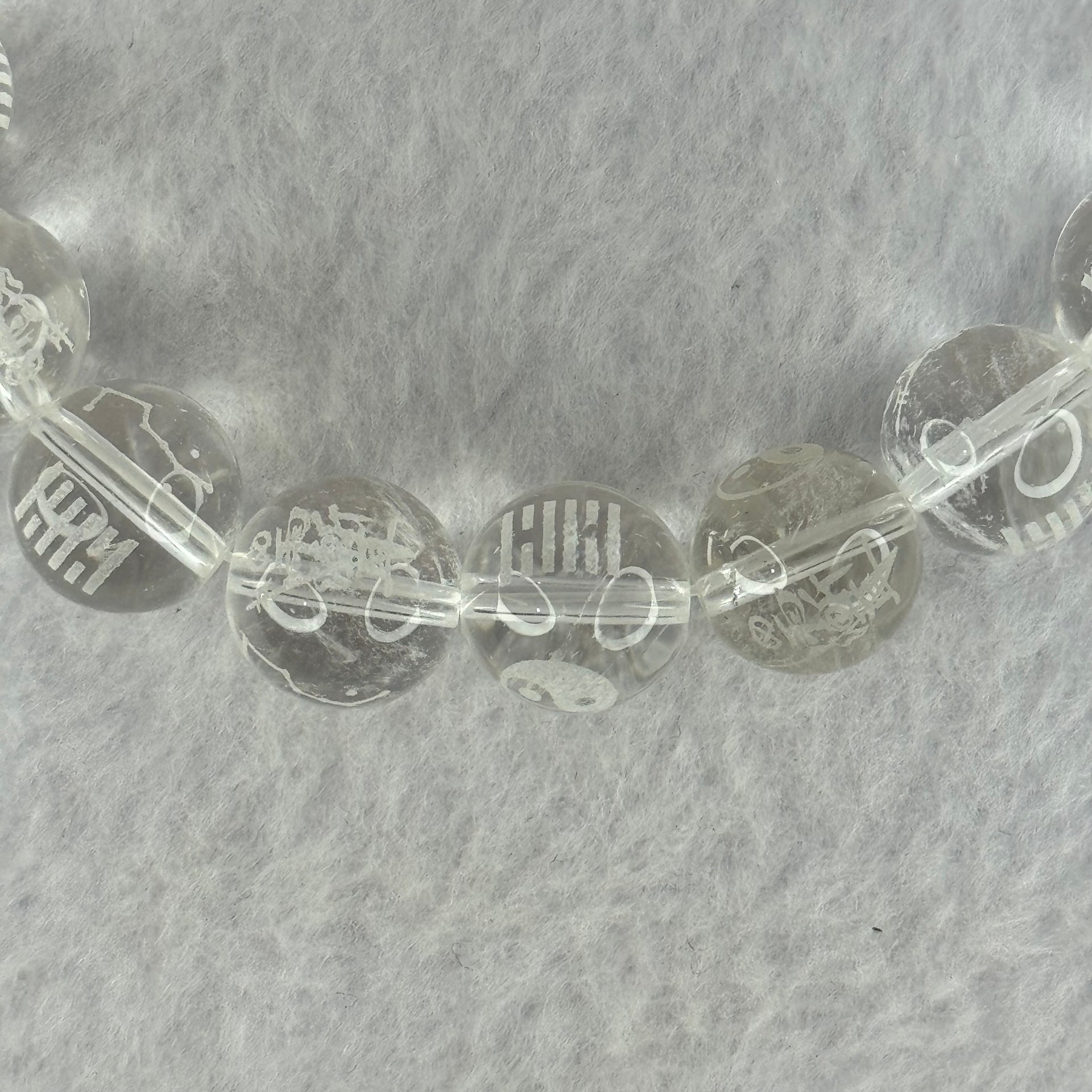 Natural Clear Quartz Beads with Inscription Bracelet 44.68g 17.5mm 12.7mm 16 Beads
