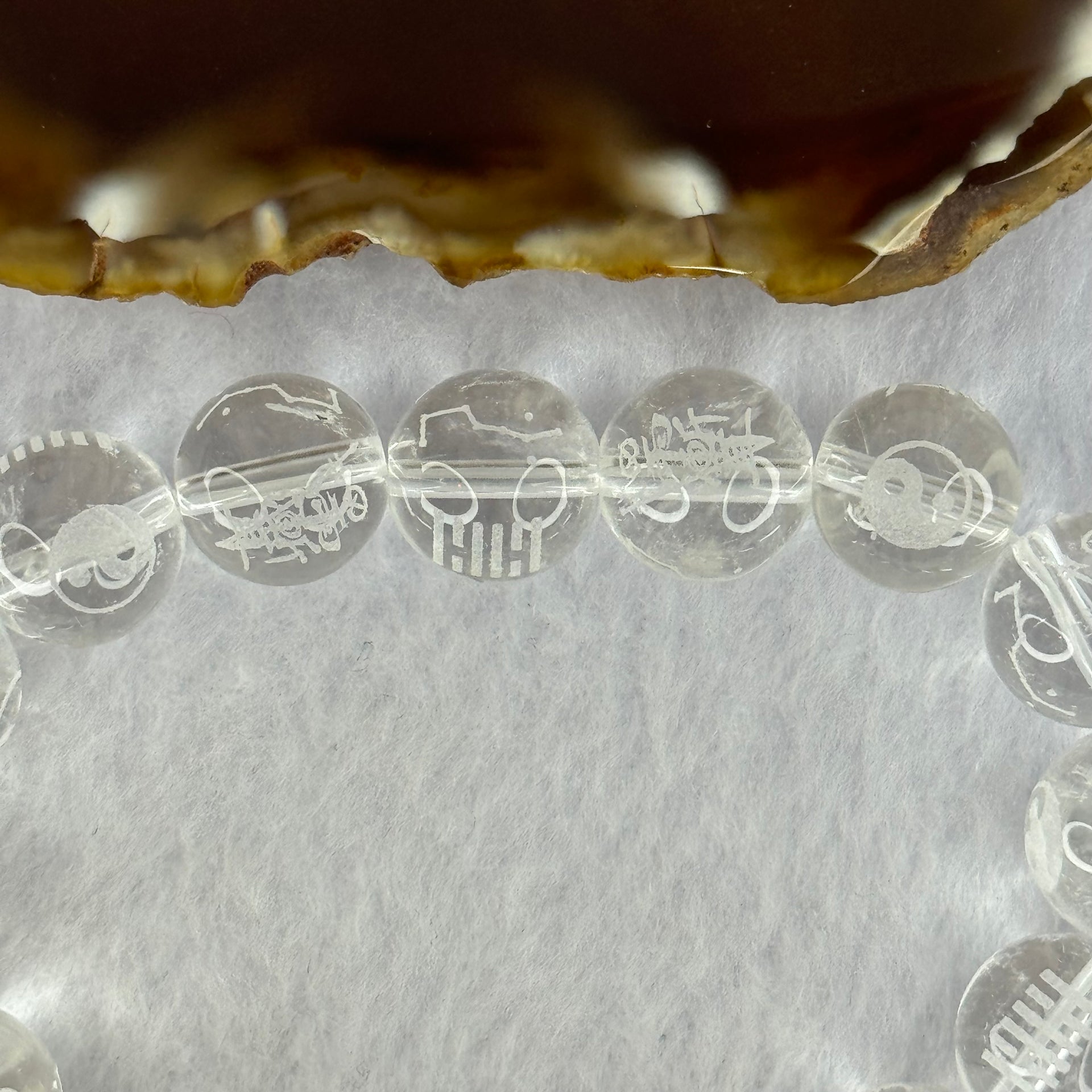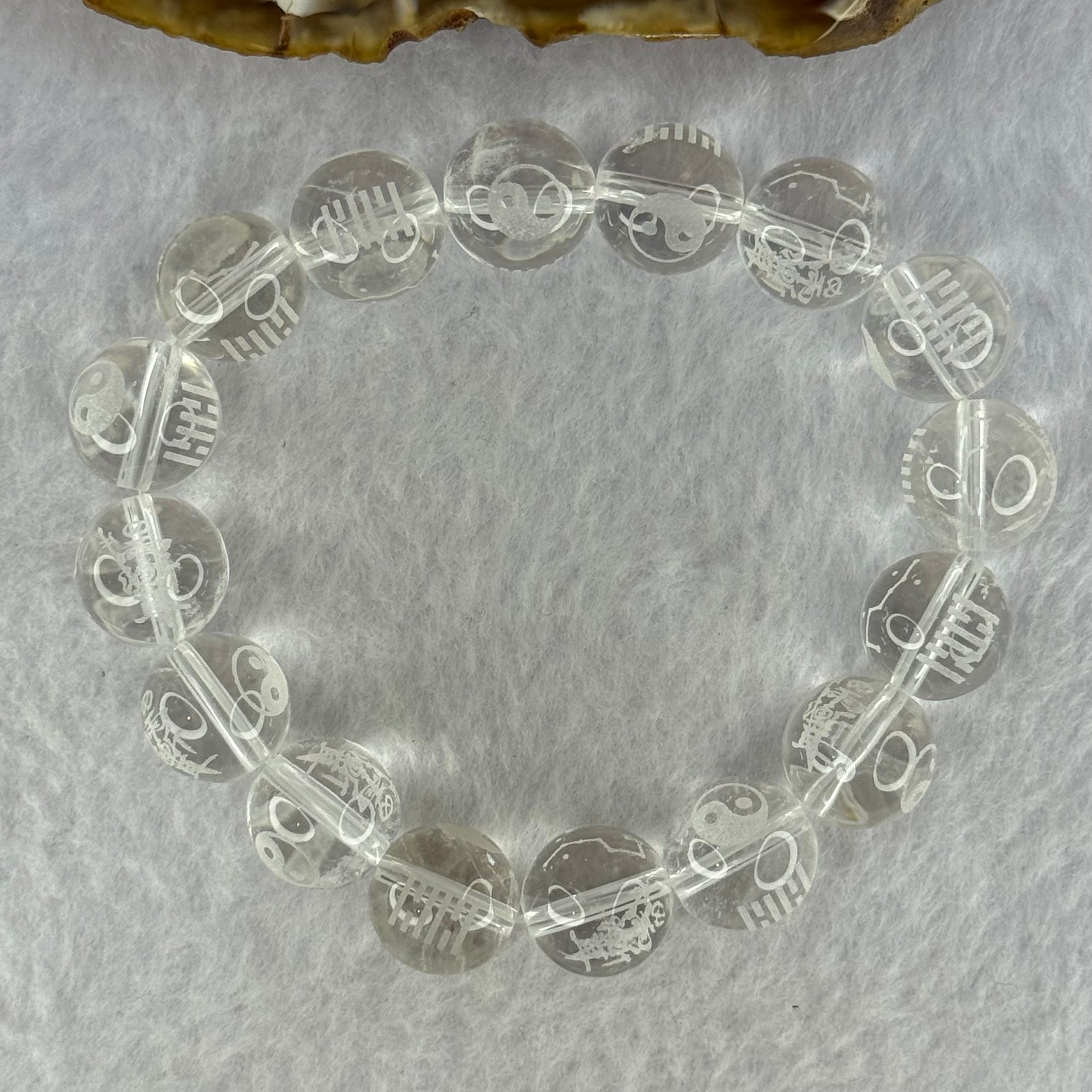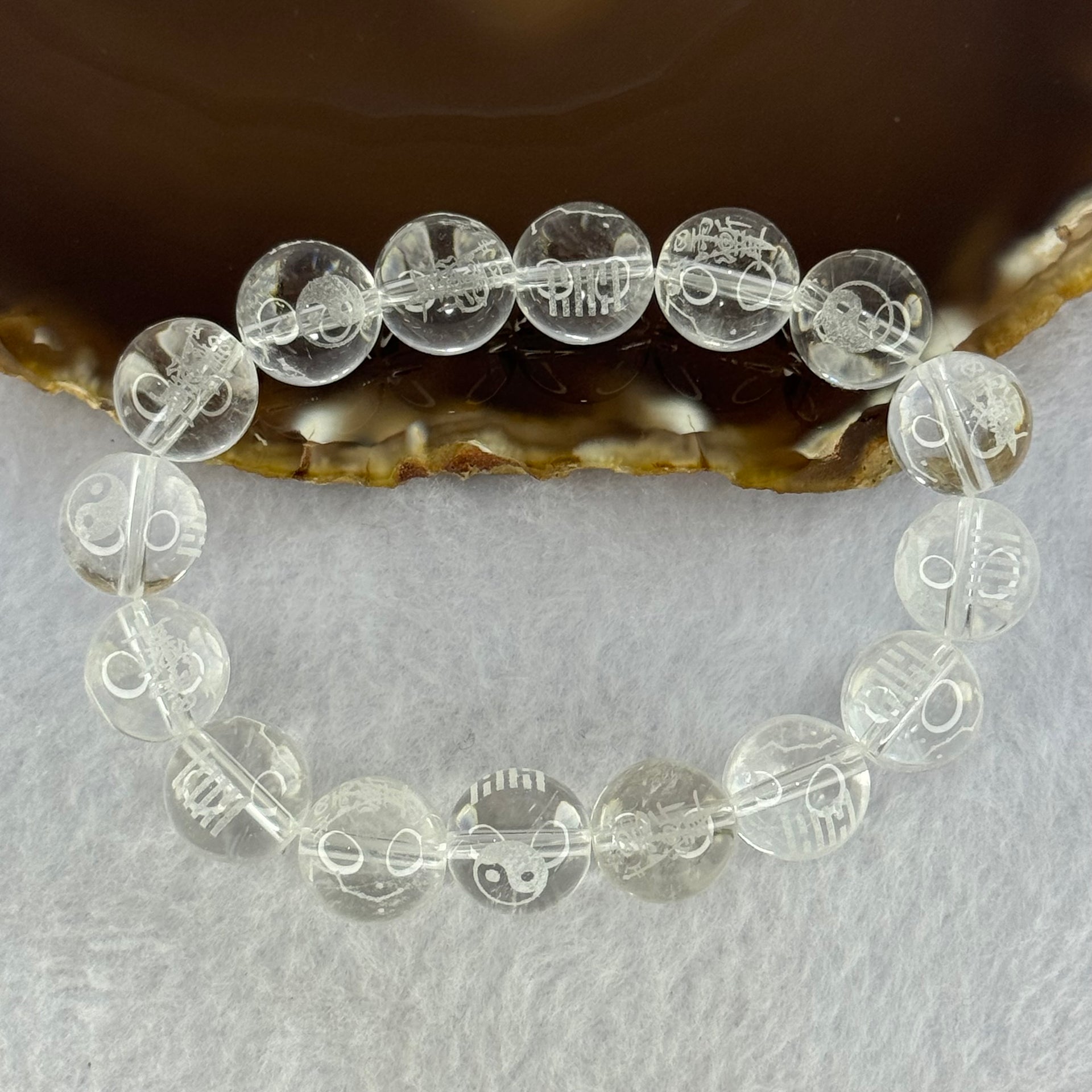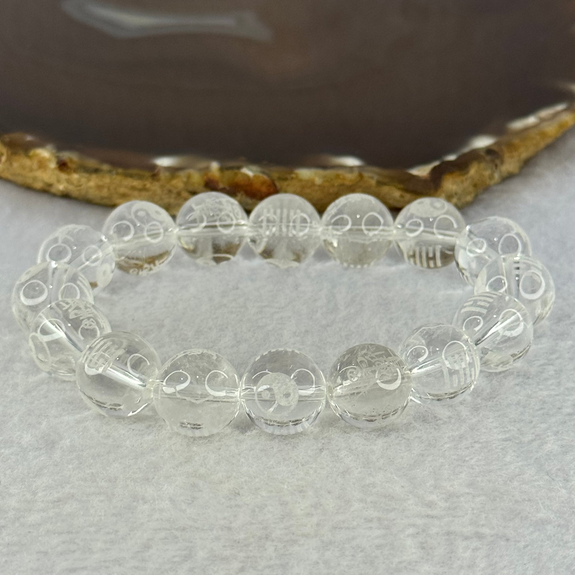 Natural Clear Quartz Beads with Inscription Bracelet 44.68g 17.5mm 12.7mm 16 Beads