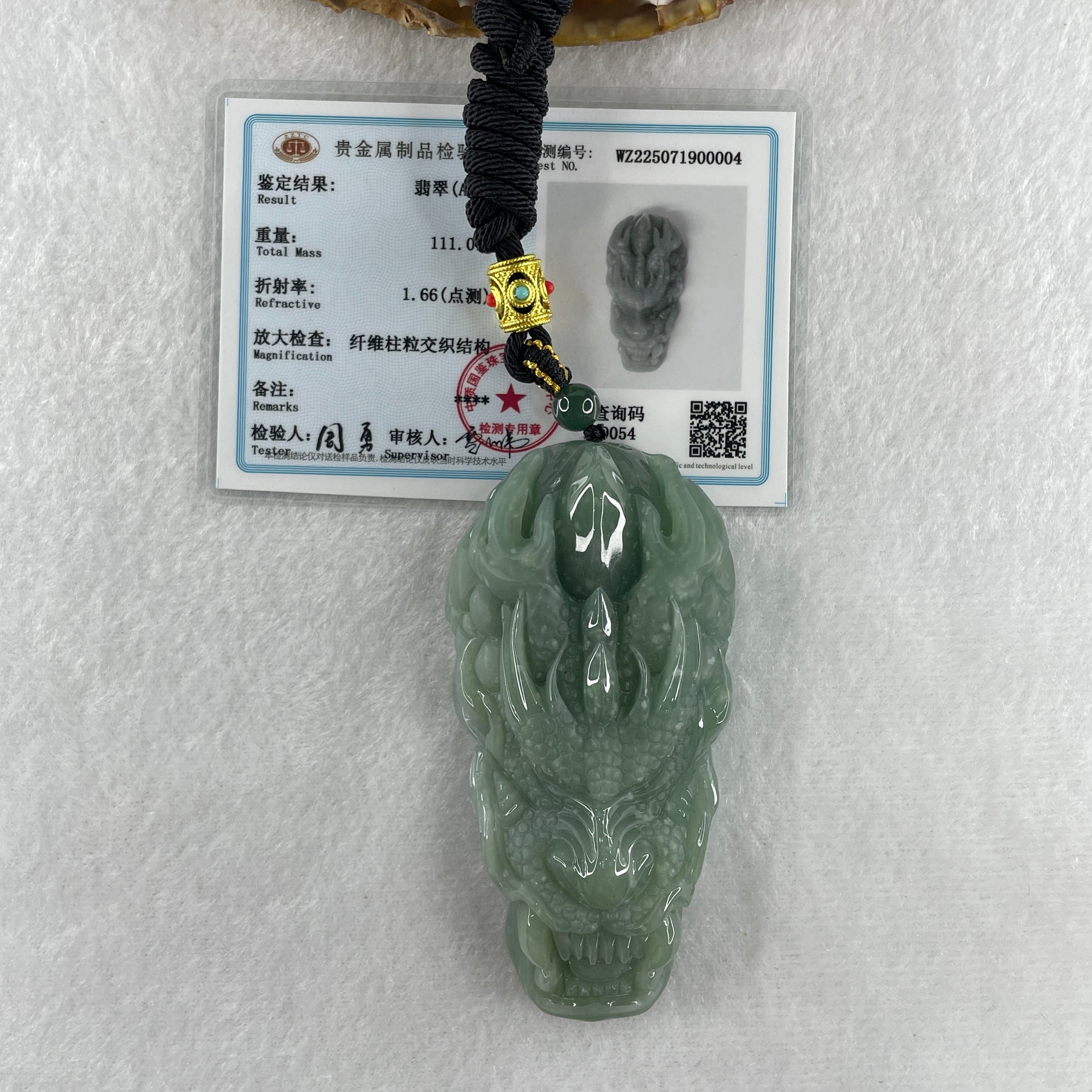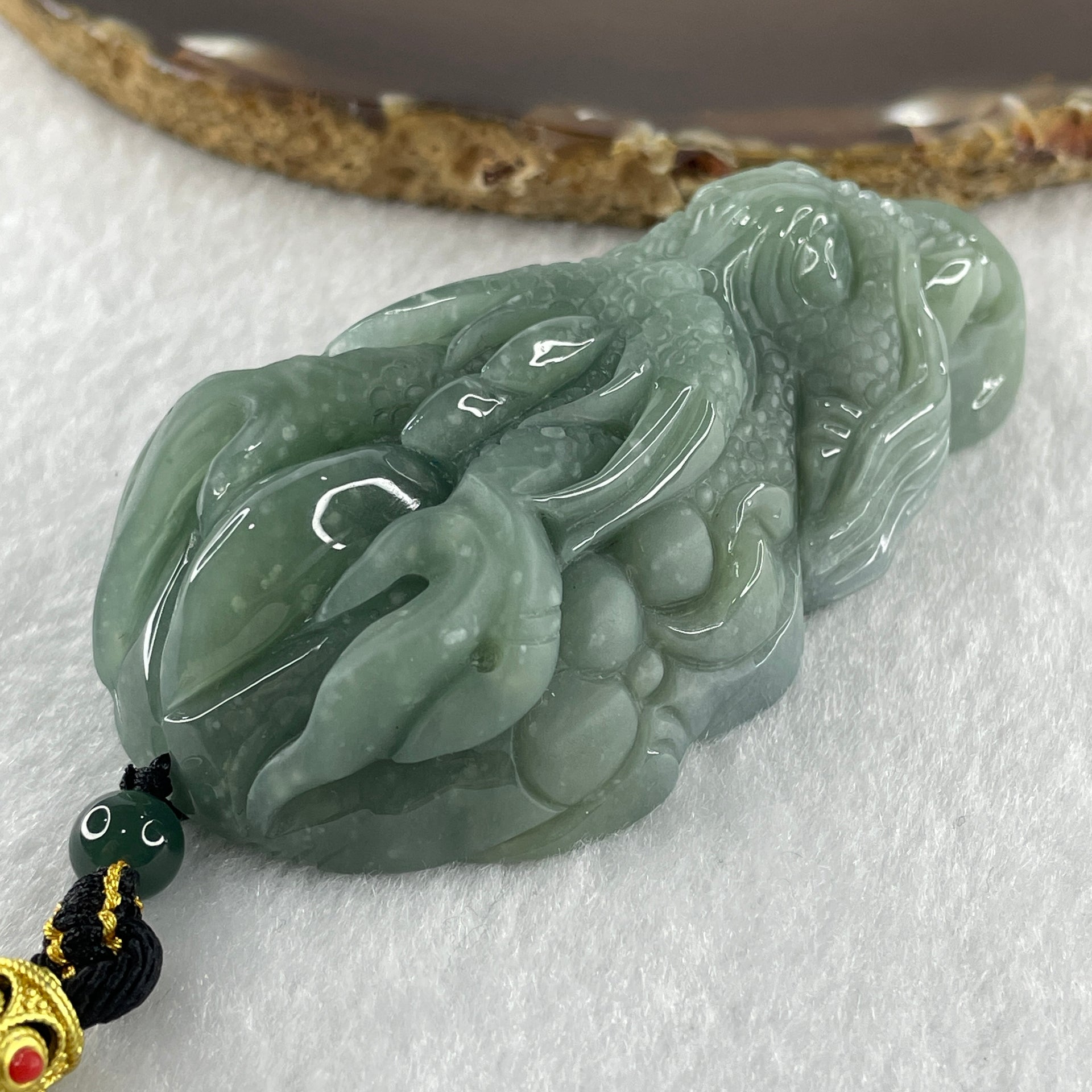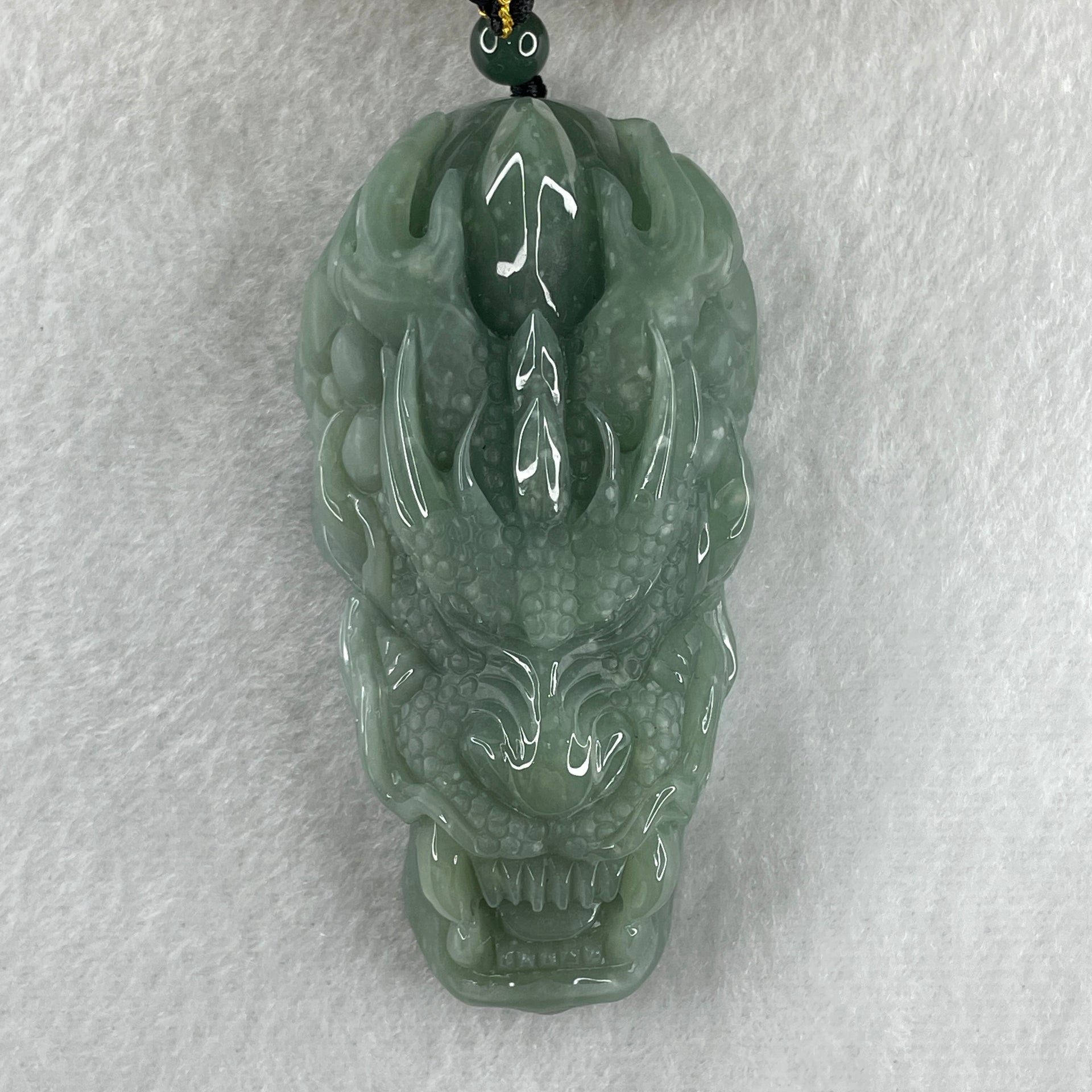 Natural Type A Blueish Green Jadeite Dragon Head Pendant 111.01g 78.0 by 40.7 by 22.2mm