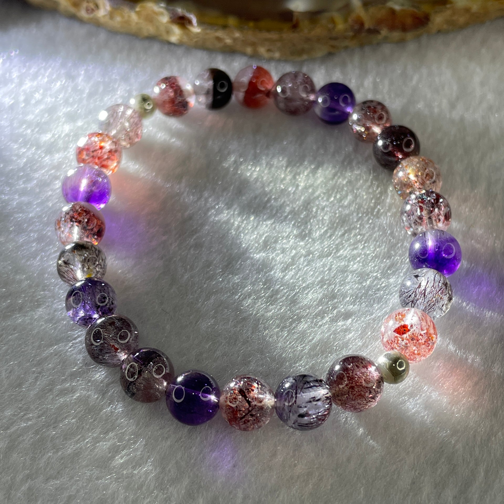 Very Good Grade Natural Super 7 Quartz Crytsal Beads Bracelet 9.85g 13.5cm 6.9mm 24 Beads
