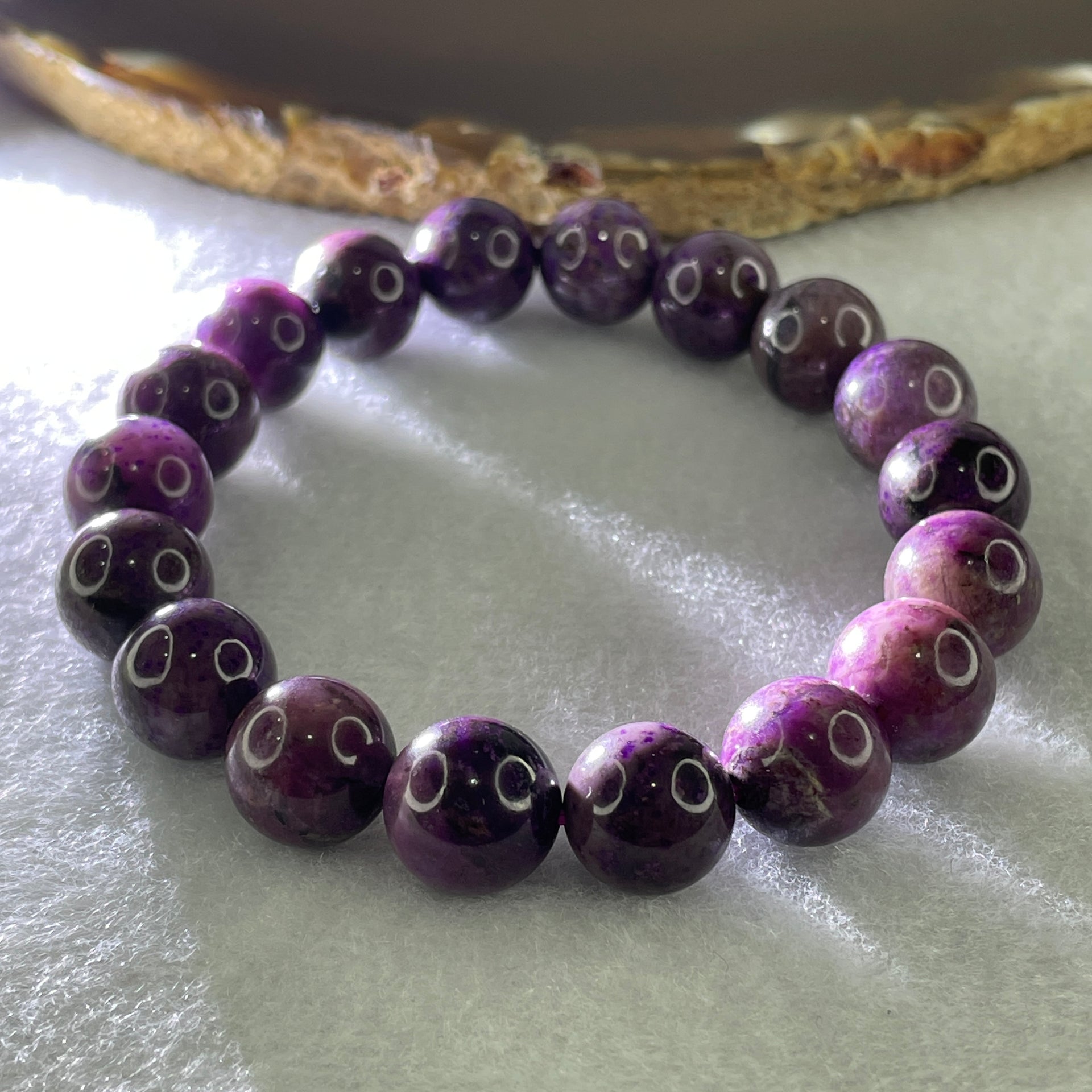 Material - Sugilite is a rare purple-magenta crystal that has healing and protective properties. Known as the "Premier Love Stone of This Age," it is linked to fostering positive relationships and individual growth. It promotes higher consciousness and protection while providing relief from physical and emotional discomforts. It is good for both physical and spiritual well-being. It fosters positive relationships with your friends, family, coworkers, and even with yourself in addition to your partner.