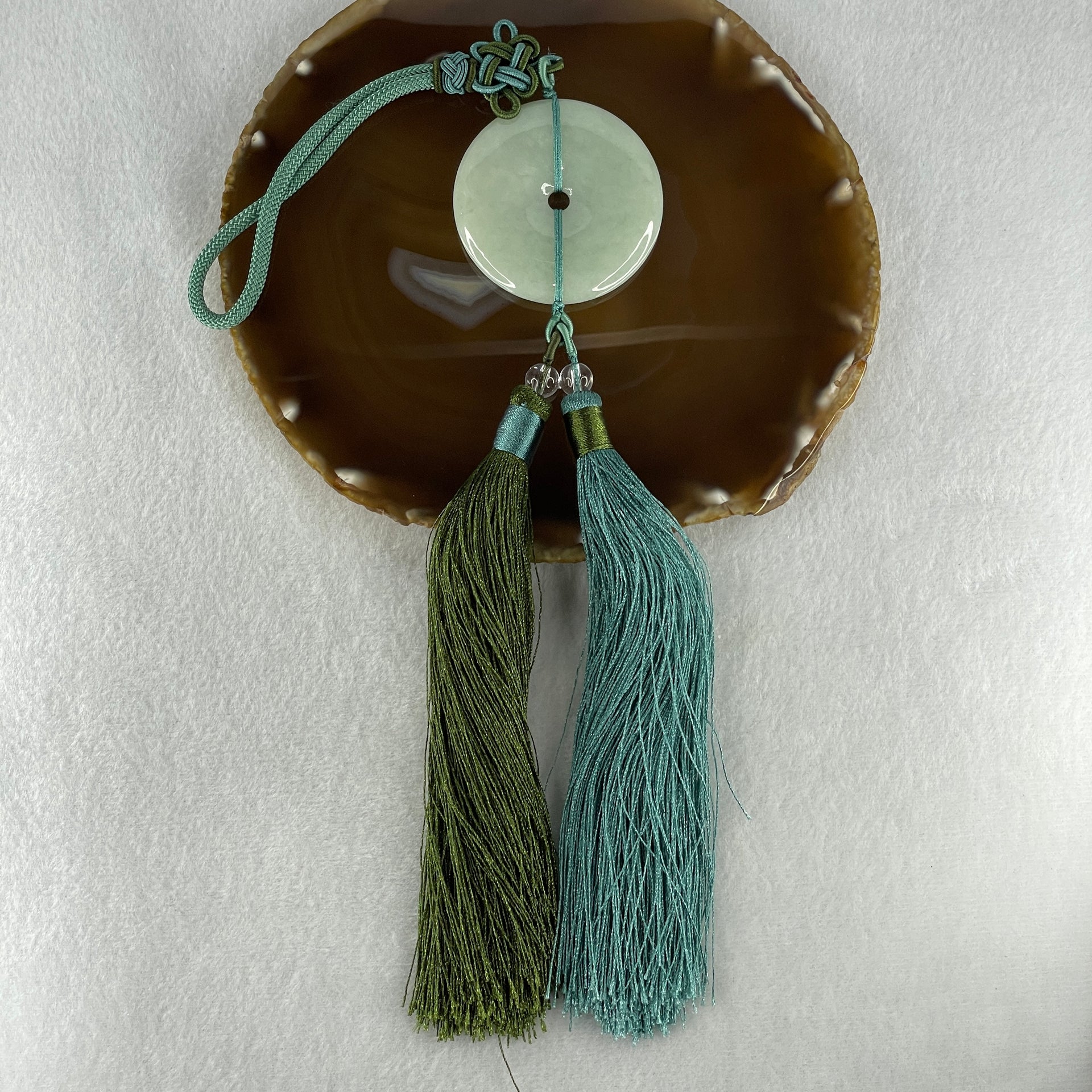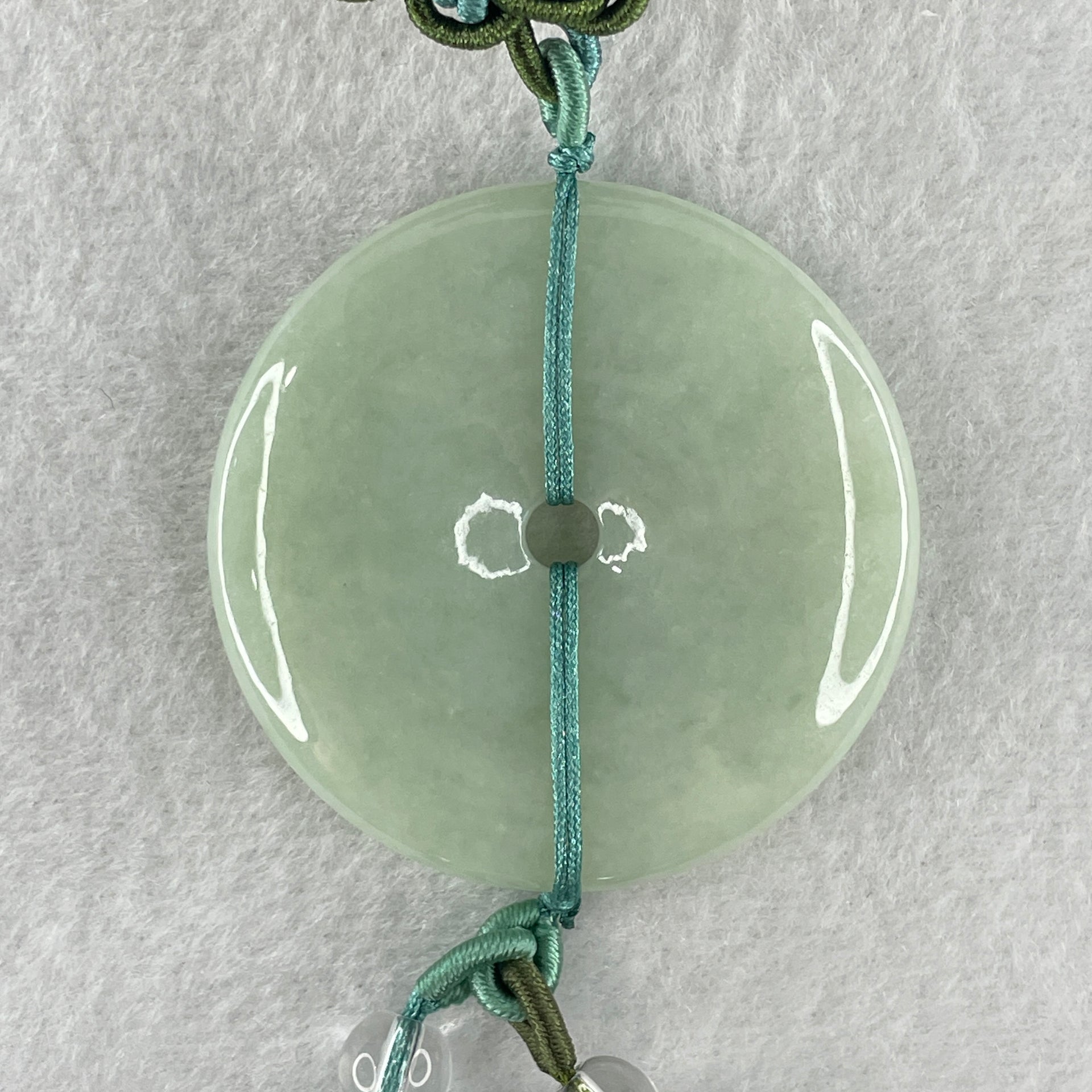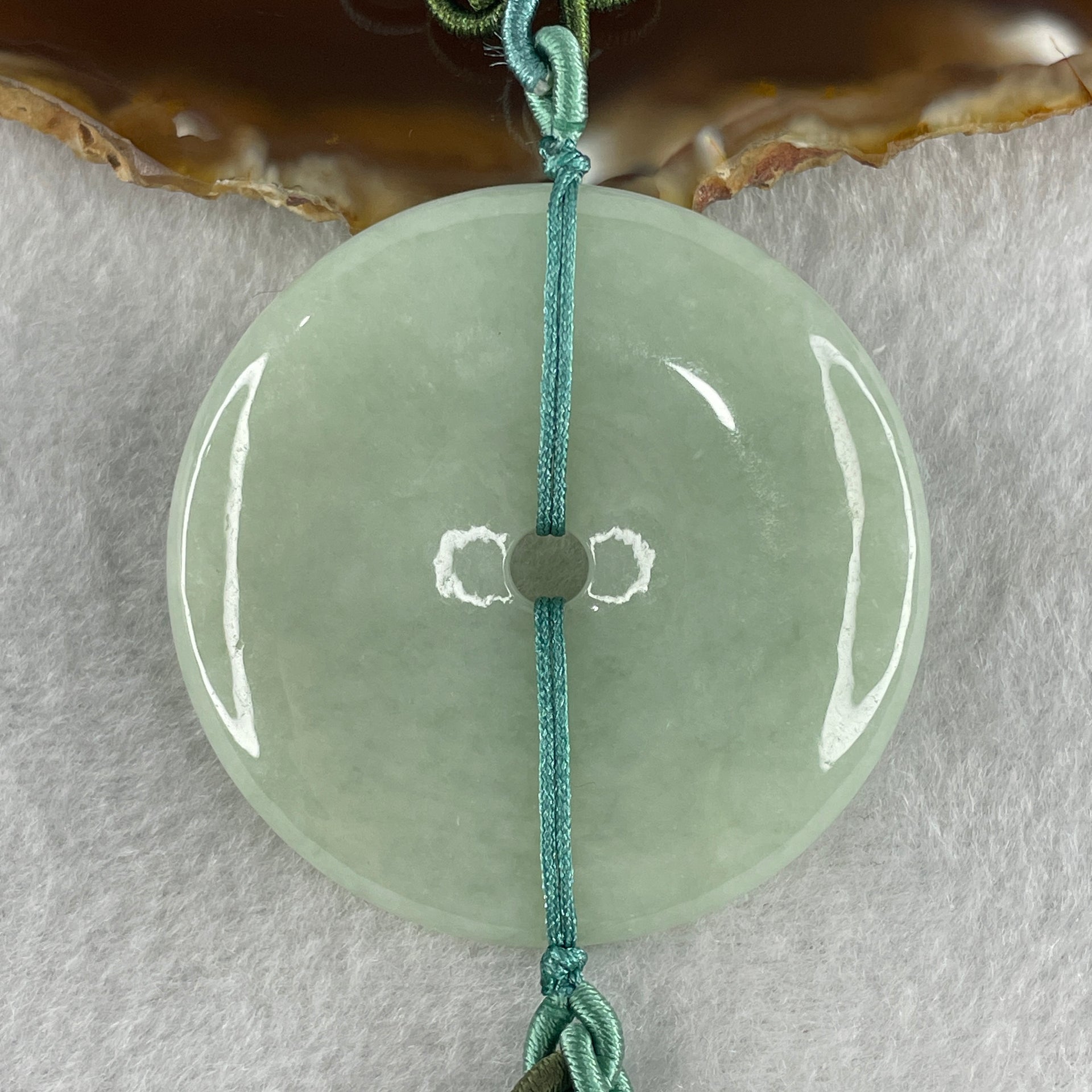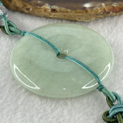 Natural Type A Light Green Jadeite Ping An Kou Donut Pendant in Hanging Display String 57.40g 50.3 by 7.8mm