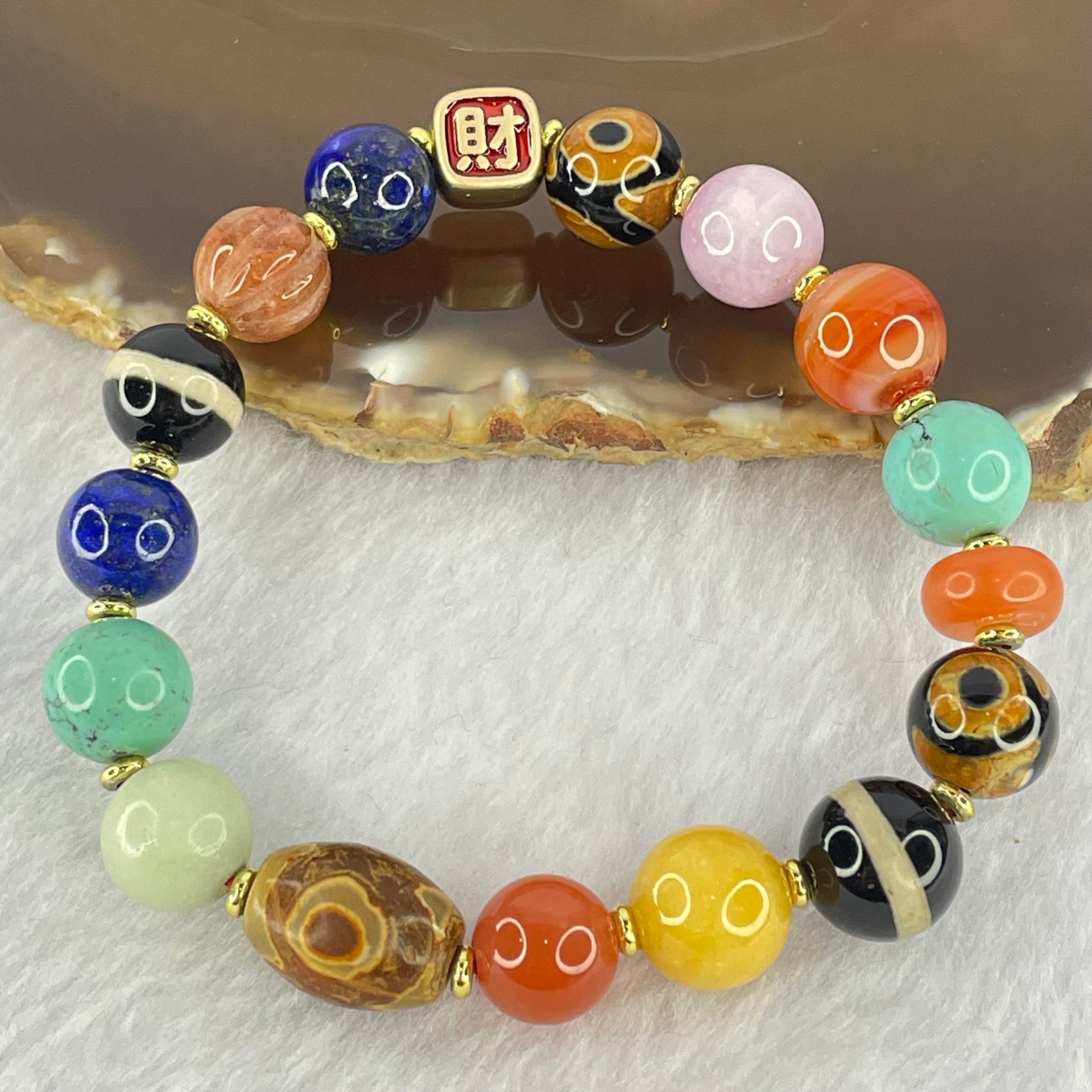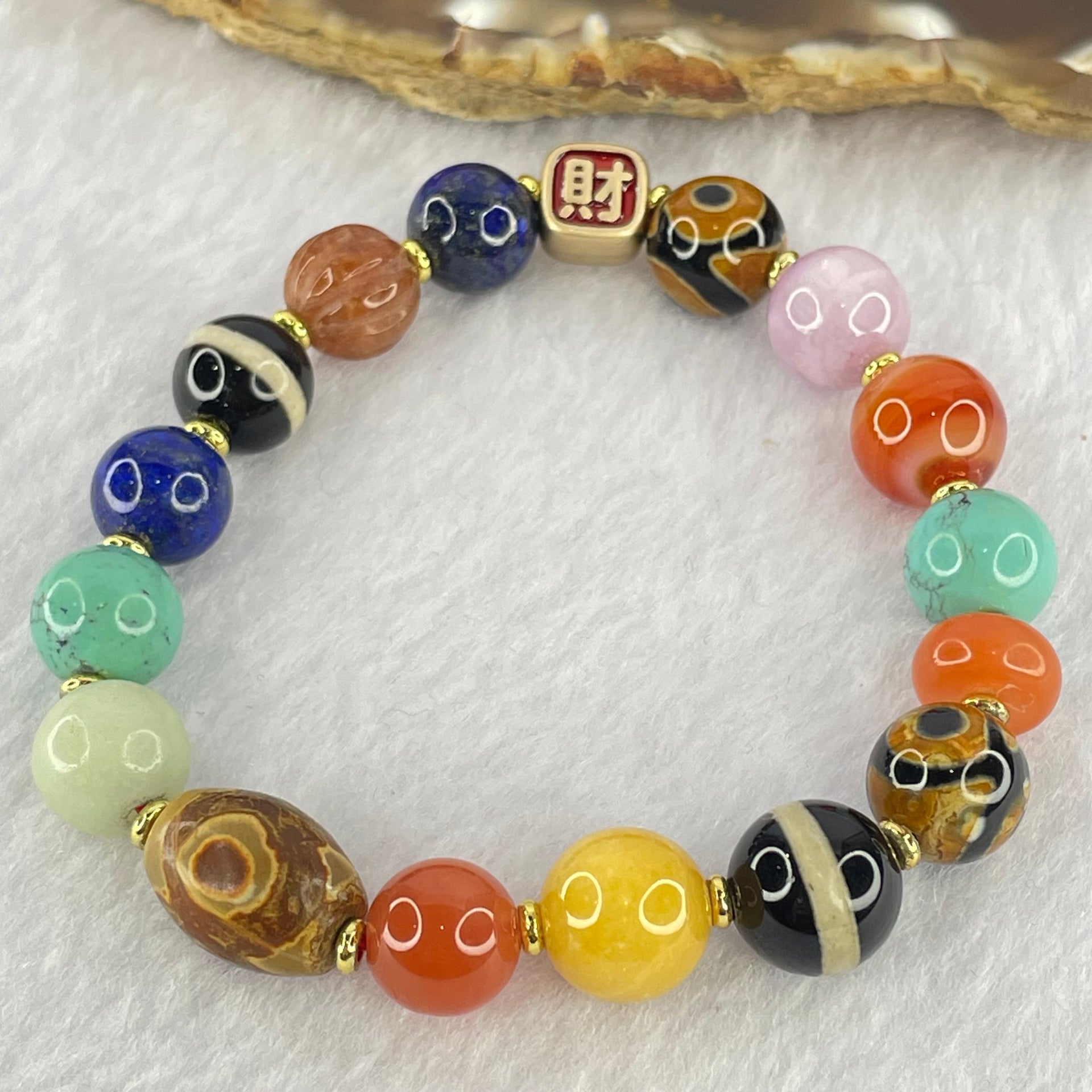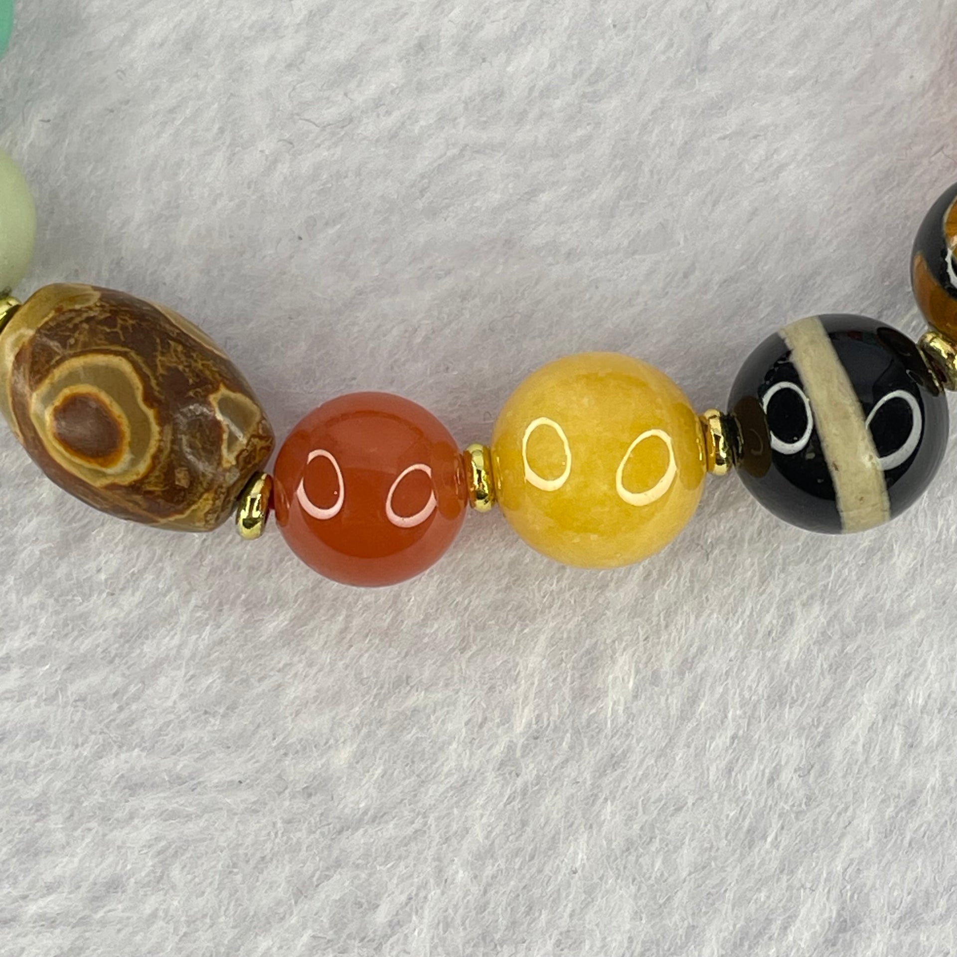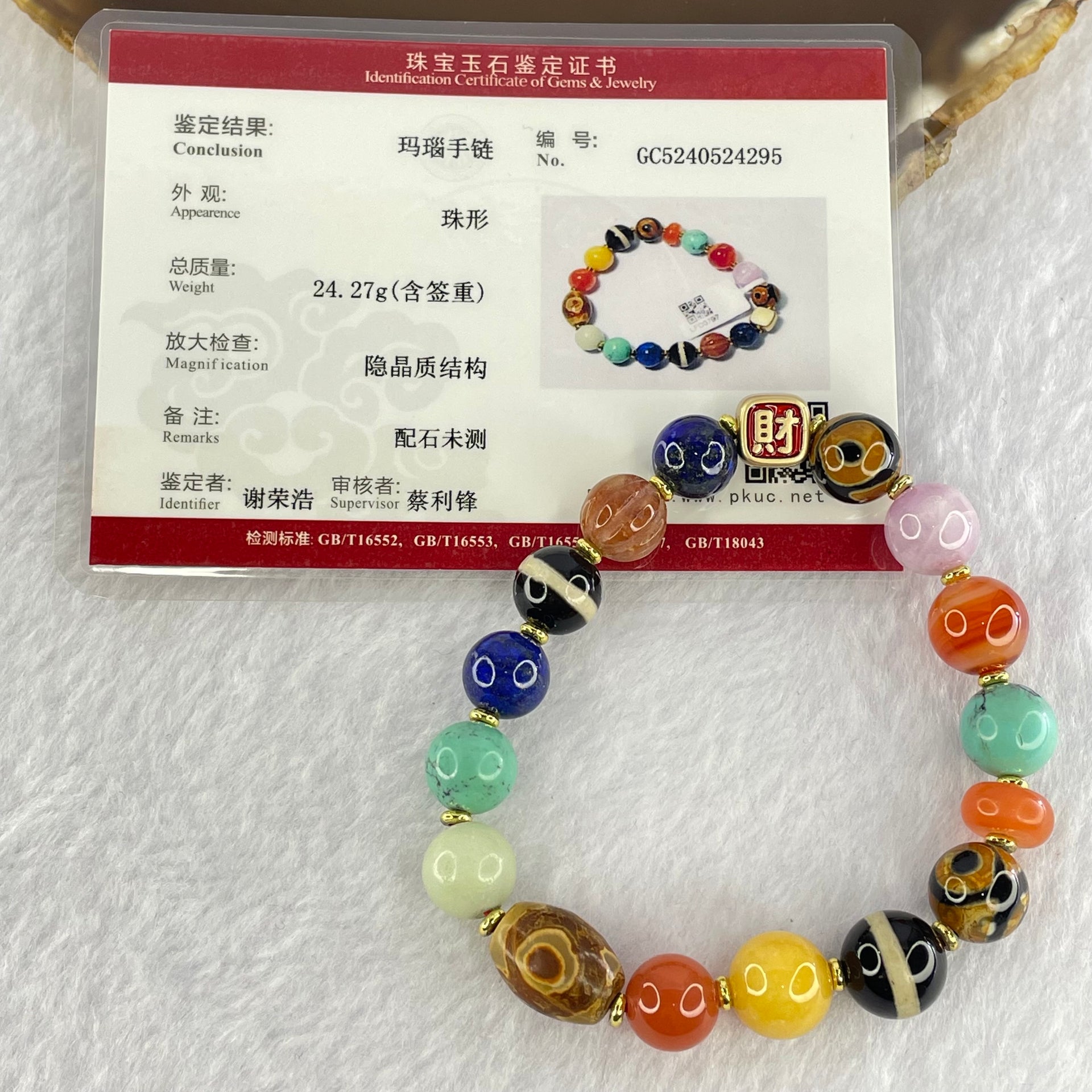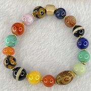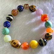 Blessed Certified Muti Treasure with with Tibetan Old Oily Agate Dzi Beads (3 Eyes and One Line) with Natural Crystals Bracelet 24.27g 15.5cm 3 Eye 13.6 by 10.1mm 1 Bead, 10.0mm 2 Beads
