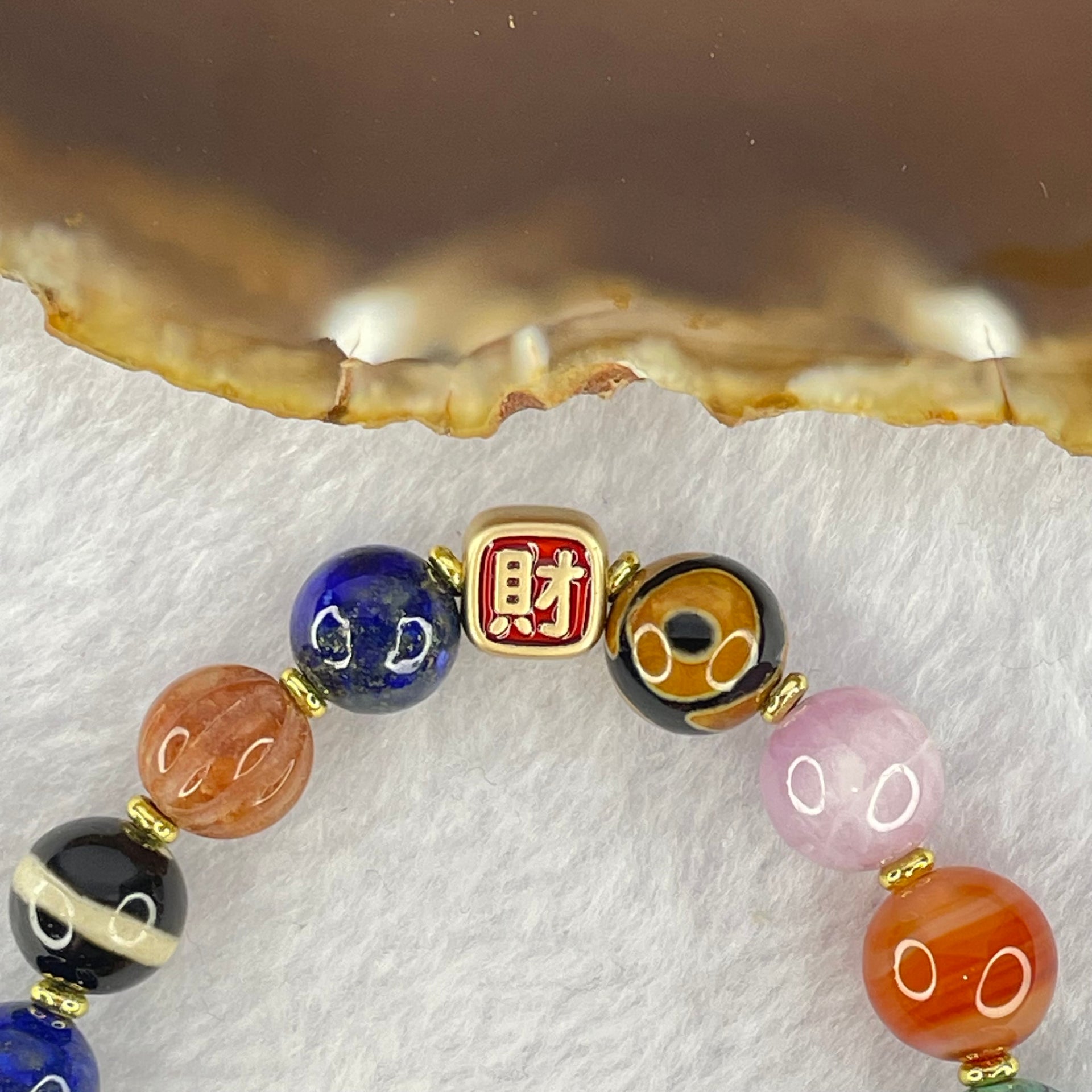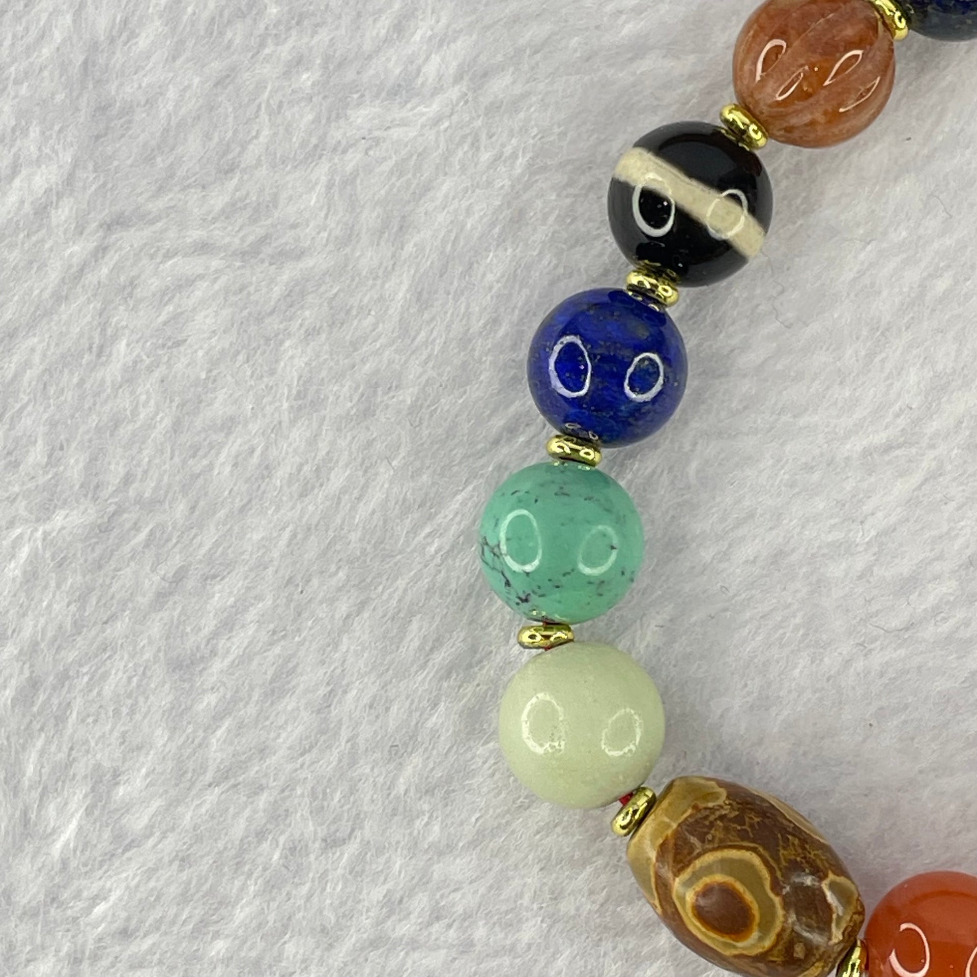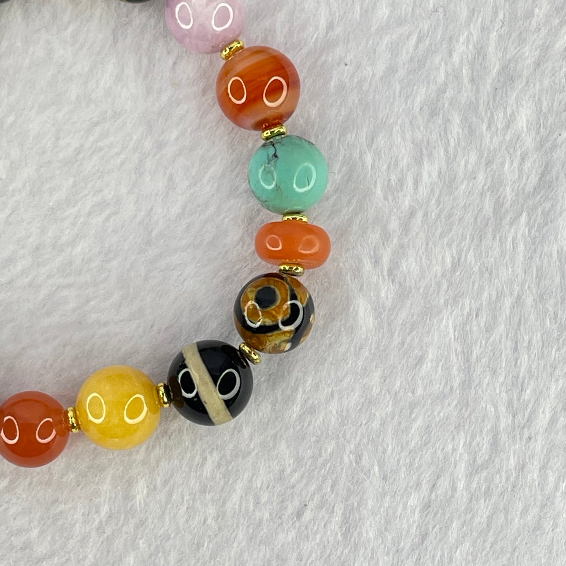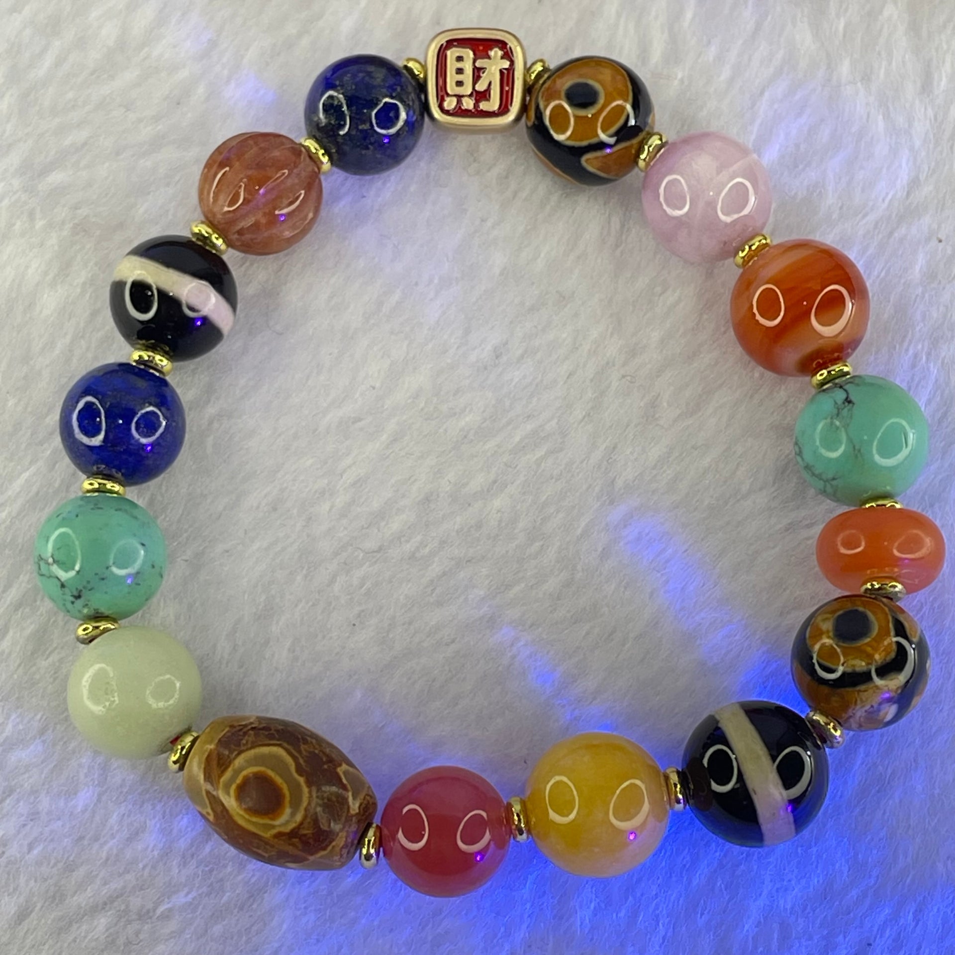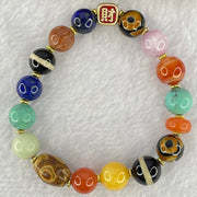 Blessed Certified Muti Treasure with with Tibetan Old Oily Agate Dzi Beads (3 Eyes and One Line) with Natural Crystals Bracelet 24.27g 15.5cm 3 Eye 13.6 by 10.1mm 1 Bead, 10.0mm 2 Beads