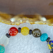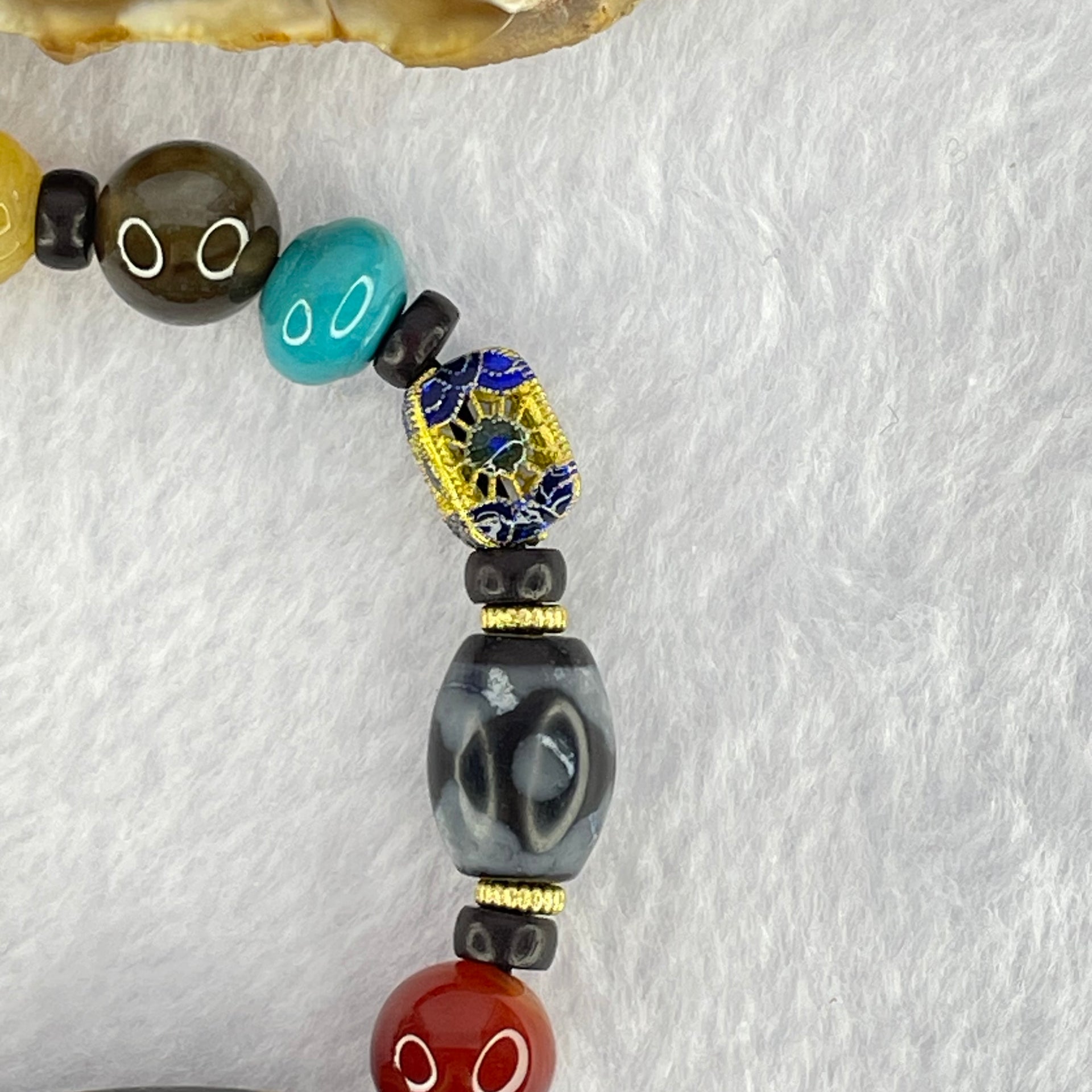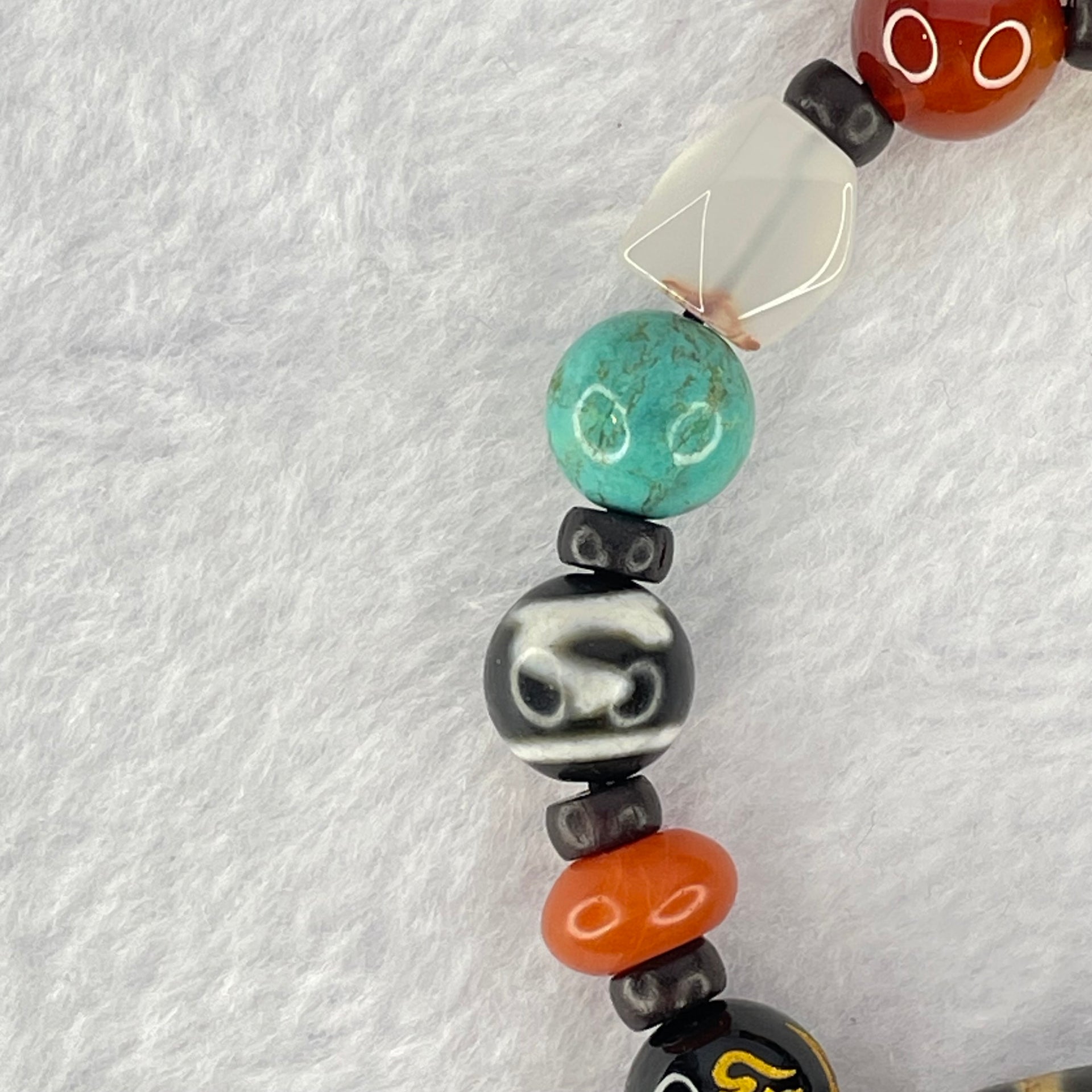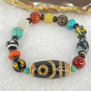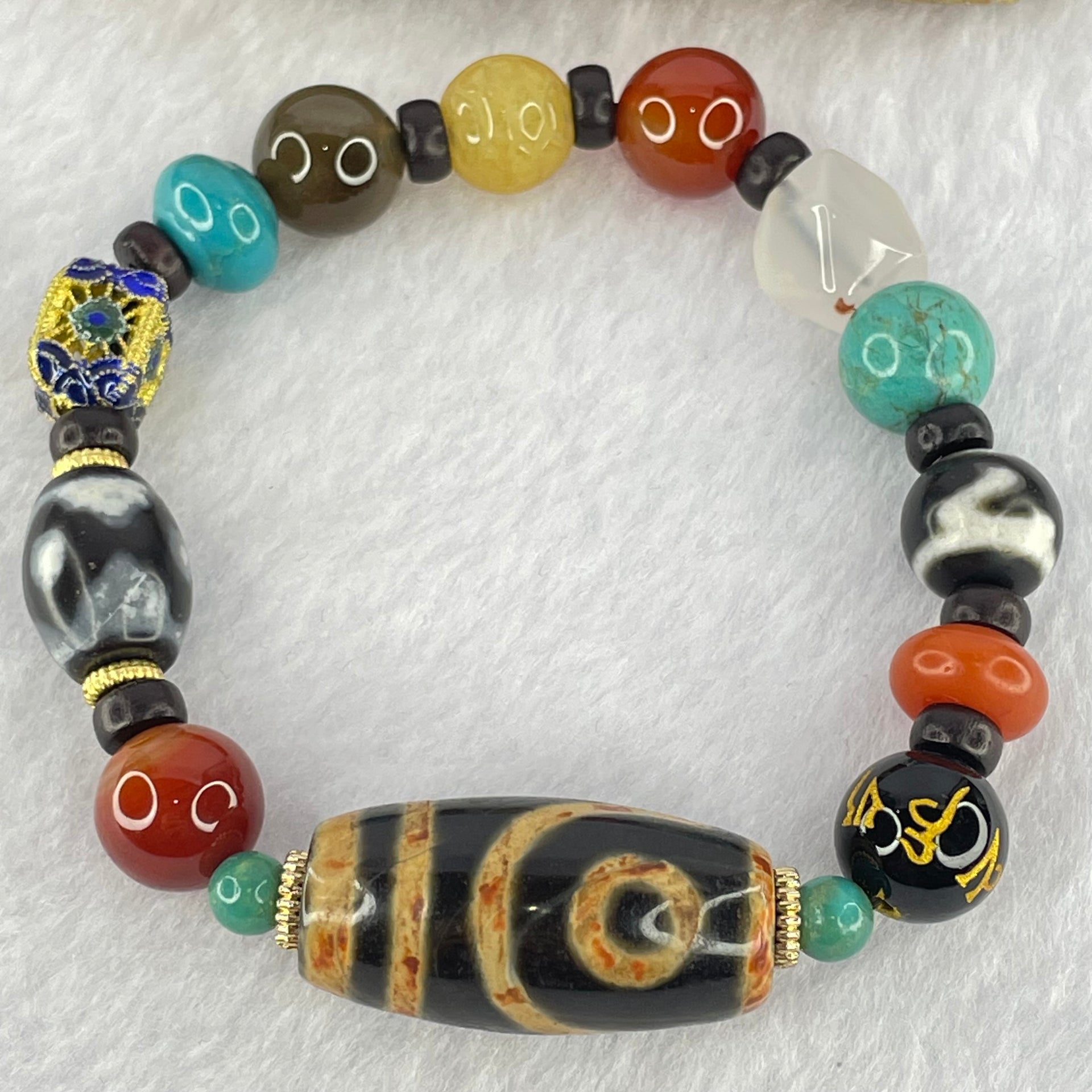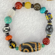 Blessed Certified Muti Treasure with with Tibetan Old Oily Agate Dzi Beads Bracelet (2 Eyes, 3 Eyes, Ruyi Dzi Beads) 27.31g 16cm 28.2 by 14.1mm, 13.9 by 10.4mm, 10.1 by 10.2mm