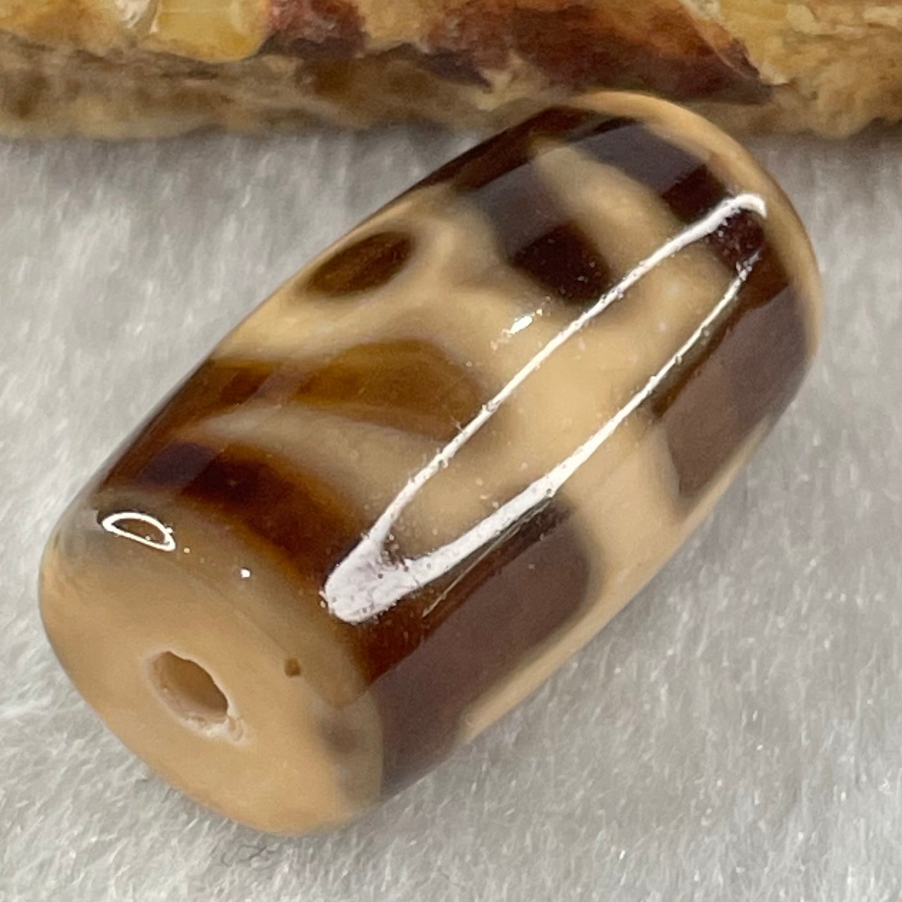 Natural Powerful Tibetan Old Oily Agate Patina Guiren Tairen Human Dzi Bead Totem Amulet Heavenly Master (Tian Zhu) 贵人天诛 4.64g 19.9 by 11.6mm