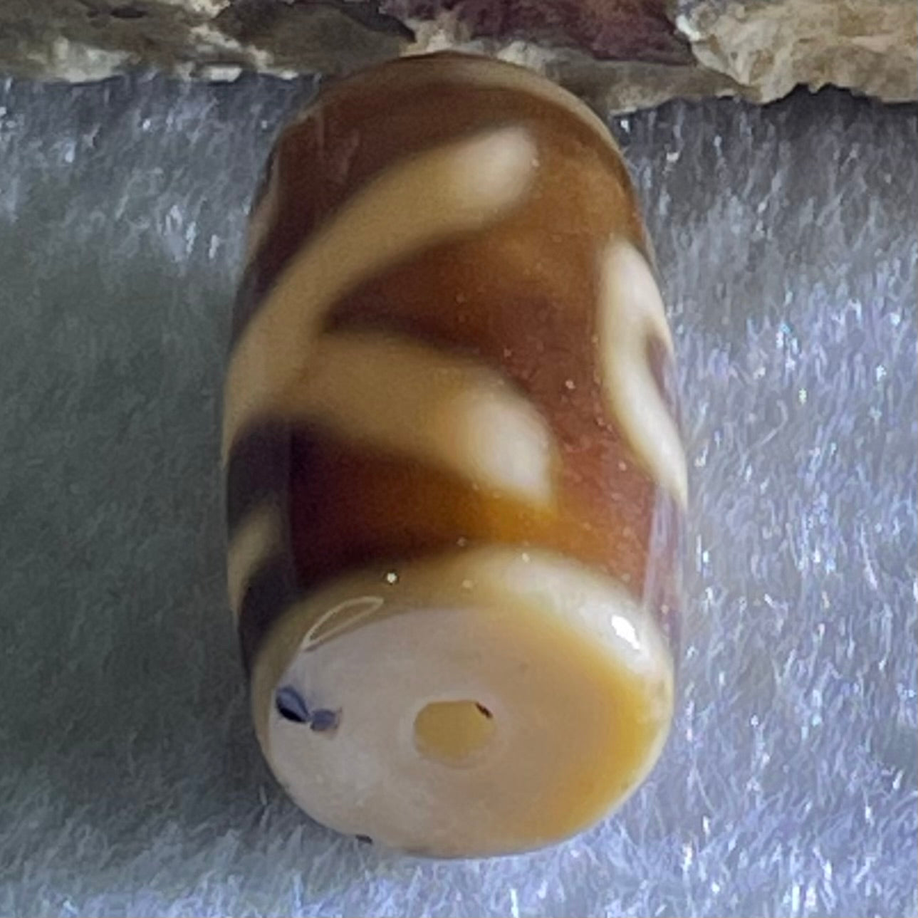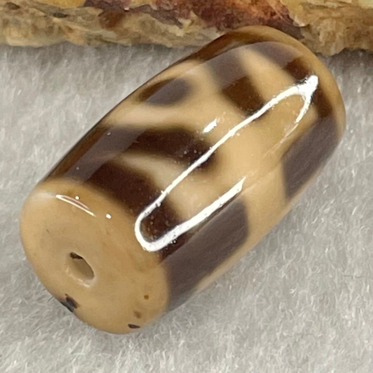 Natural Powerful Tibetan Old Oily Agate Patina Guiren Tairen Human Dzi Bead Totem Amulet Heavenly Master (Tian Zhu) 贵人天诛 4.76g 19.9 by 11.7mm