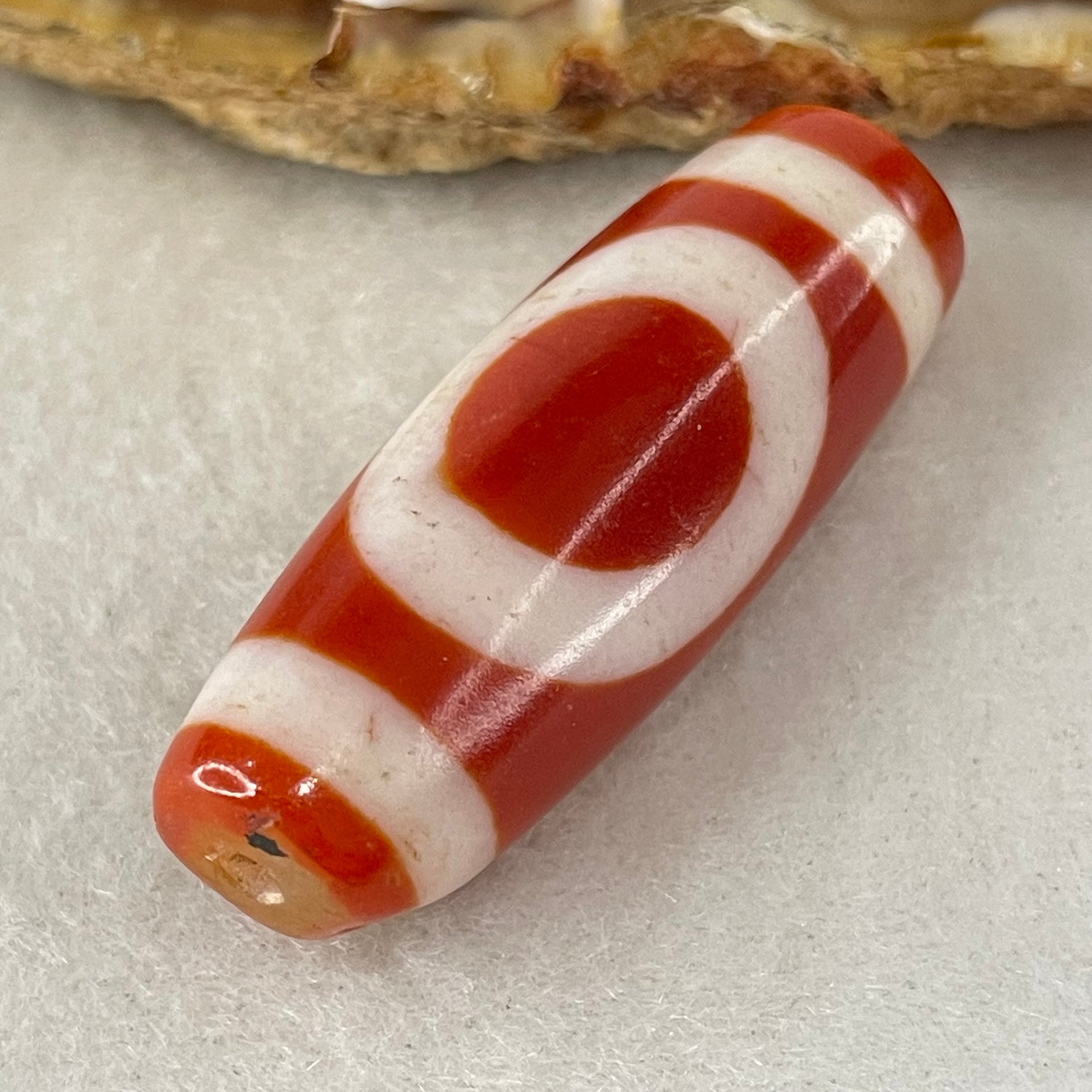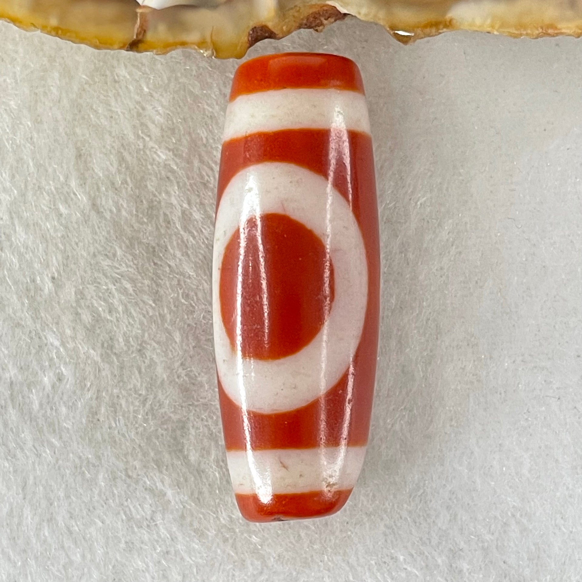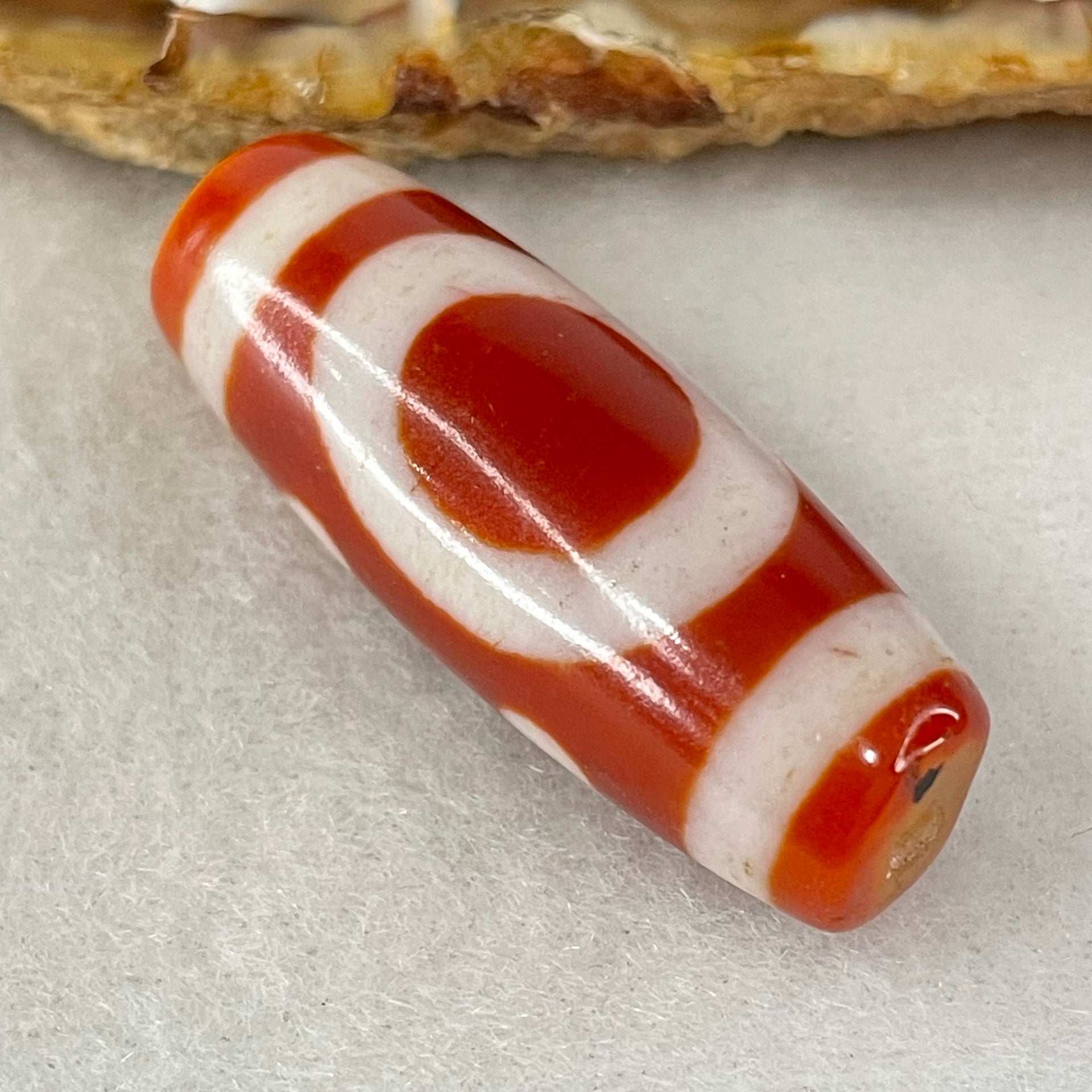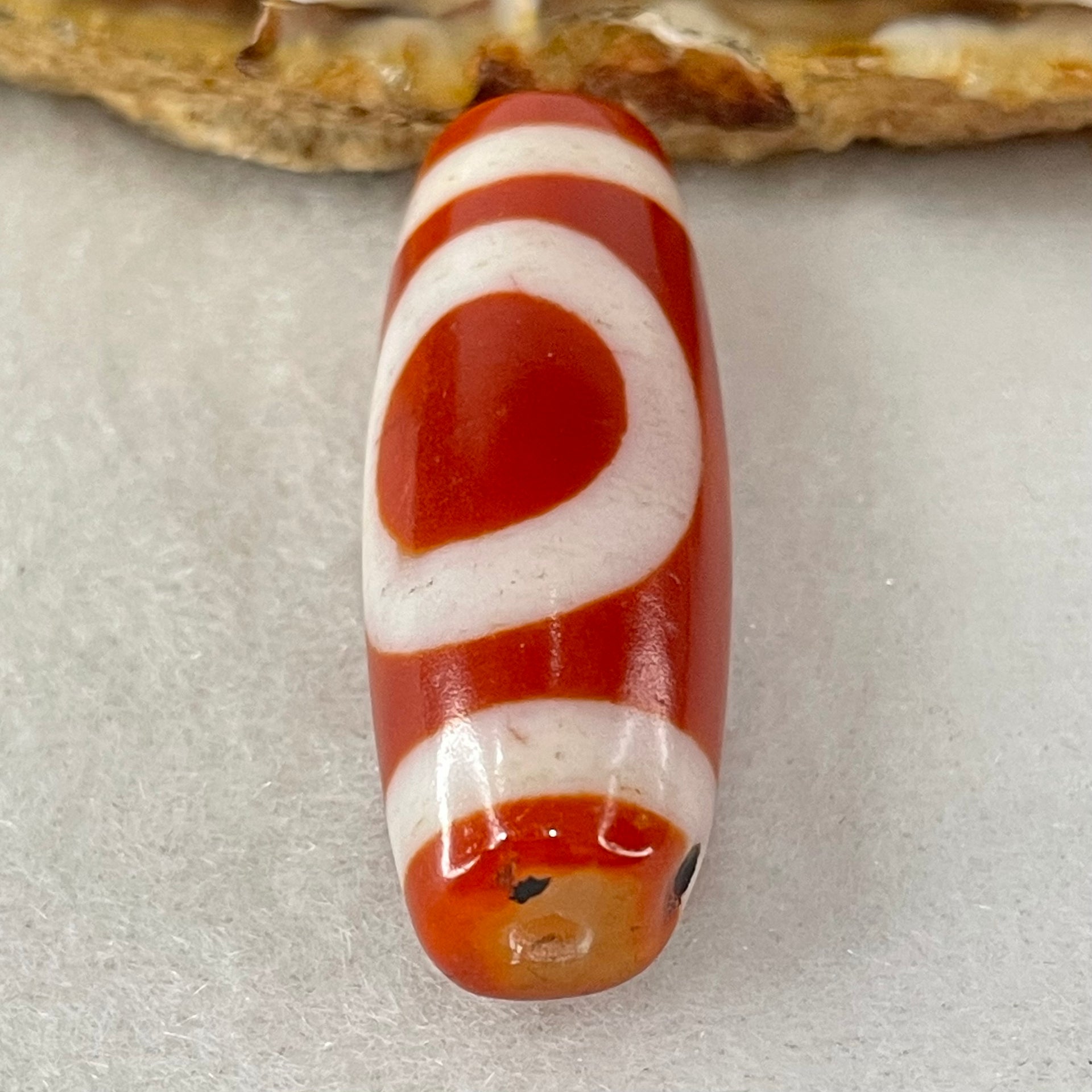 Natural Powerful Tibetan Old Oily Red White Agate One Eye Water Element Dzi Bead Heavenly Master (Tian Zhu) 一眼水元素天珠 12.89g 37.2 by 13.6mm