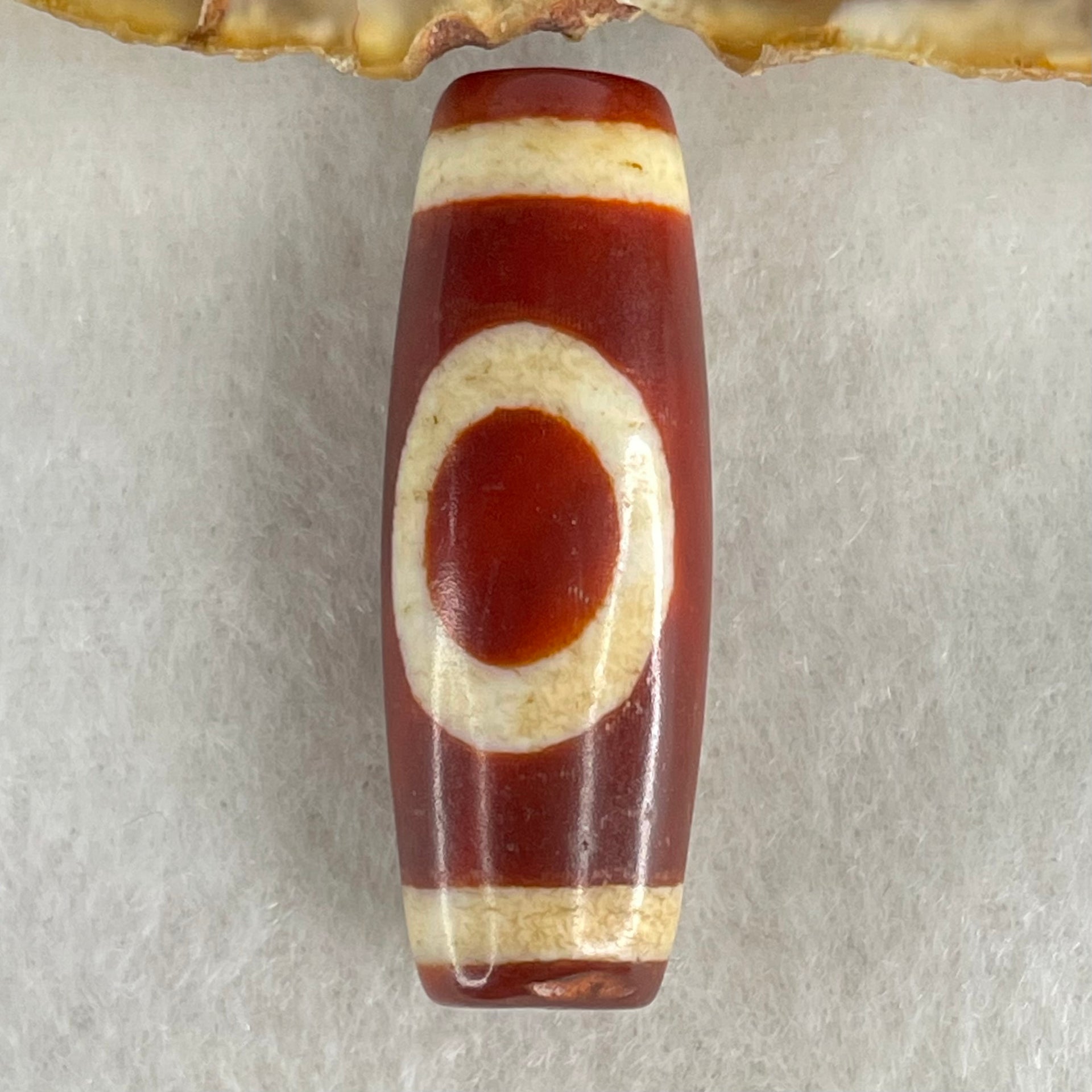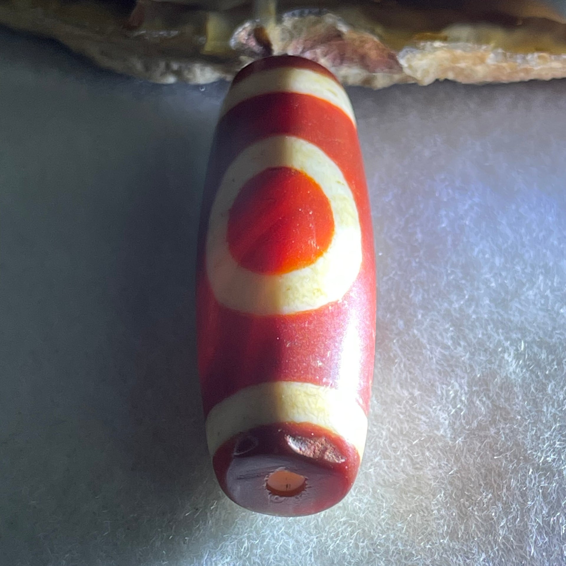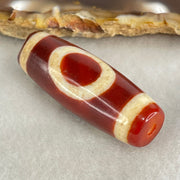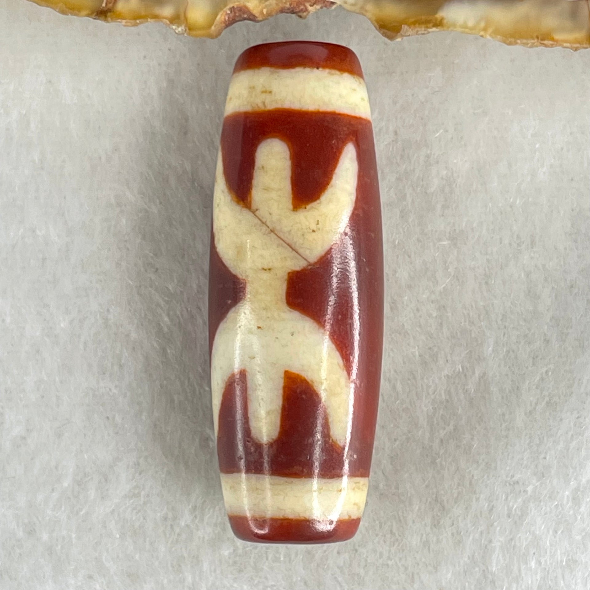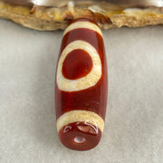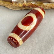 Natural Powerful Tibetan Old Oily Red White Agate One Eye Wood Element Dzi Bead Heavenly Master (Tian Zhu) 一眼木元素天珠 10.27g 37.1 by 13.3mm