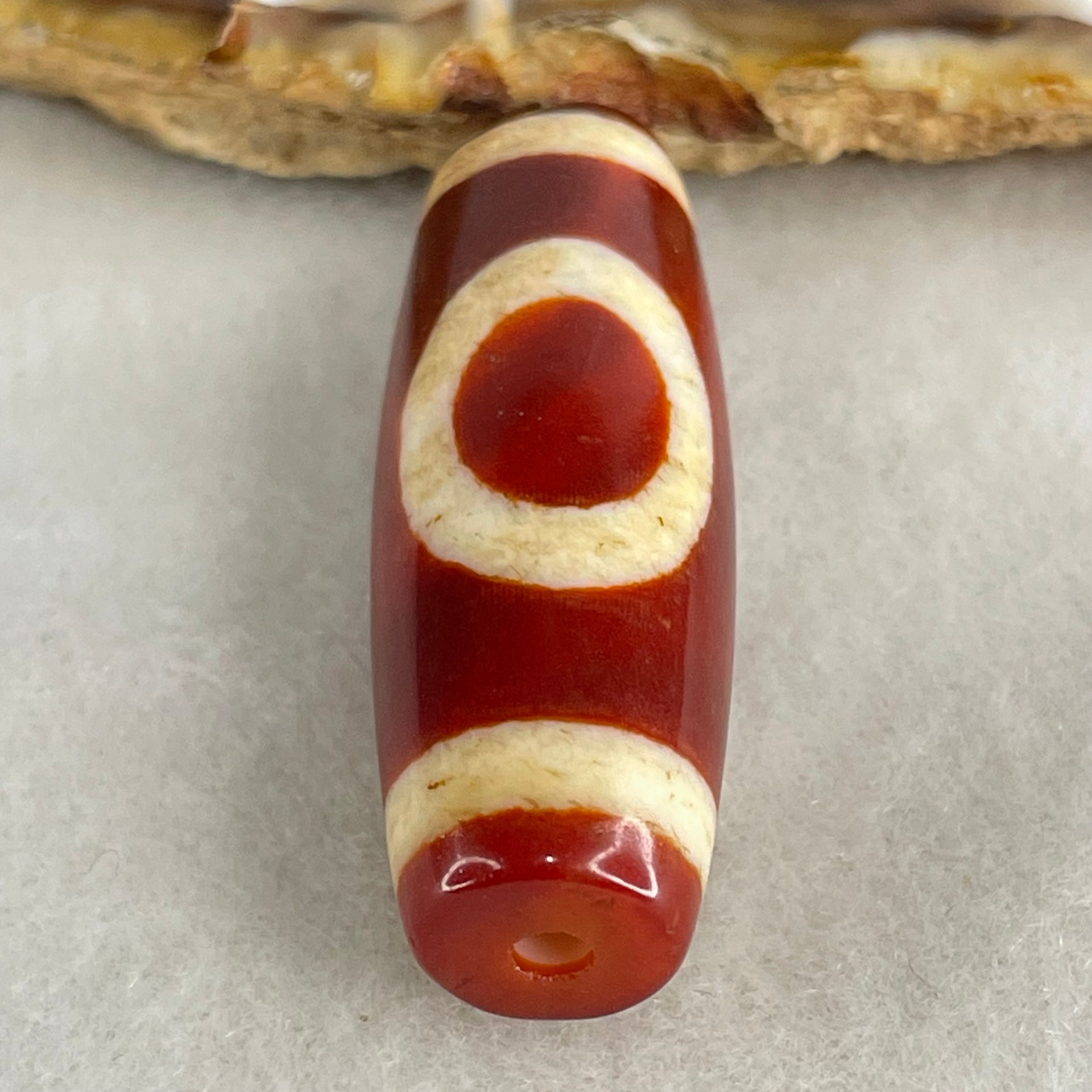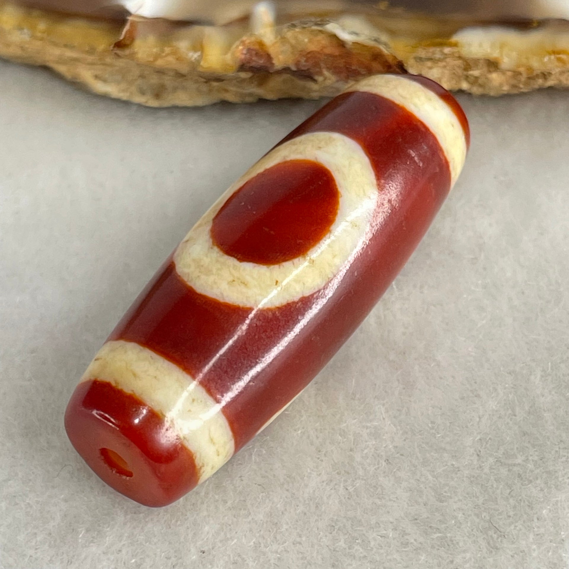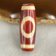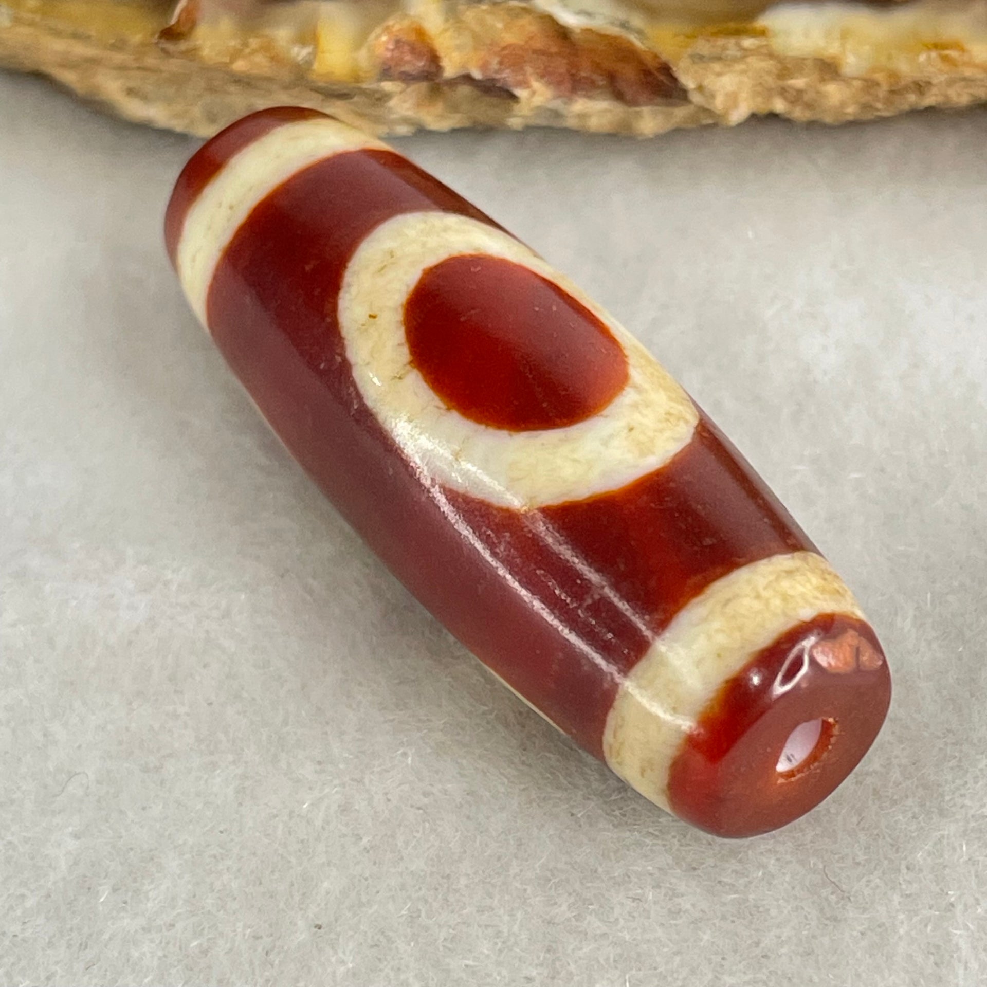 Natural Powerful Tibetan Old Oily Red White Agate One Eye Wood Element Dzi Bead Heavenly Master (Tian Zhu) 一眼木元素天珠 10.27g 37.1 by 13.3mm