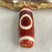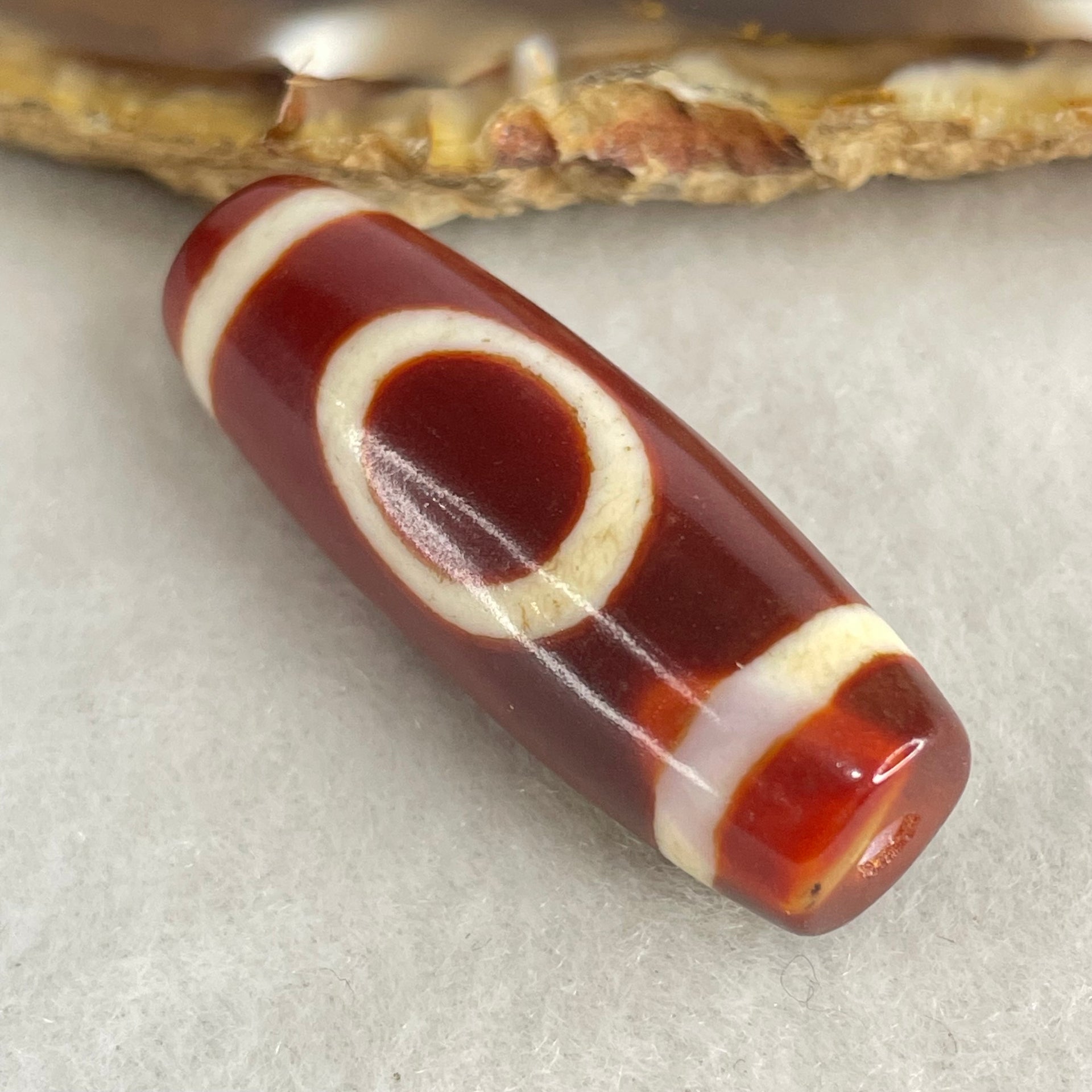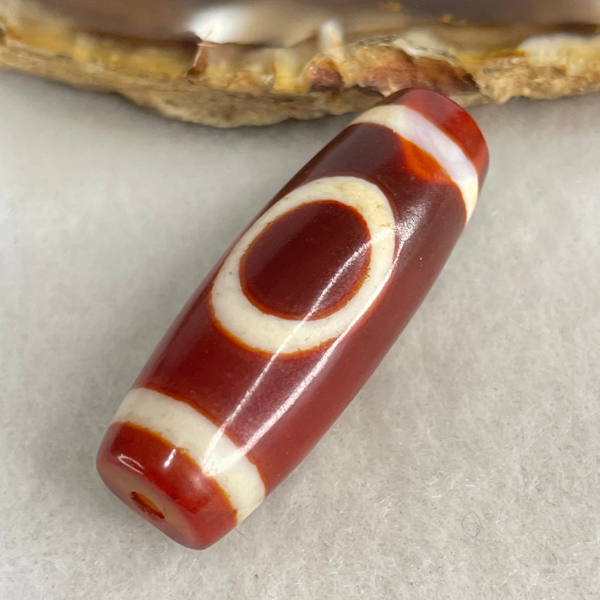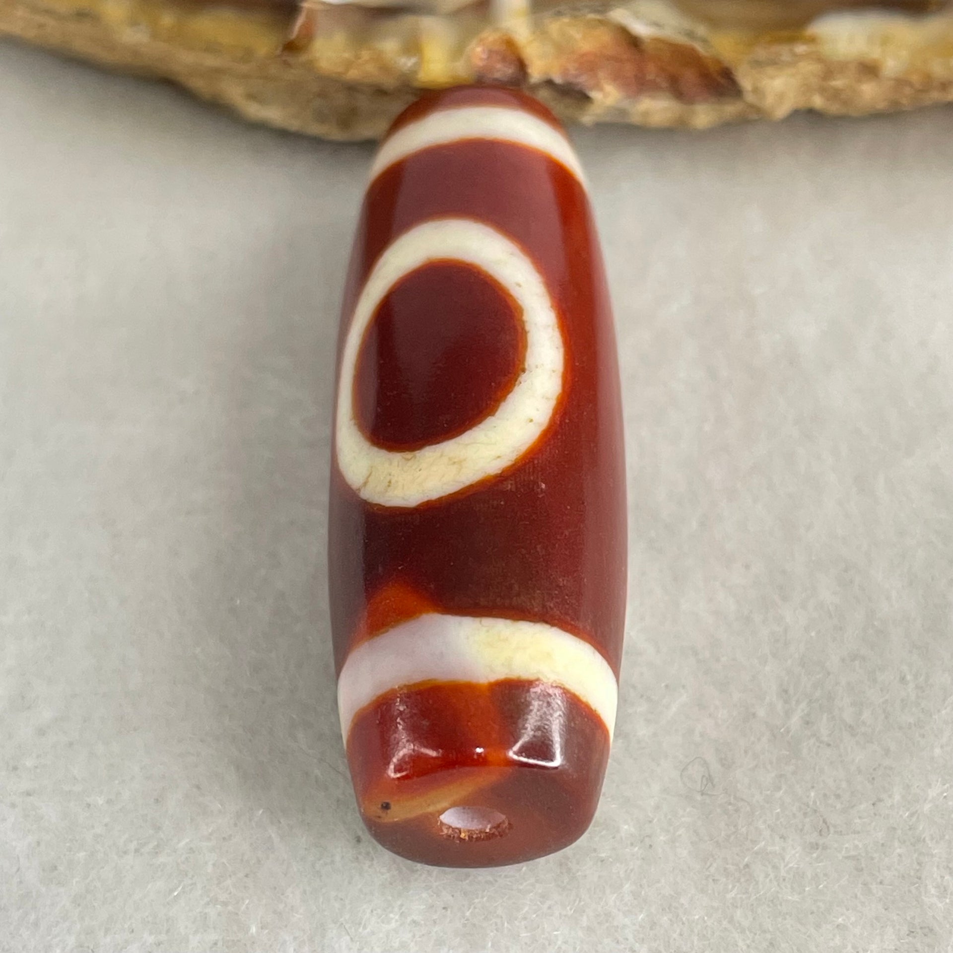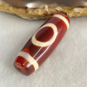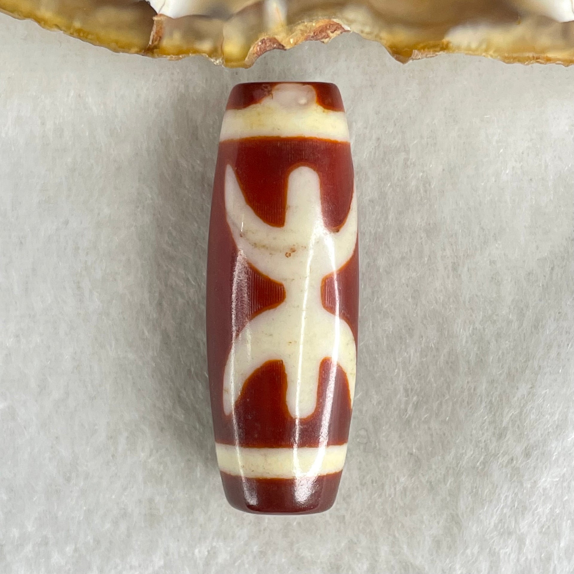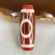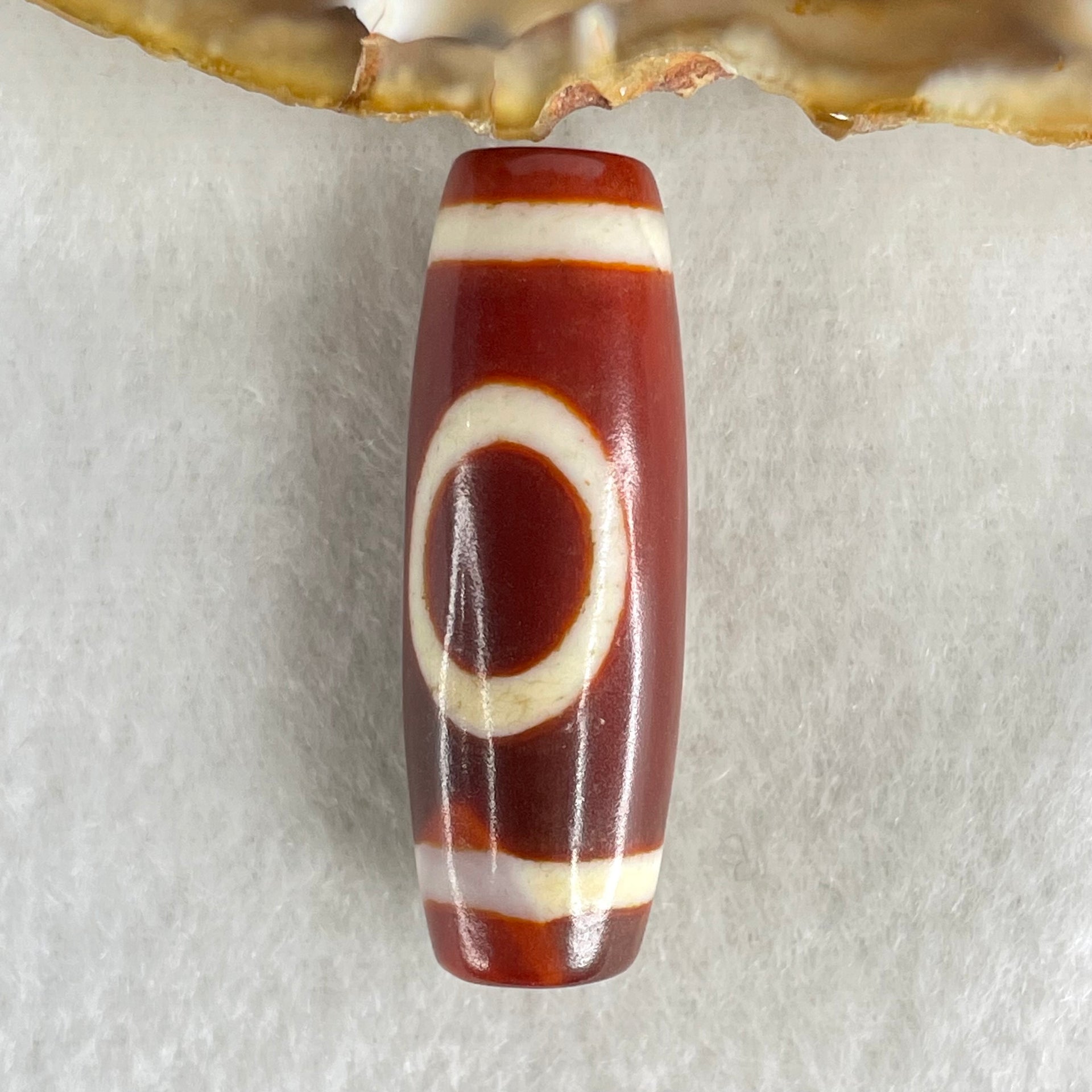 Natural Powerful Tibetan Old Oily Red White Agate One Eye Wood Element Dzi Bead Heavenly Master (Tian Zhu) 一眼木元素天珠 10.75g 37.6 by 13.6mm