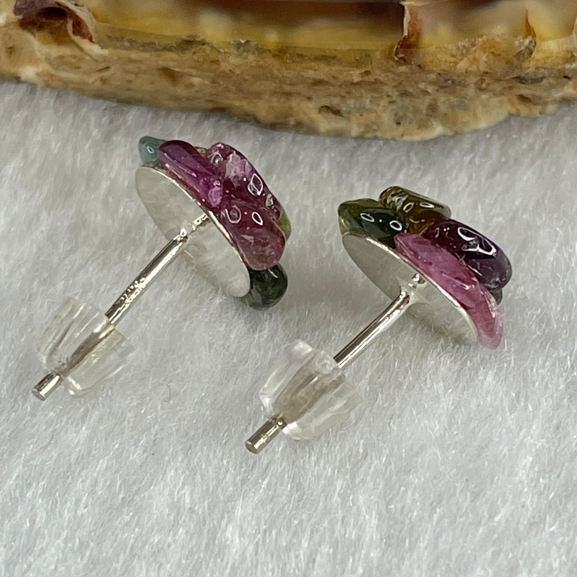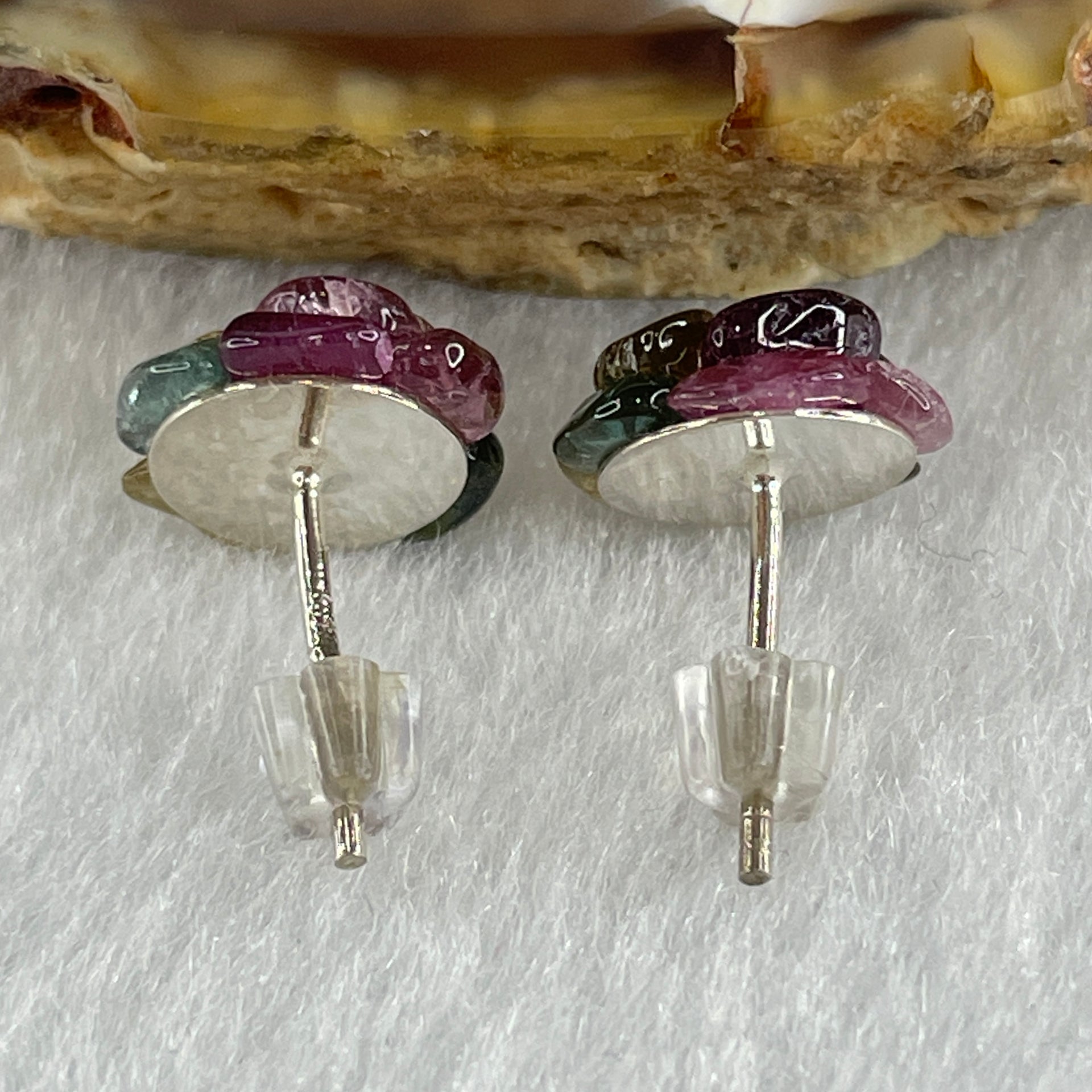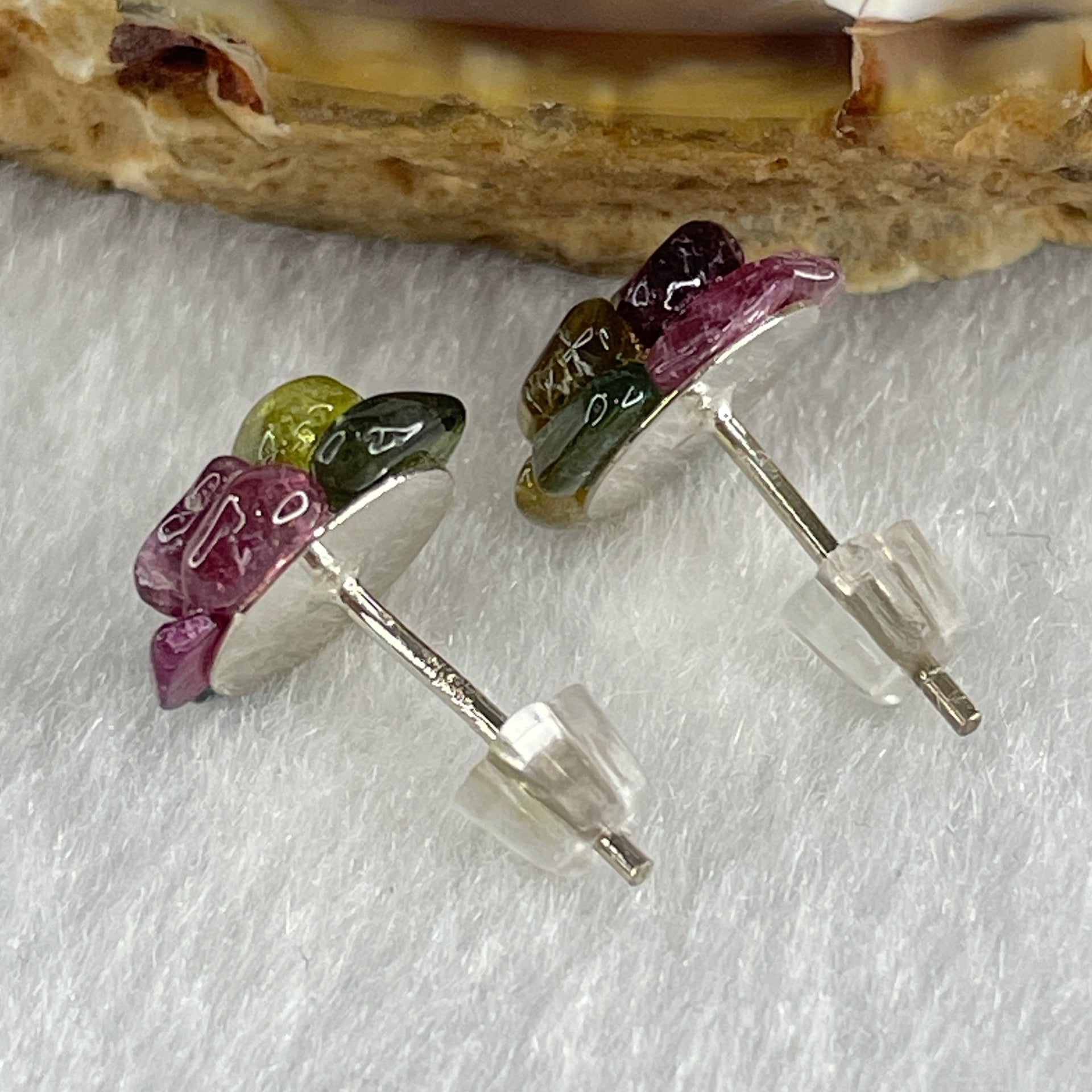 Natural Tourmaline Crystal Flower Earring in S925 Sliver 1.42g 10.2 by 4.5mm