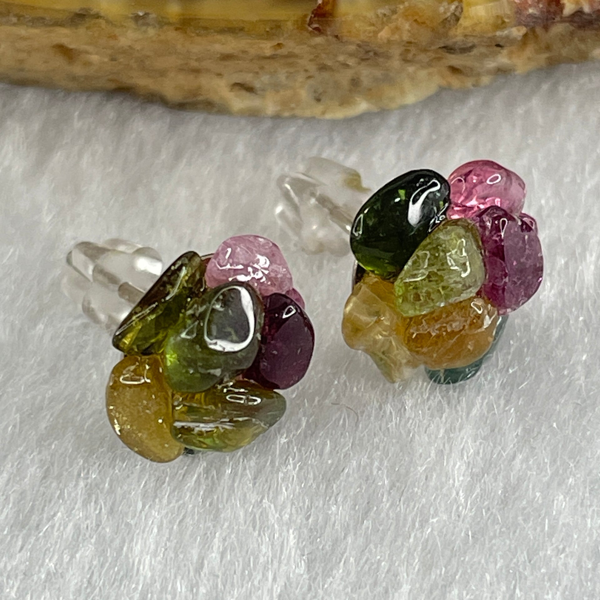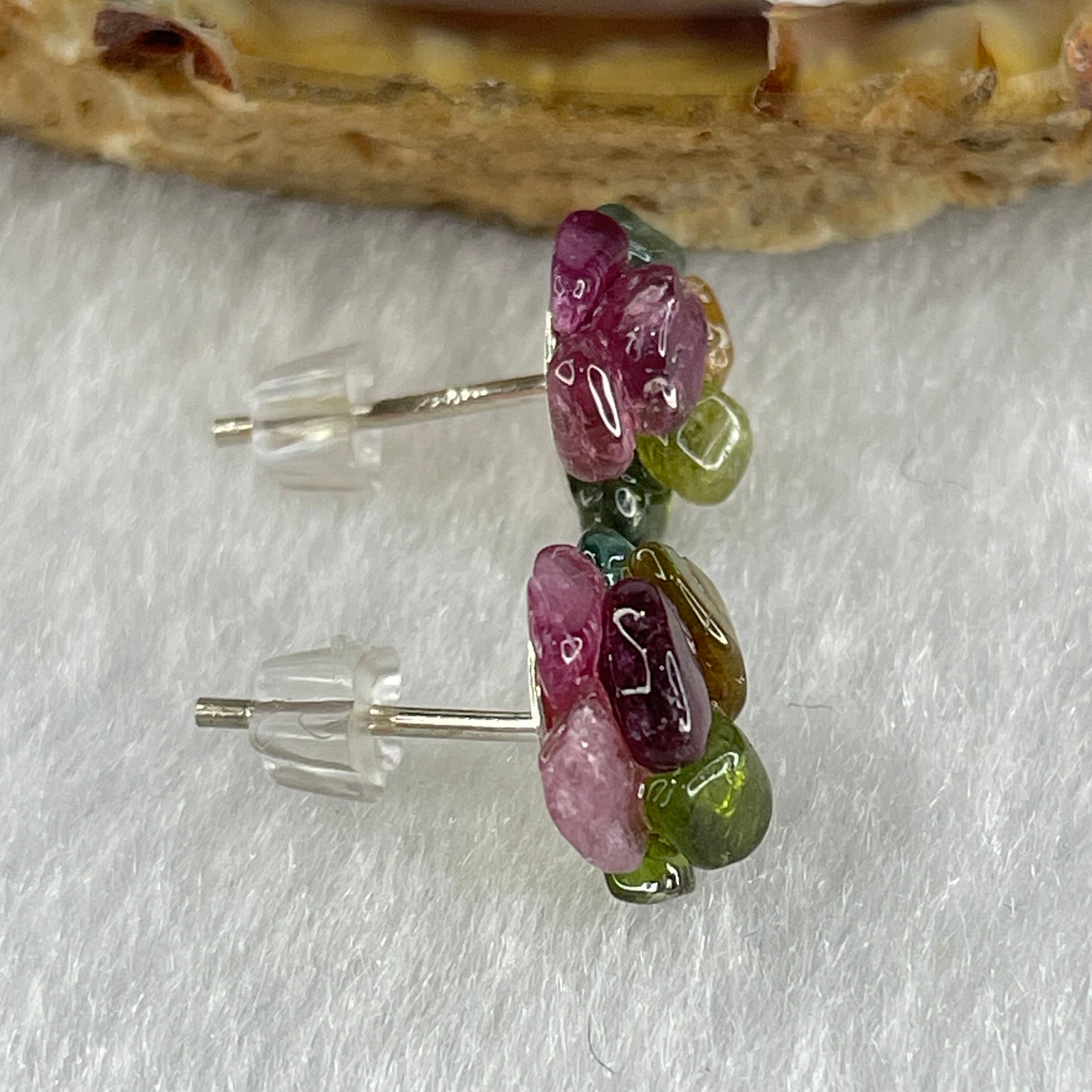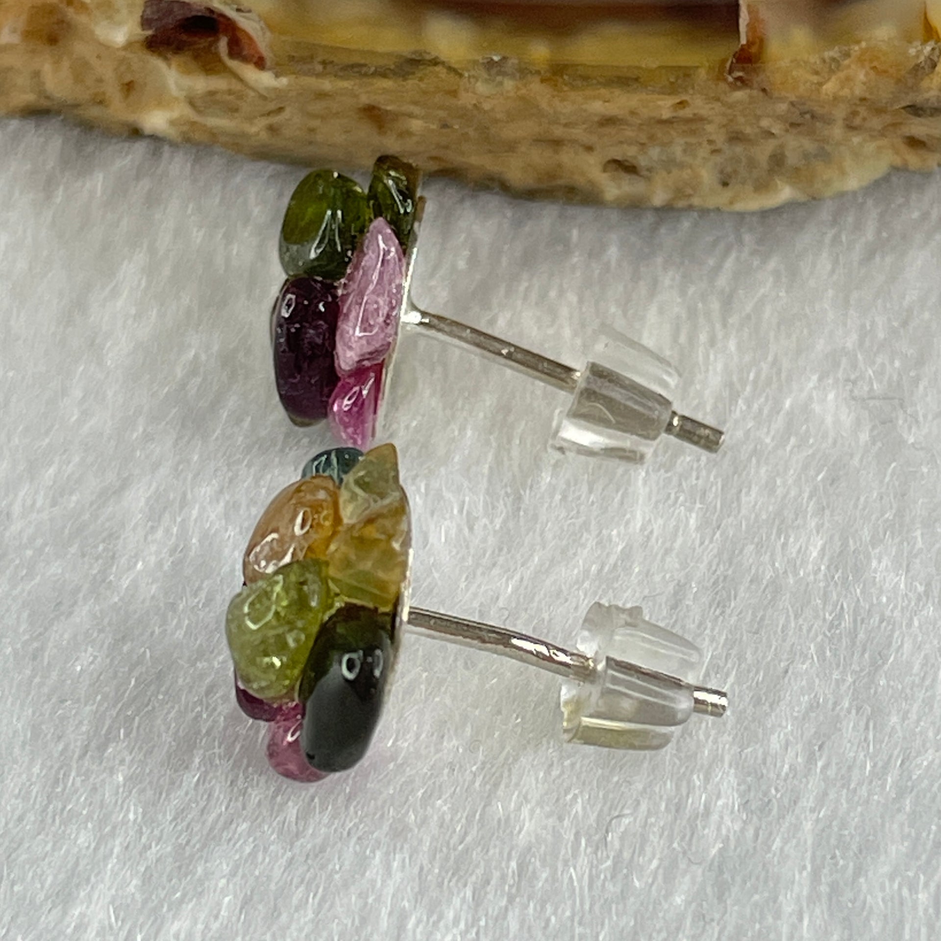 Natural Tourmaline Crystal Flower Earring in S925 Sliver 1.42g 10.2 by 4.5mm