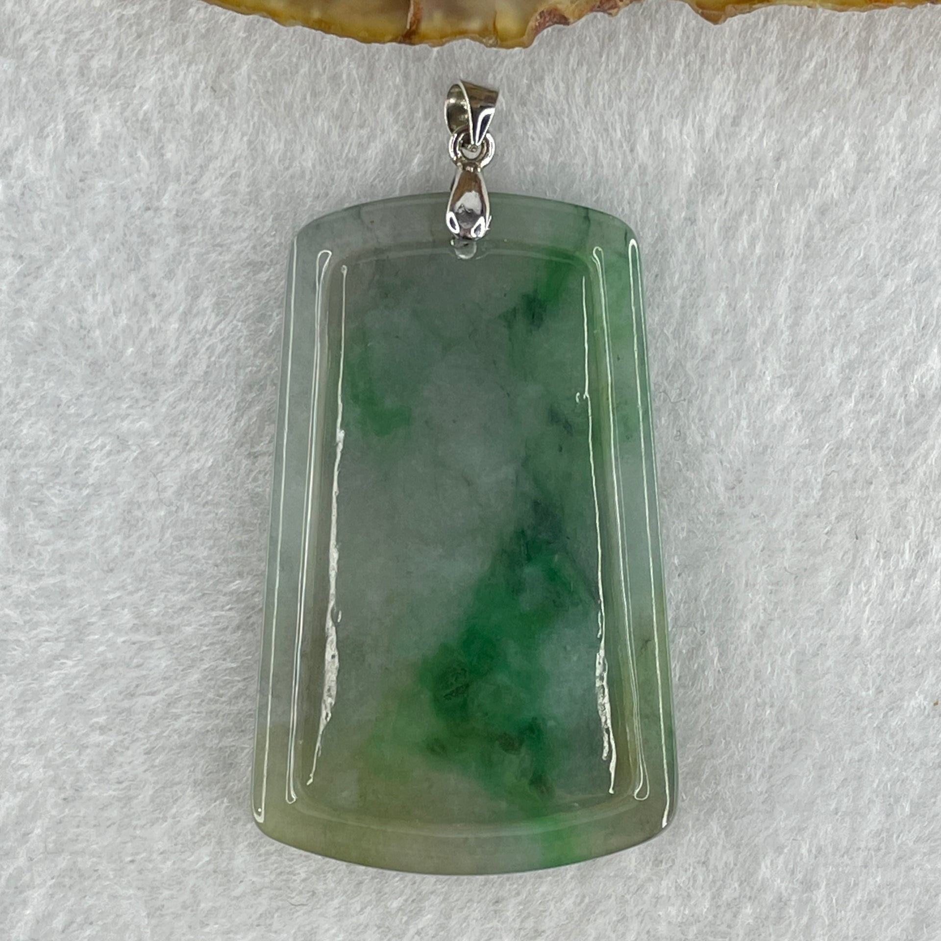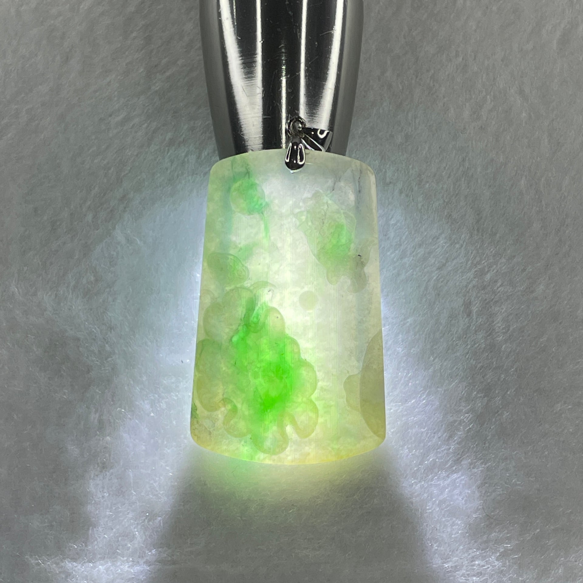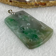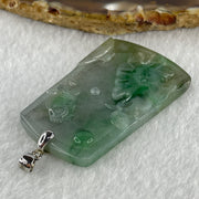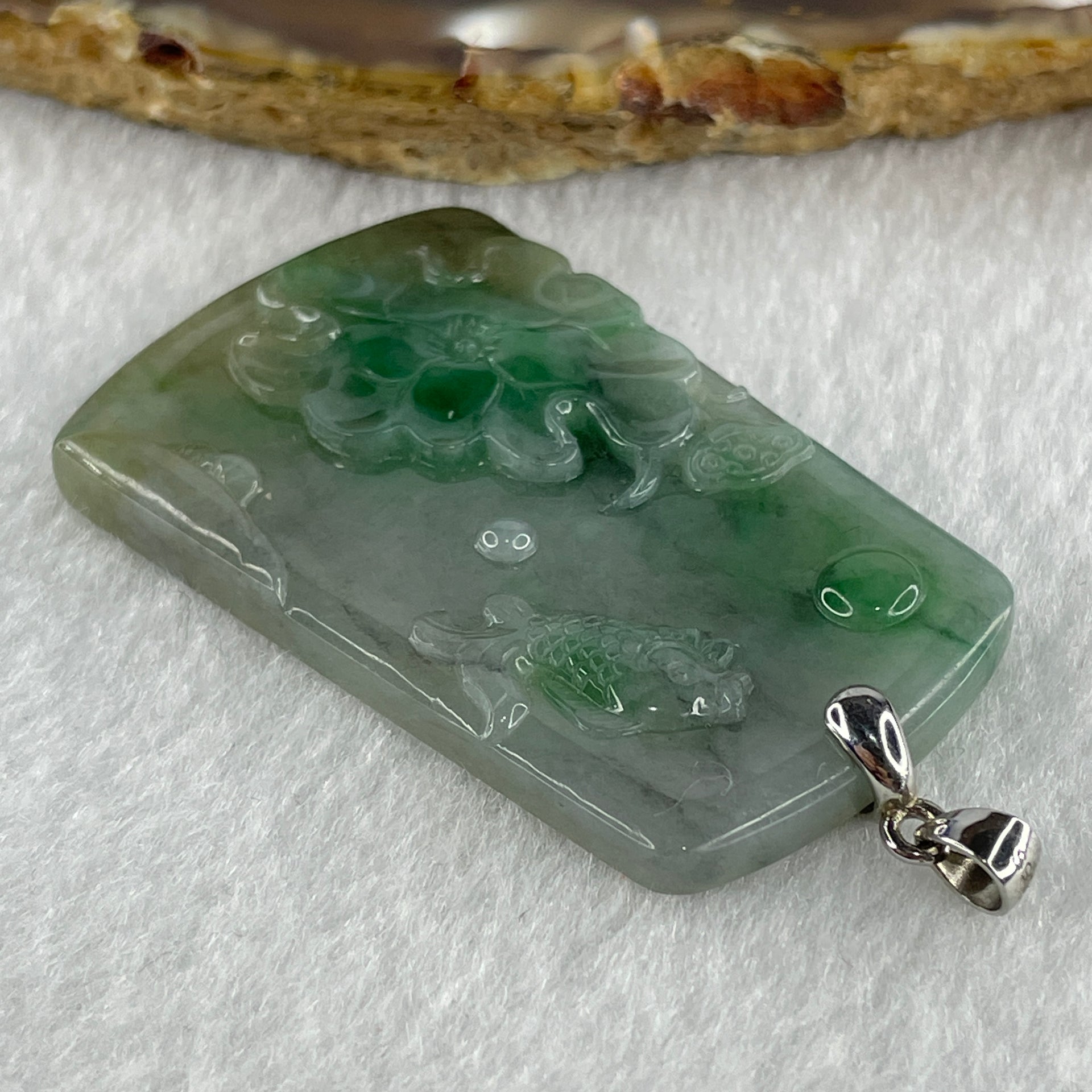 Natural Type A Wuji Grey with High End Bright Green Jadeite Carp Fish with Lotus Flower and Leaf in S925 Silver Pendant 16.45g 48.3 by 30.5 by 5.2mm
